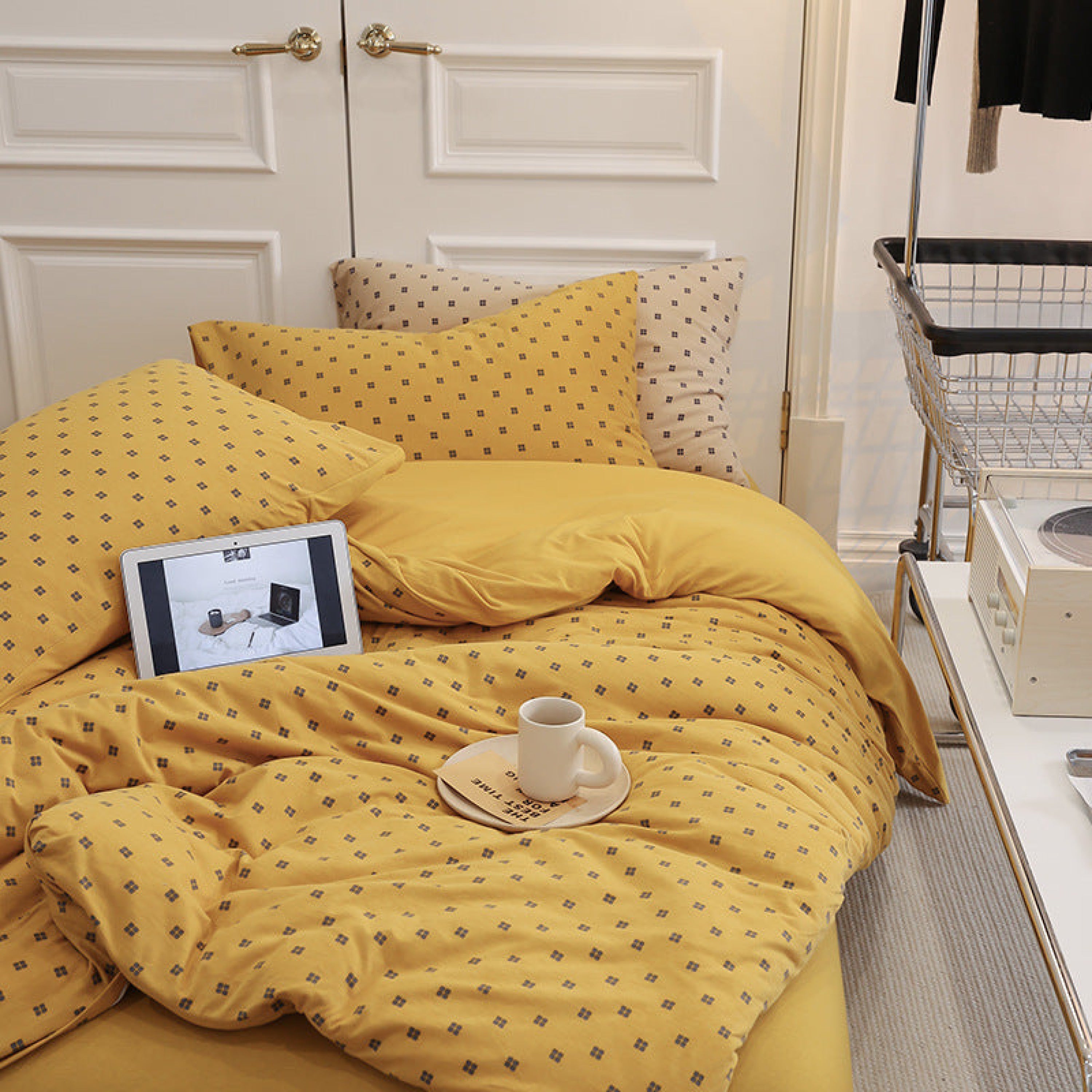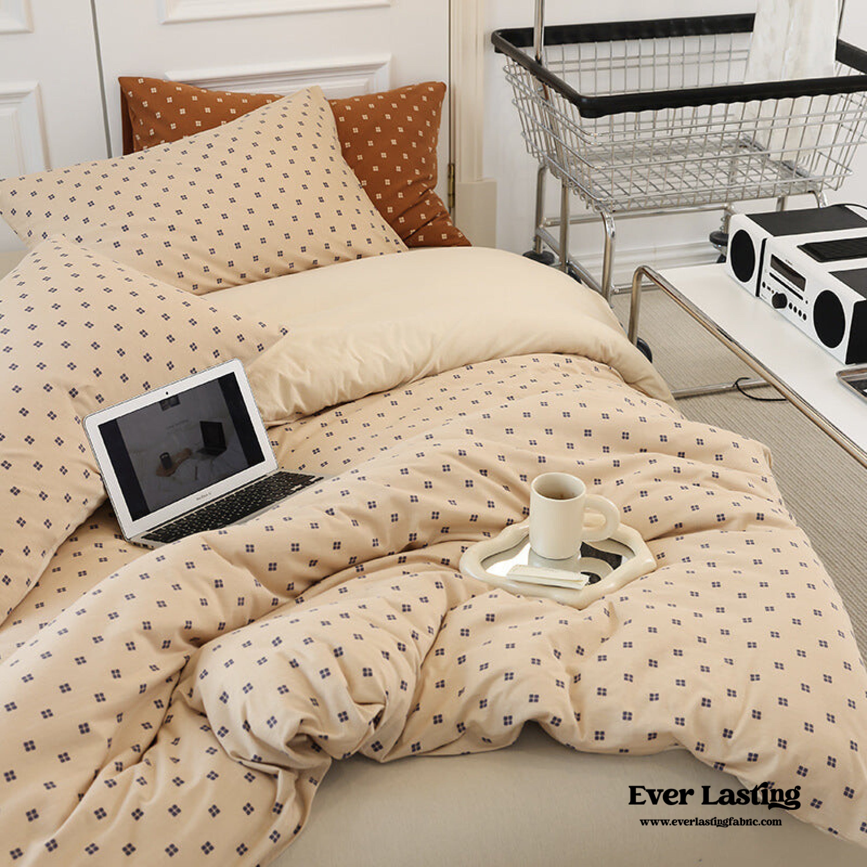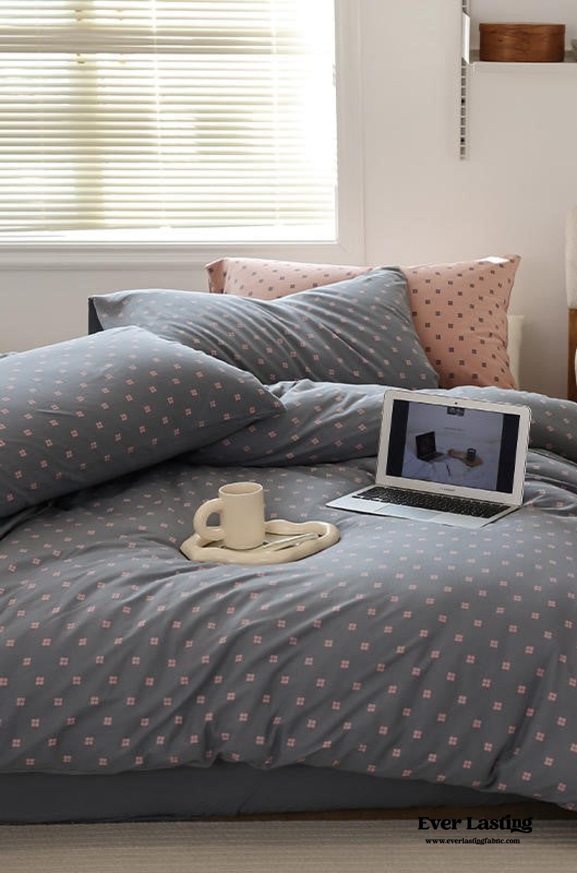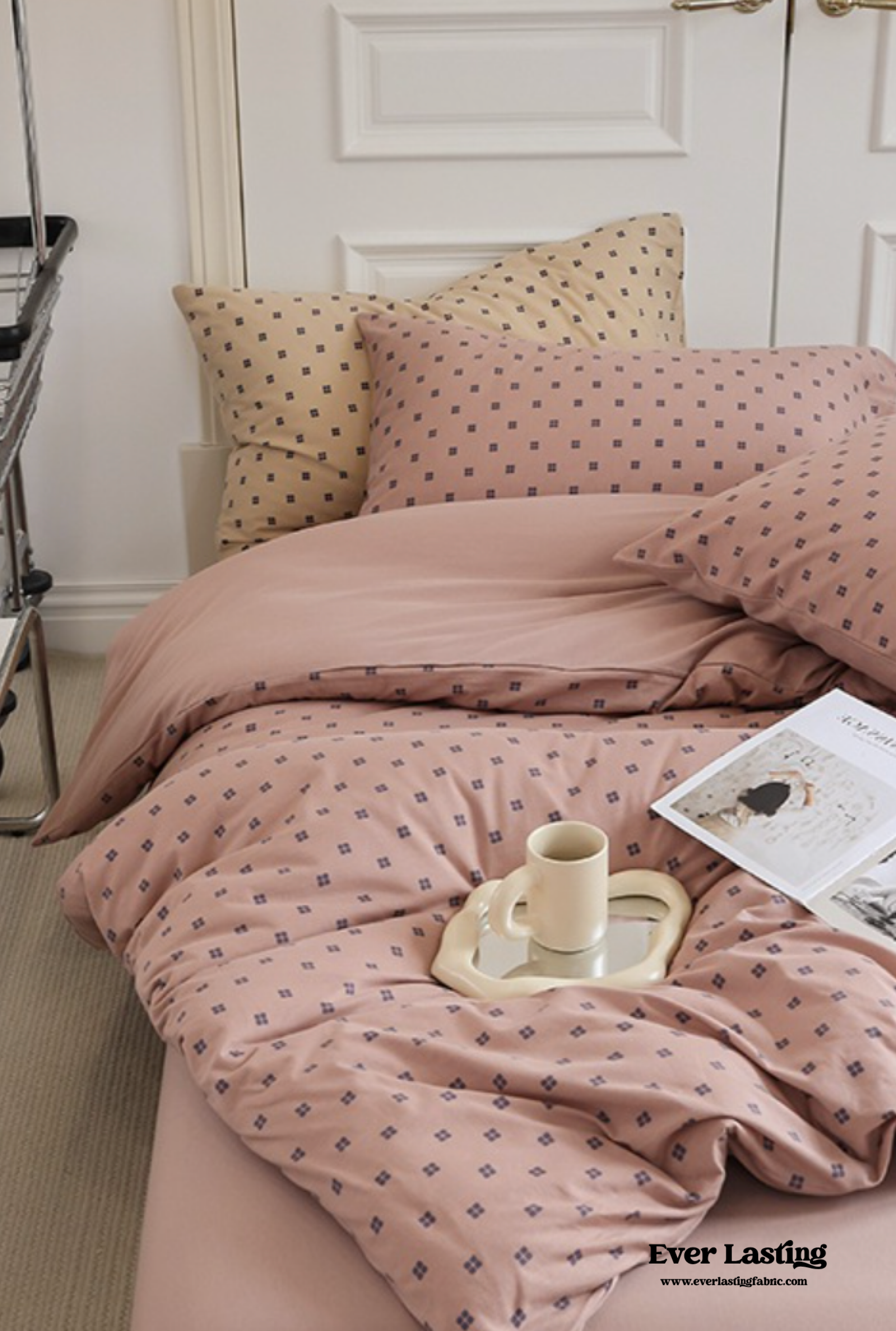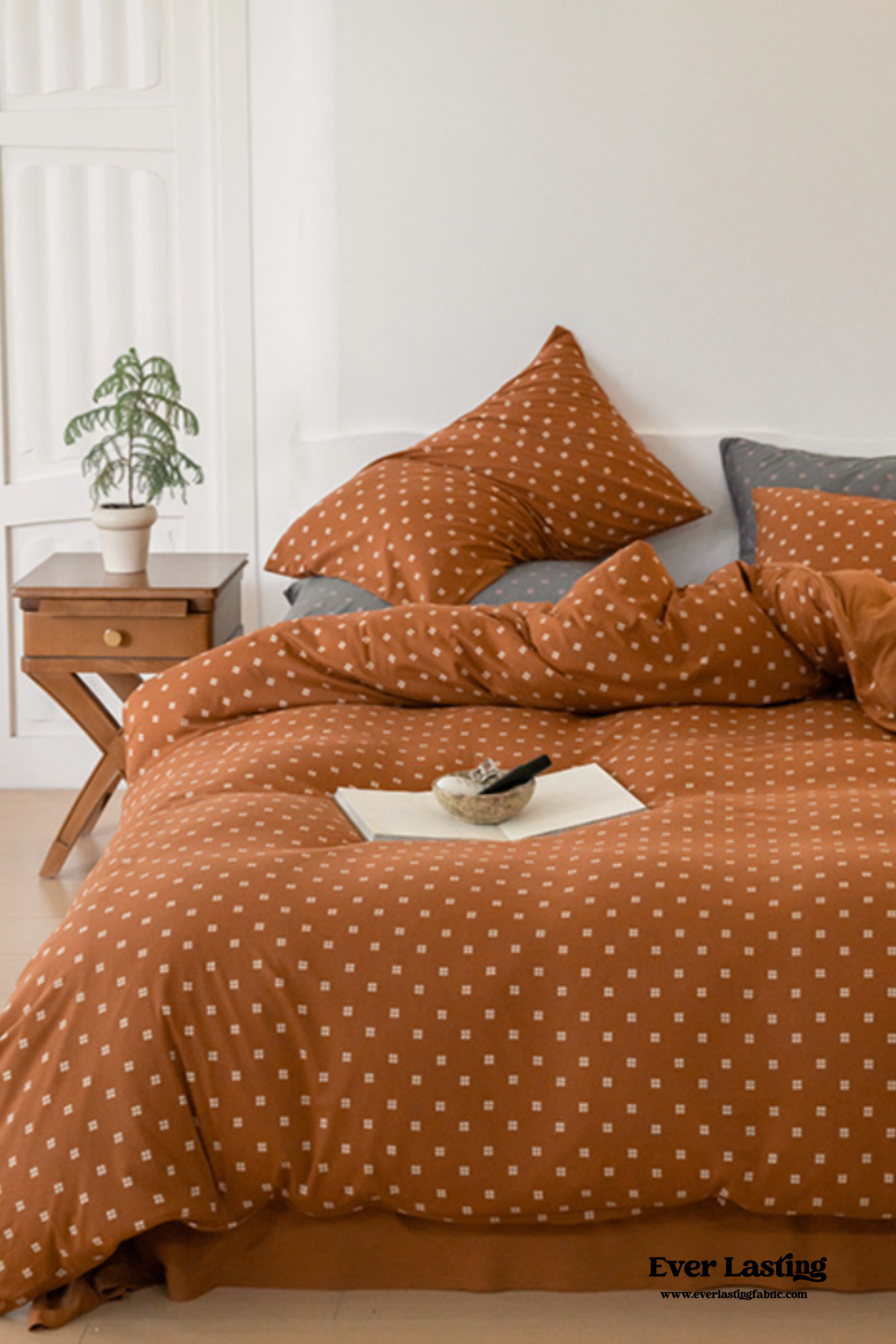 Experience the perfect fusion of comfort and style with our Jersey Knit Pattern Dotted Bedding Set. This set combines the softness of jersey knit fabric with a charming dotted pattern that adds a touch of whimsy to your sleep space. Each duvet cover features four corner ties and a hidden zipper. ensuring your duvet insert stays securely in place all night. Crafted for both coziness and aesthetics. it transforms your bedroom into a haven of modern charm and relaxation. Dive into the plush embrace of jersey knit and make every night a delightful escape into comfort and design.