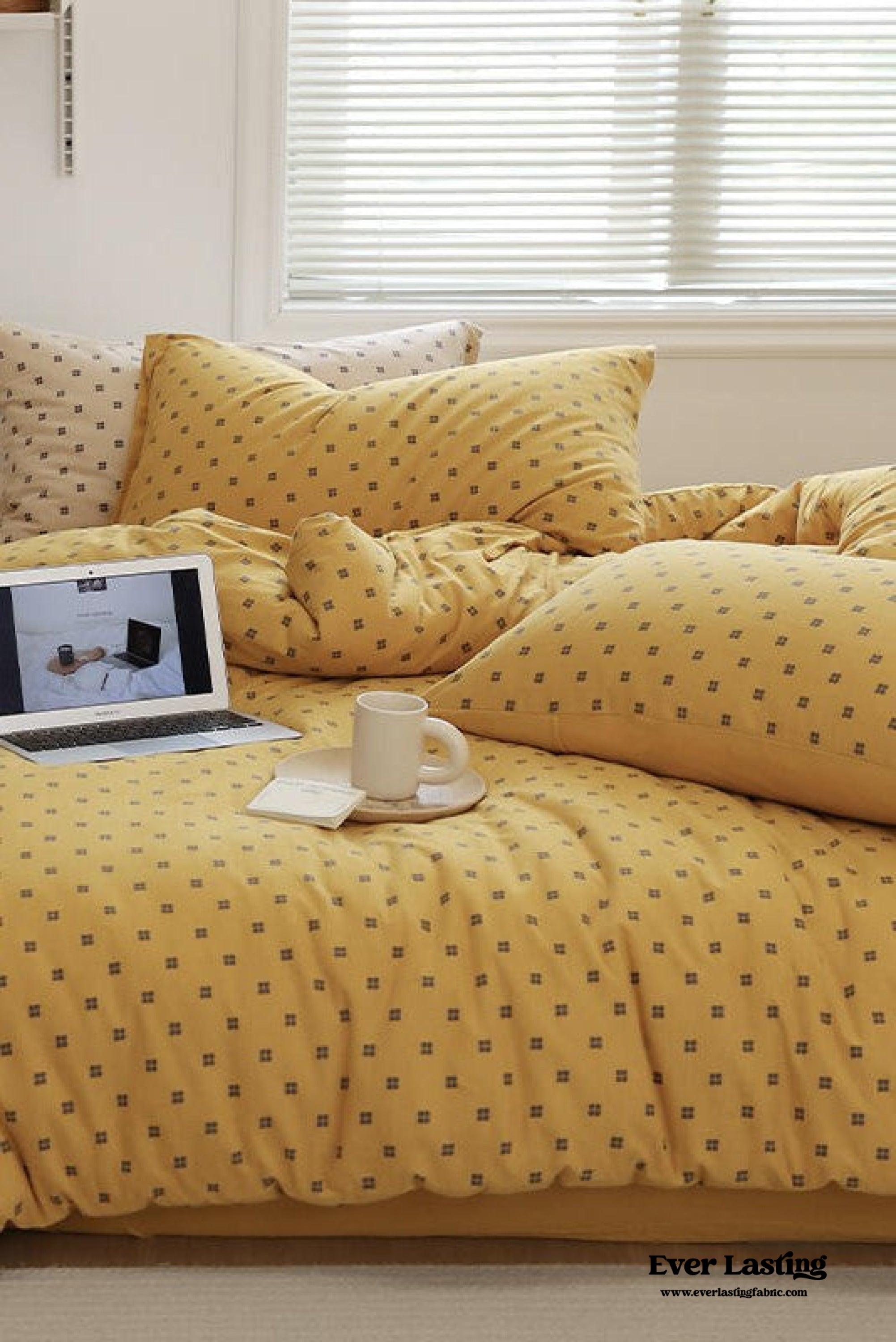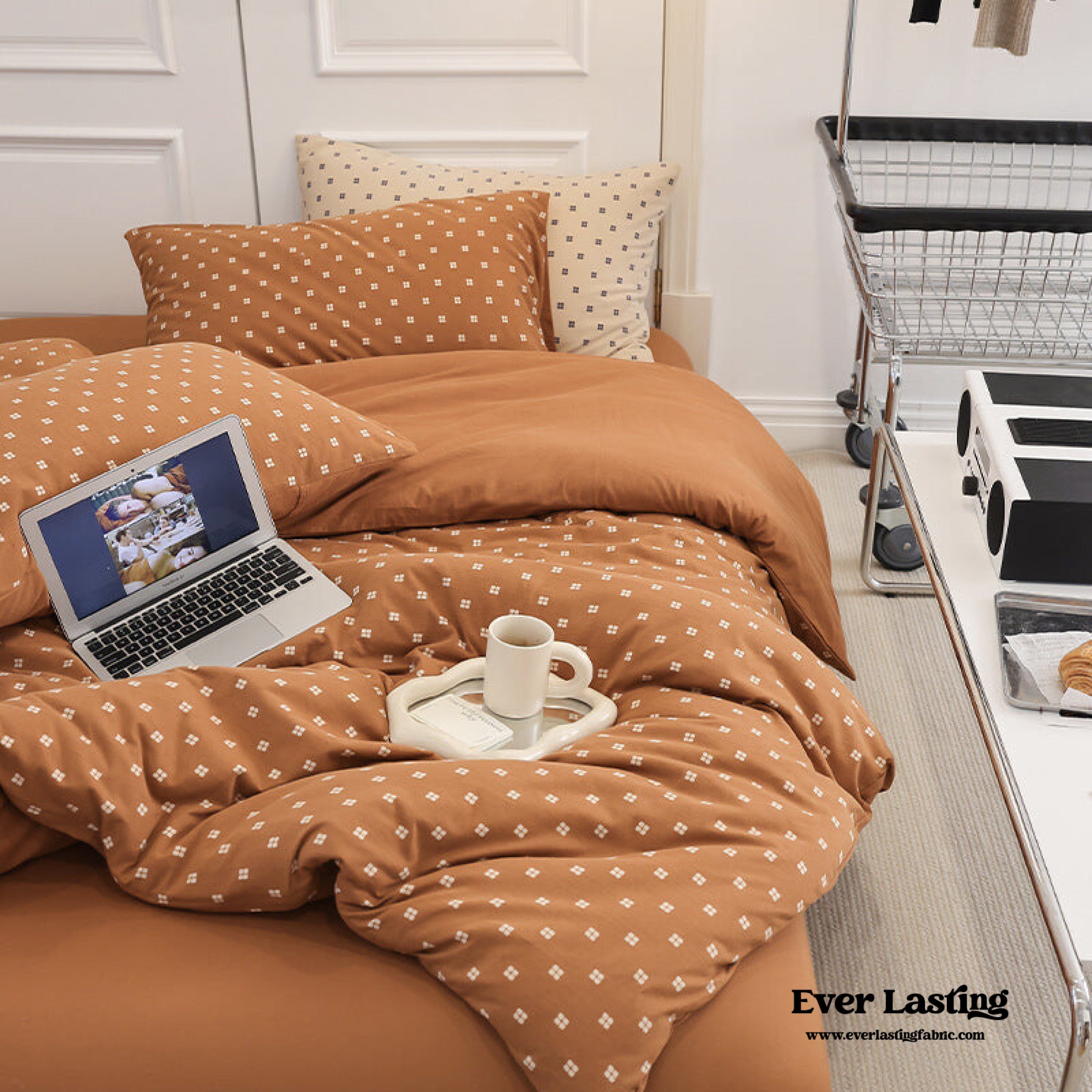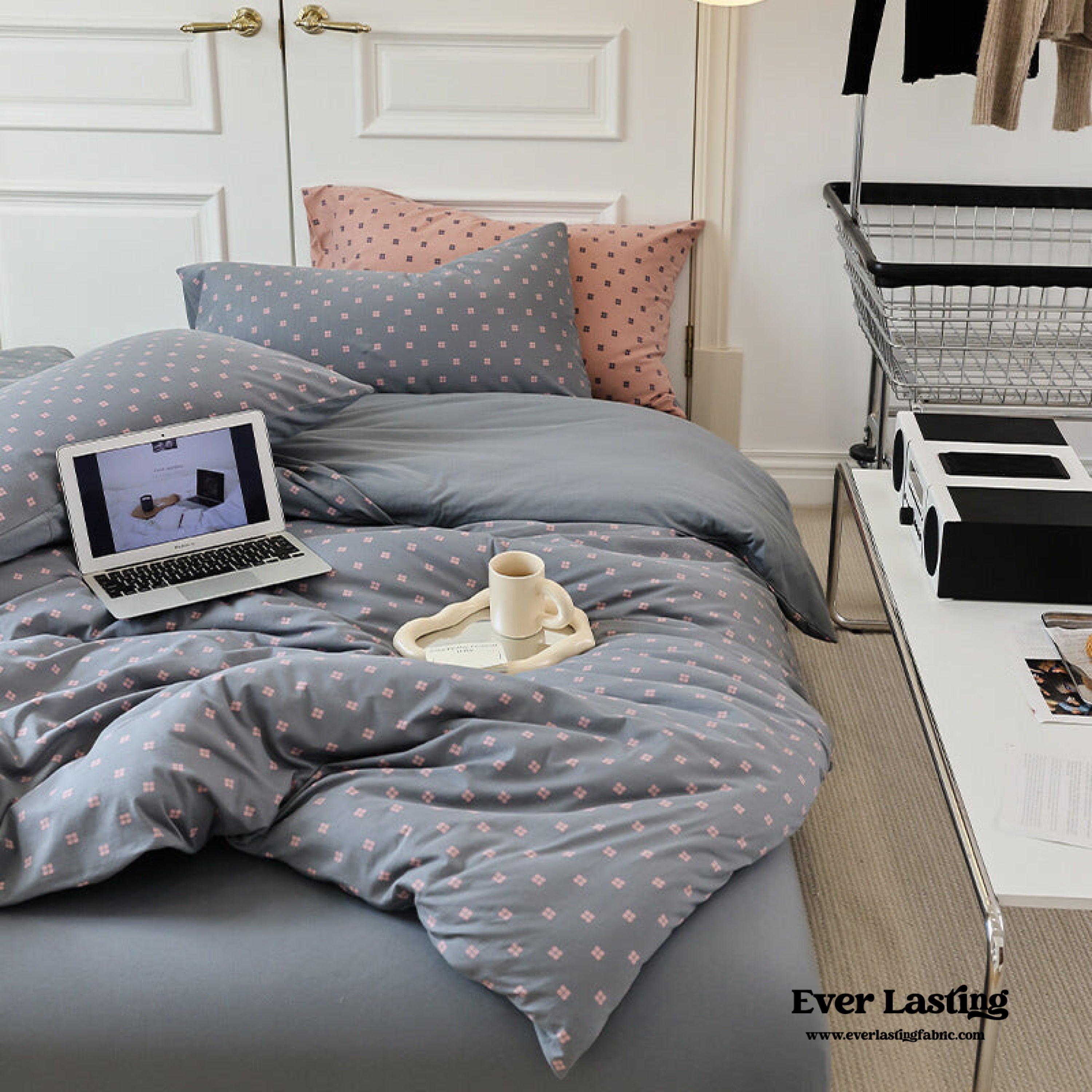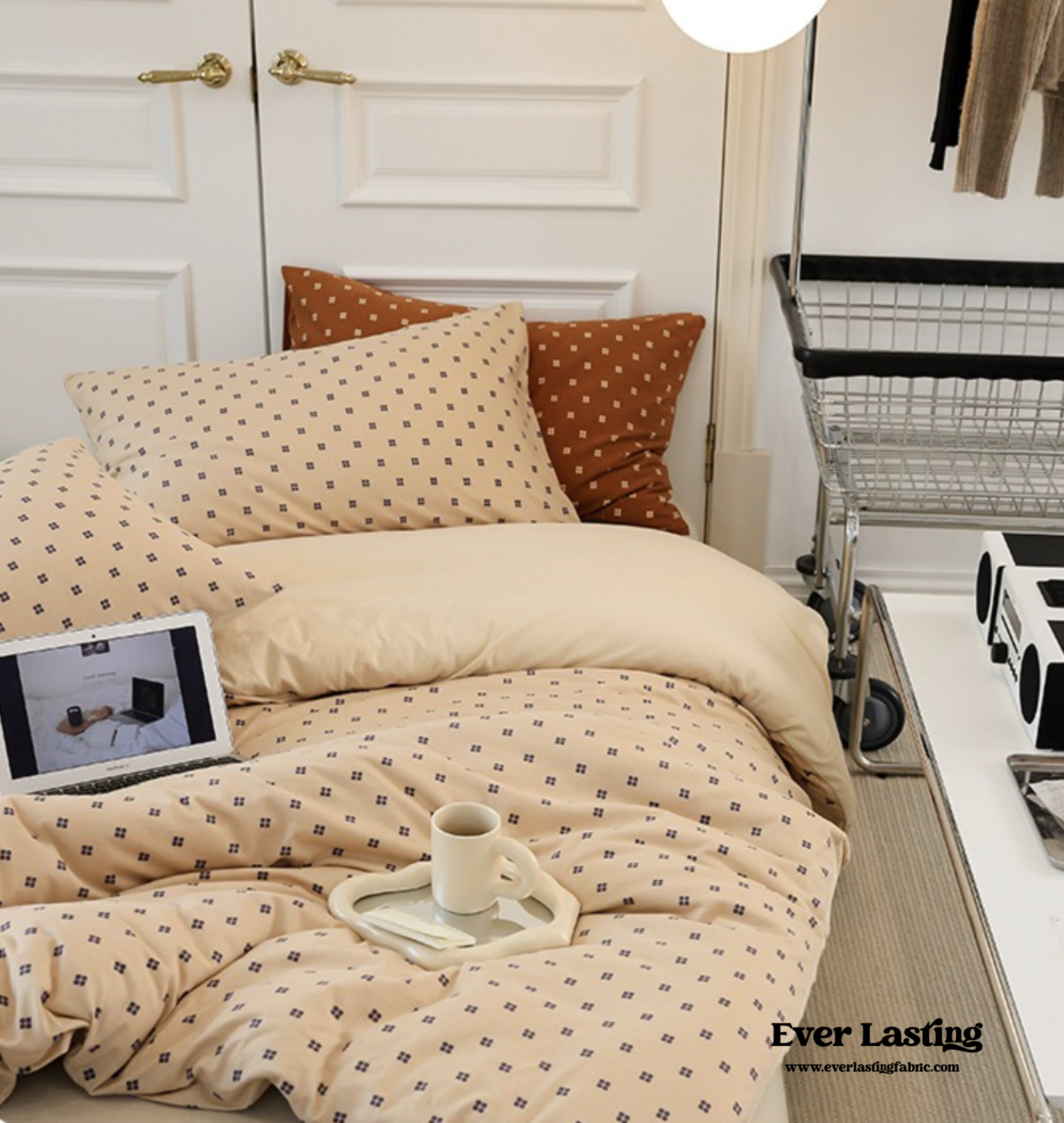 Experience the perfect fusion of comfort and style with our Jersey Knit Pattern Dotted Bedding Set. This set combines the softness of jersey knit fabric with a charming dotted pattern that adds a touch of whimsy to your sleep space. Each duvet cover features four corner ties and a hidden zipper. ensuring your duvet insert stays securely in place all night. Crafted for both coziness and aesthetics. it transforms your bedroom into a haven of modern charm and relaxation. Dive into the plush embrace of jersey knit and make every night a delightful escape into comfort and design.