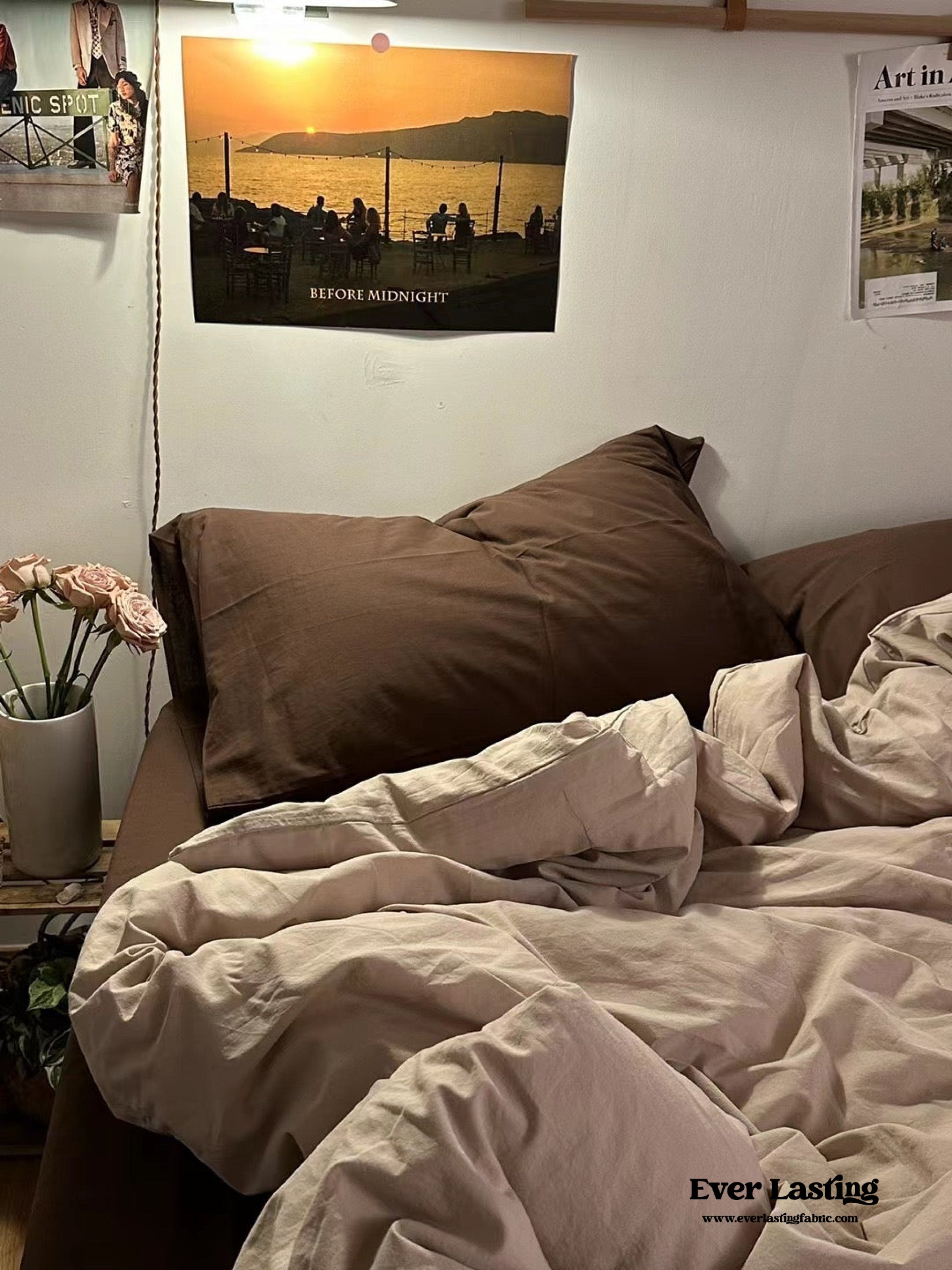 Indulge in the warm and comforting embrace of our Latte Bedding Set. Like your favorite coffee. this set exudes coziness and relaxation. with its soothing latte color palette. Each duvet cover features four corner ties and a hidden zipper. ensuring your duvet insert stays securely in place all night. Elevate your sleep experience with a touch of understated elegance and comfort. turning your bedroom into a haven of warmth and tranquility where every night feels like a comforting sip of your go-to latte.