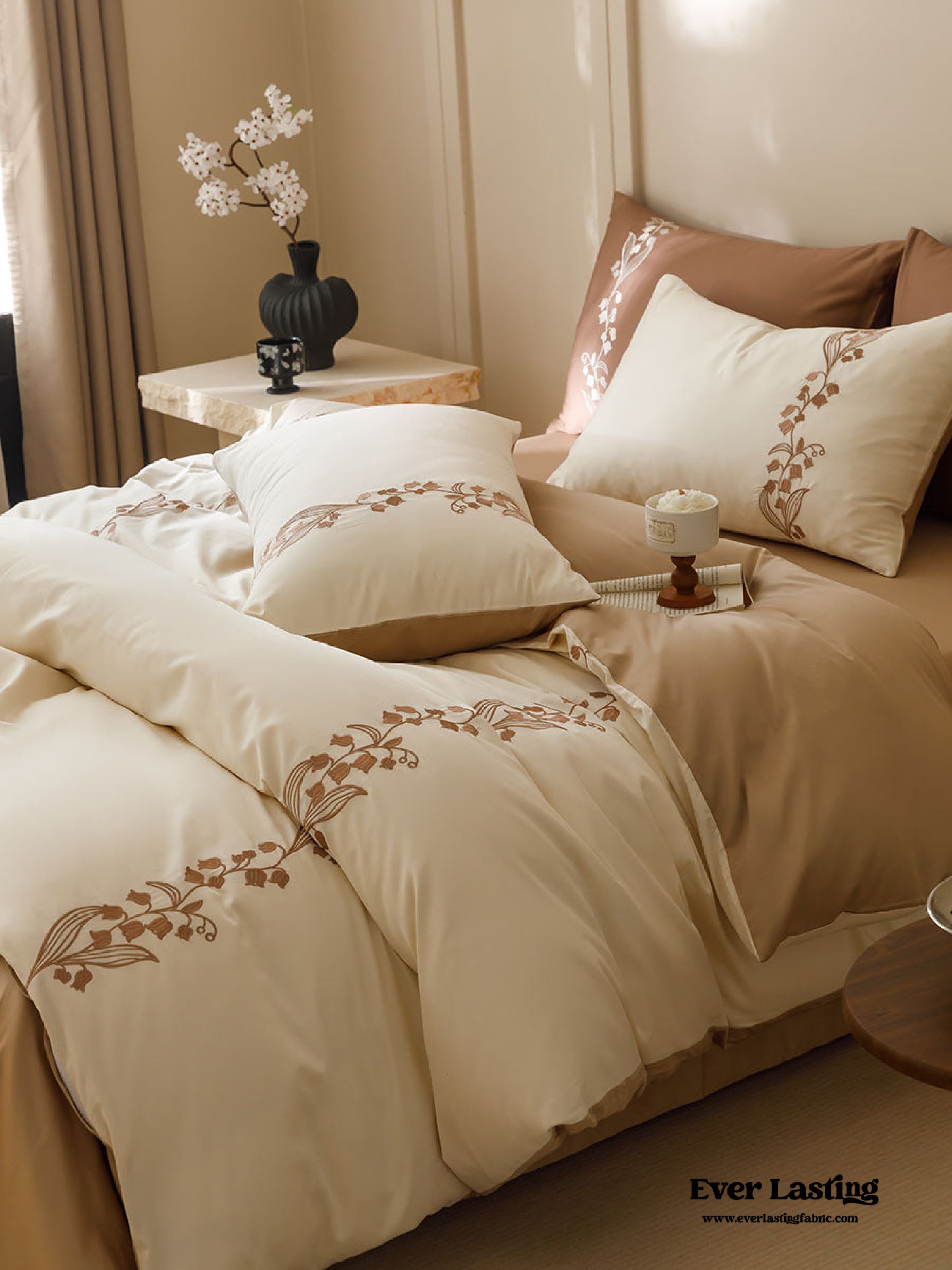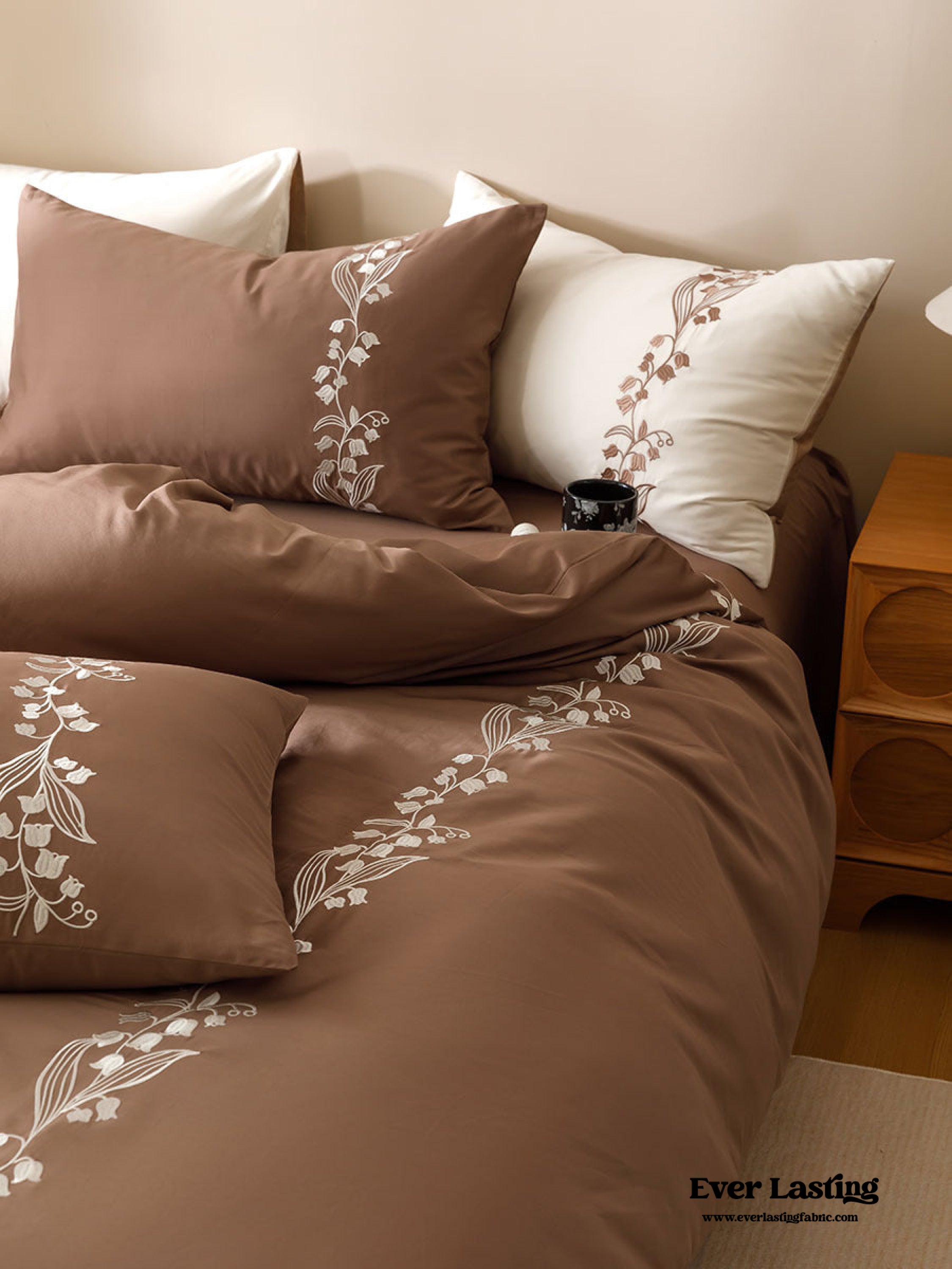 Elevate your bedroom with Magchic's Lily of the Valley Embroidered Silky Bedding Set. a timeless blend of French-inspired elegance and vintage charm. Crafted from luxurious. 100% premium cotton with a silky finish. this set offers a soft. breathable feel for a restful sleep. Subtle lily of the valley stitching elevates the elegant aesthetics of this bedding set. infusing a natural artistic touch into your interior design. The duvet cover features practical corner ties and a concealed zipper. keeping your duvet insert secure and ensuring long-lasting quality that is meticulously tailored to your needs. With its refined style. this set creates a tranquil and sophisticated atmosphere in any living space.