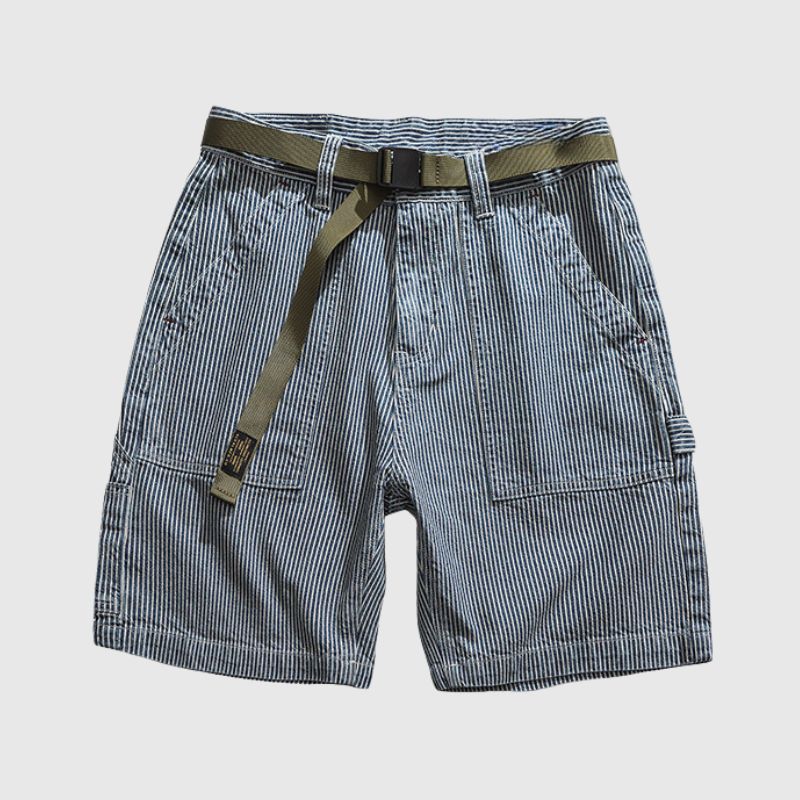 Características: Jorts. vintage. a rayas. bolsillo lateral. contraste de color. pierna recta . suelto. corte relajado . unisex. conjuntos para pareja. cinturón incluido.