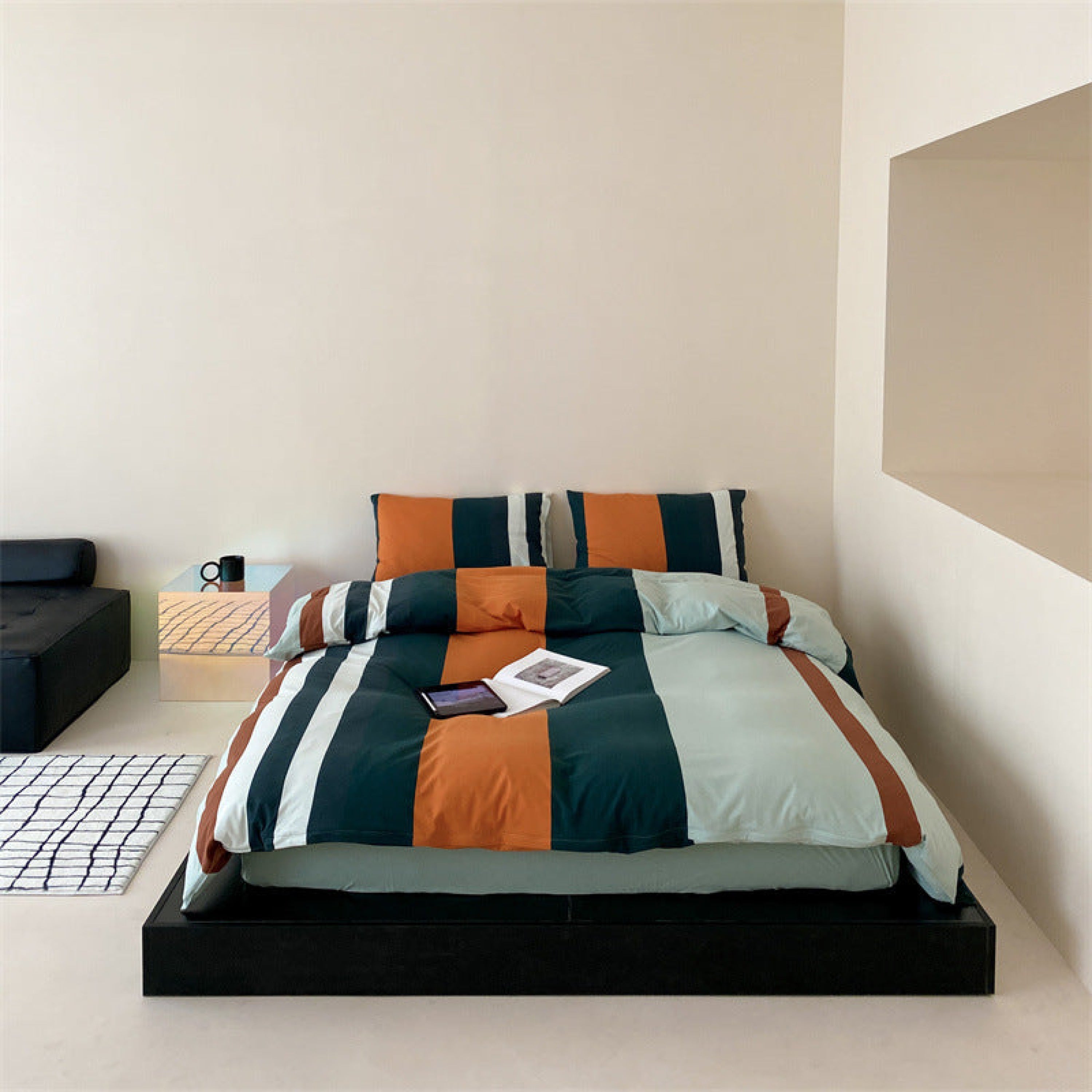 Introducing our Maximalist Striped Bedding Set. a bold and vibrant statement for those who embrace a fearless approach to style. Dive into a world of dynamic design with a striking array of rich. contrasting stripes that infuse your bedroom with energy and personality.Each duvet cover is equipped with four corner ties and a hidden zipper to ensure your duvet insert stays securely in place all night. Embrace the art of bold expression and transform your nightly retreat into a maximalist masterpiece.