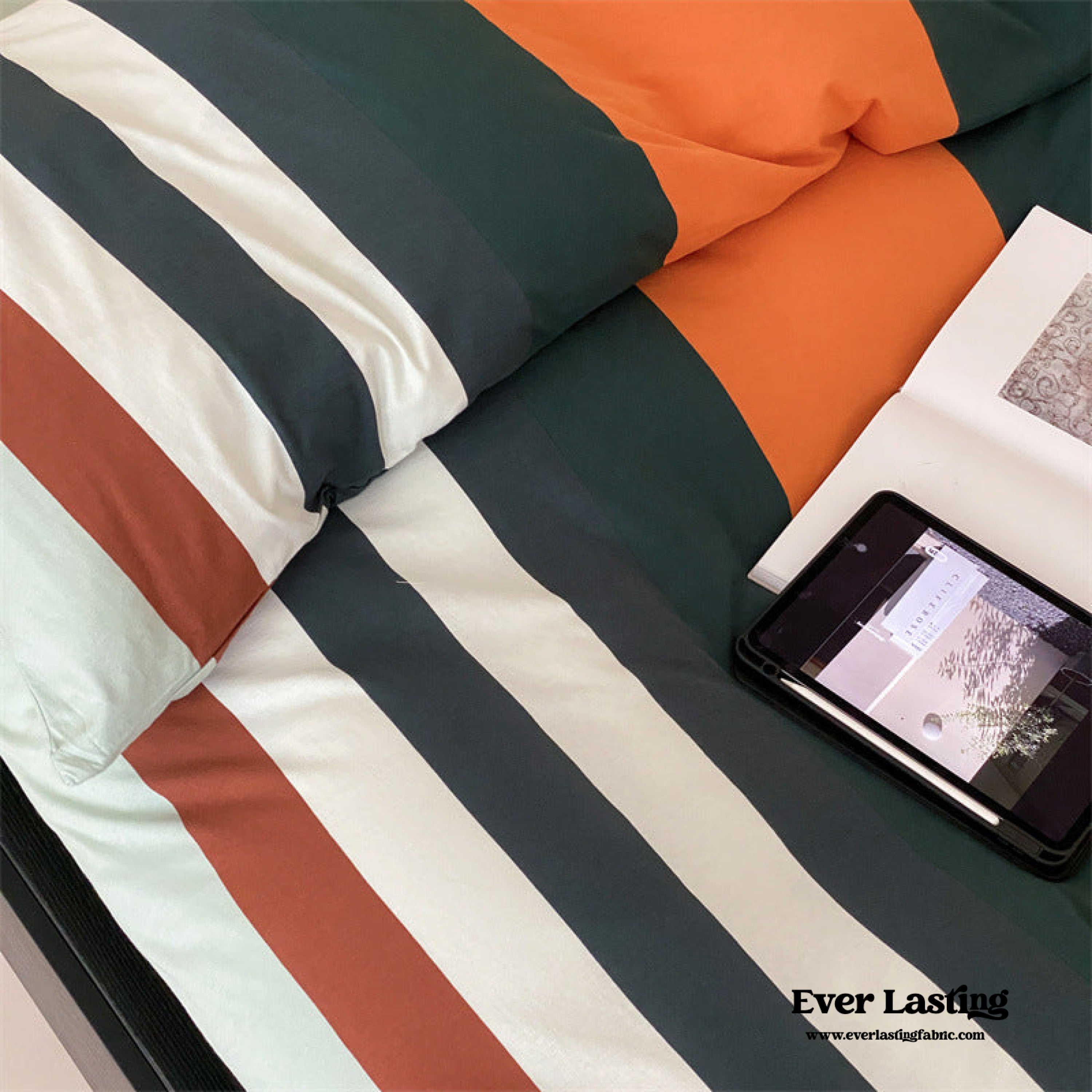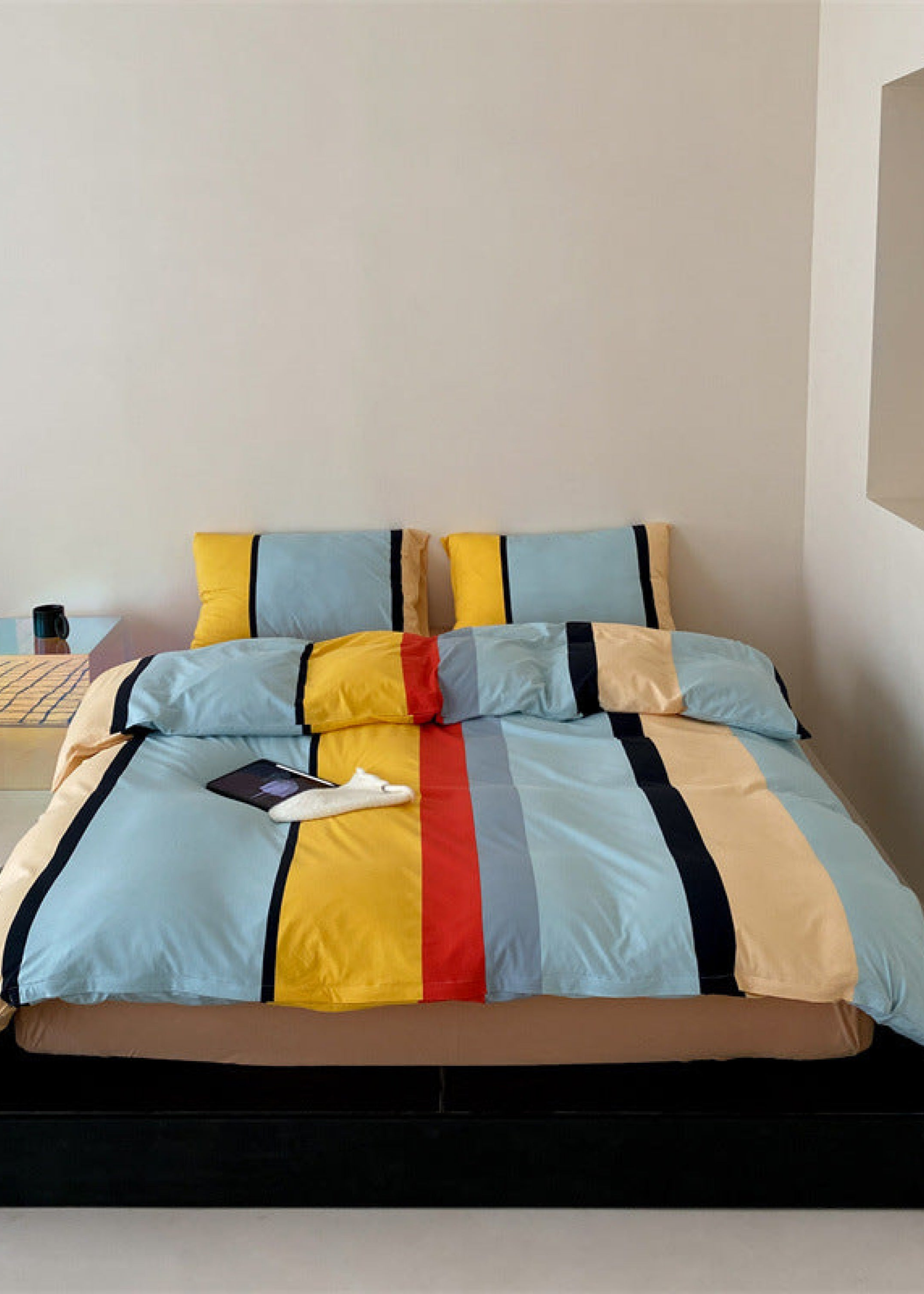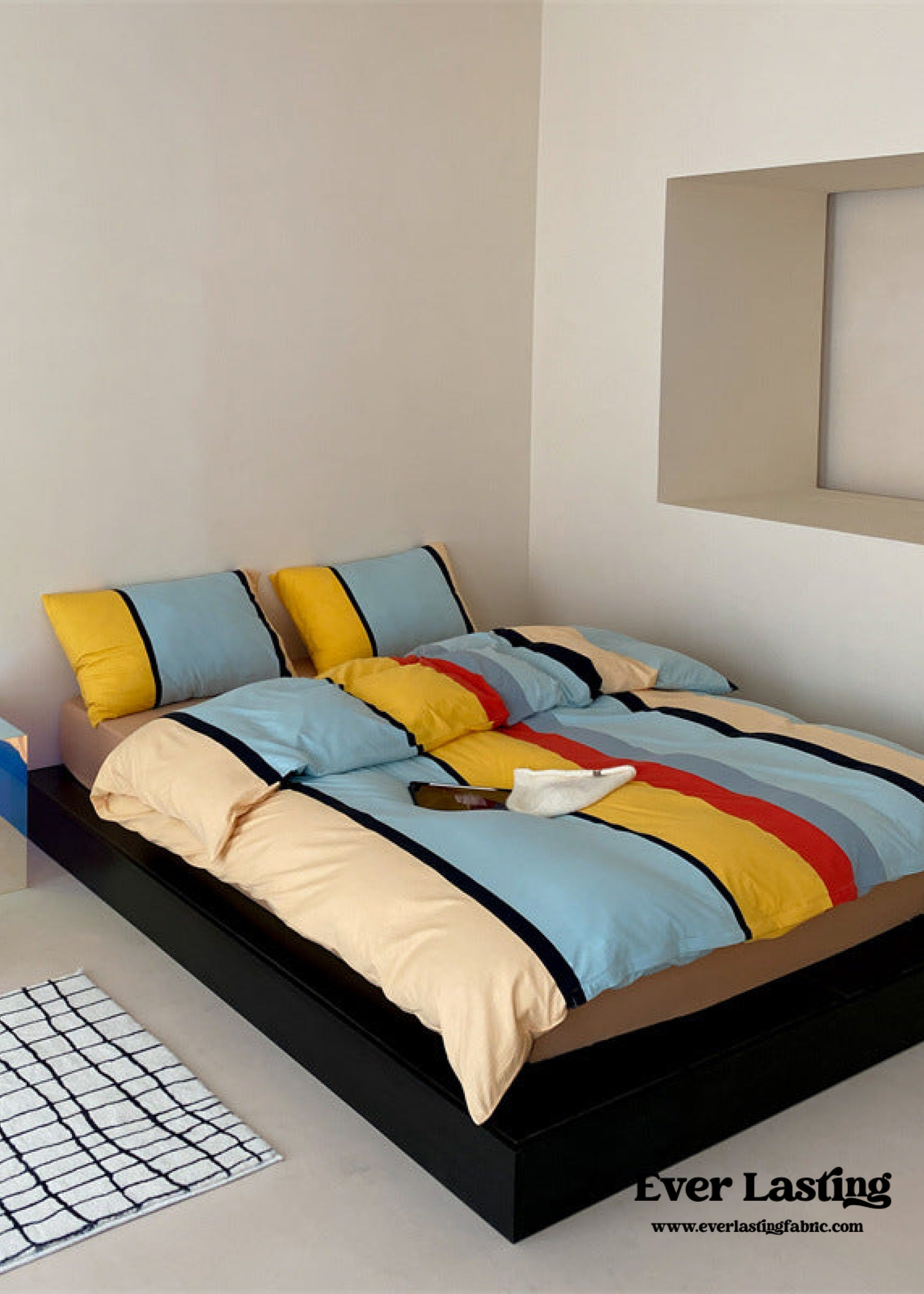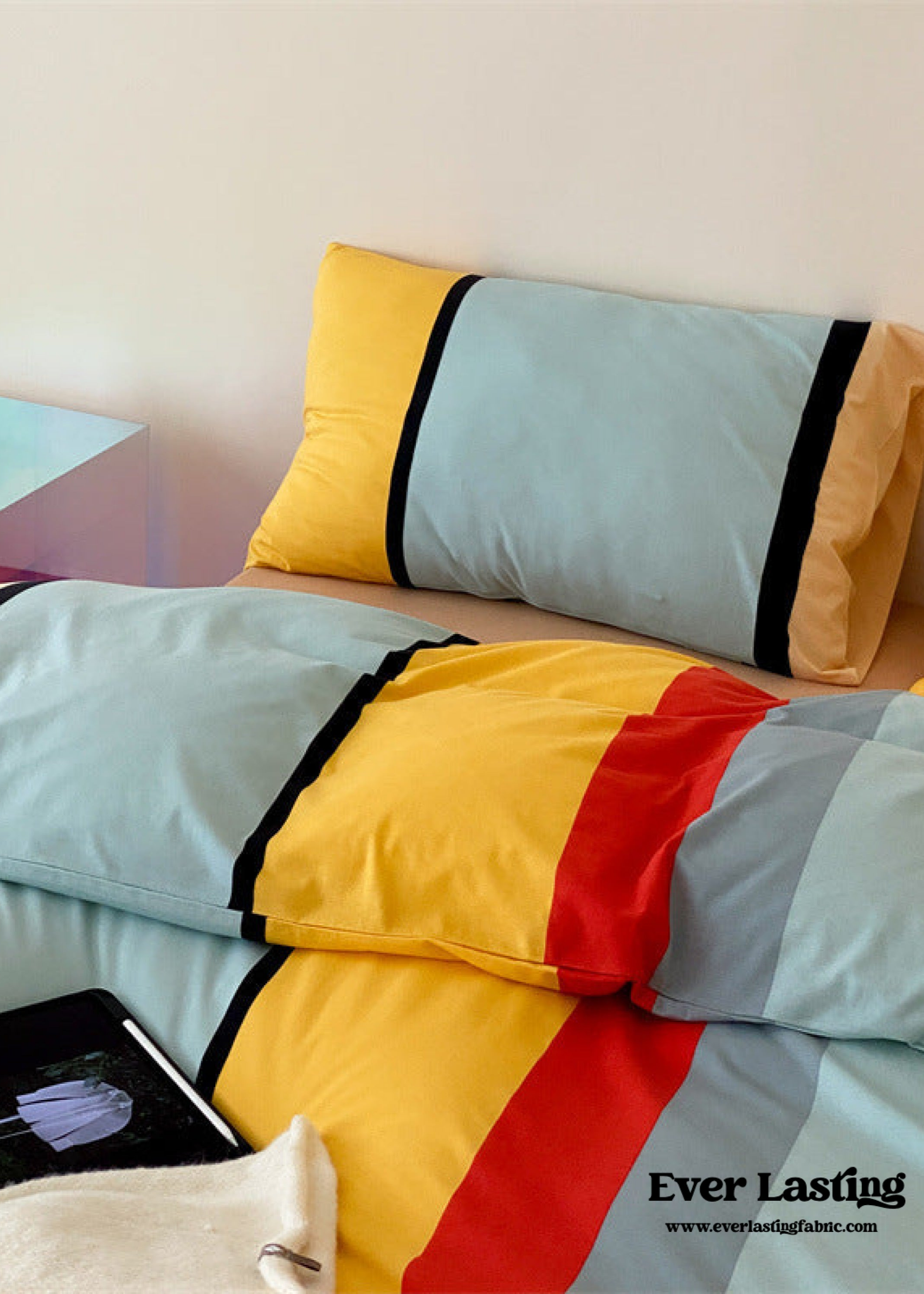 Introducing our Maximalist Striped Bedding Set. a bold and vibrant statement for those who embrace a fearless approach to style. Dive into a world of dynamic design with a striking array of rich. contrasting stripes that infuse your bedroom with energy and personality.Each duvet cover is equipped with four corner ties and a hidden zipper to ensure your duvet insert stays securely in place all night. Embrace the art of bold expression and transform your nightly retreat into a maximalist masterpiece.