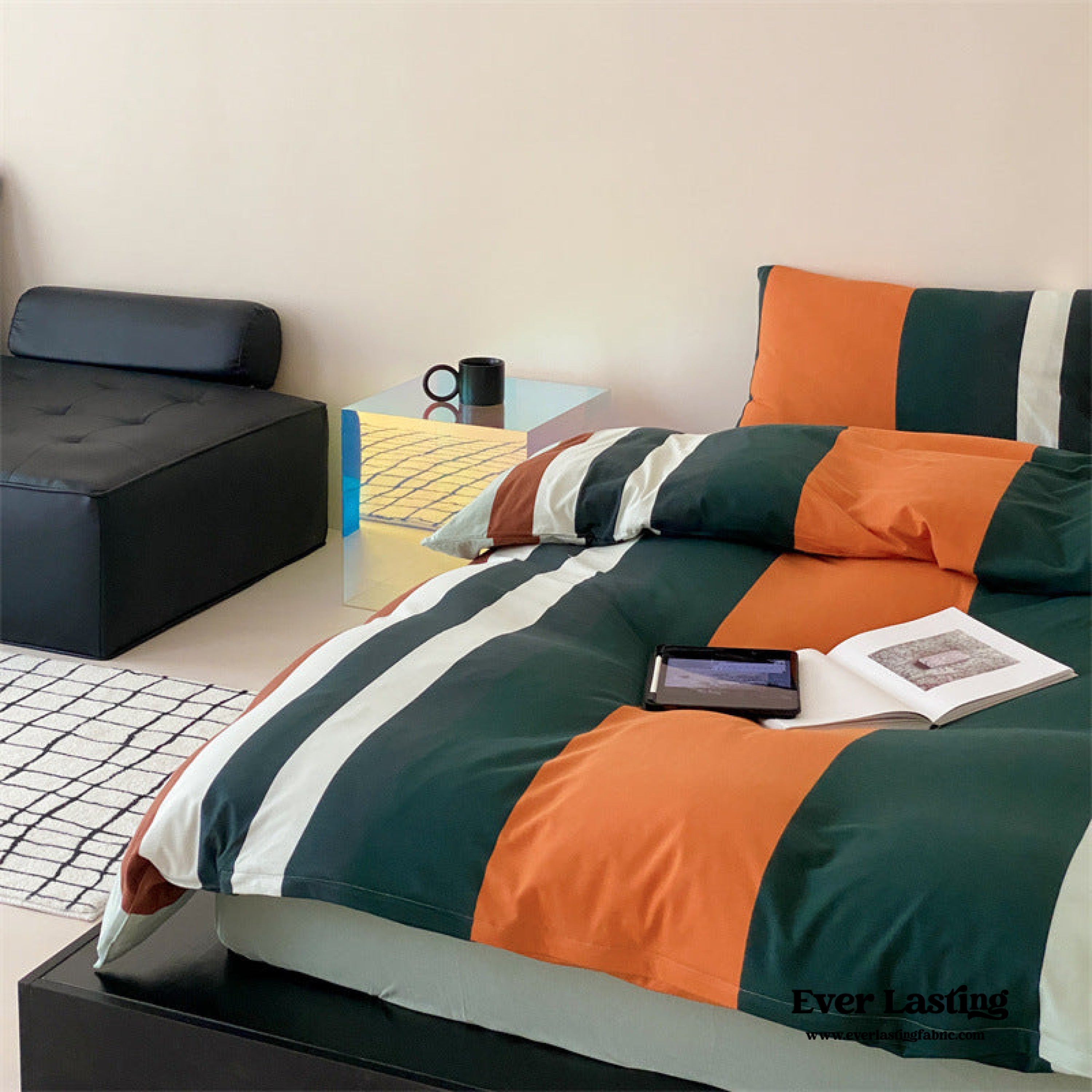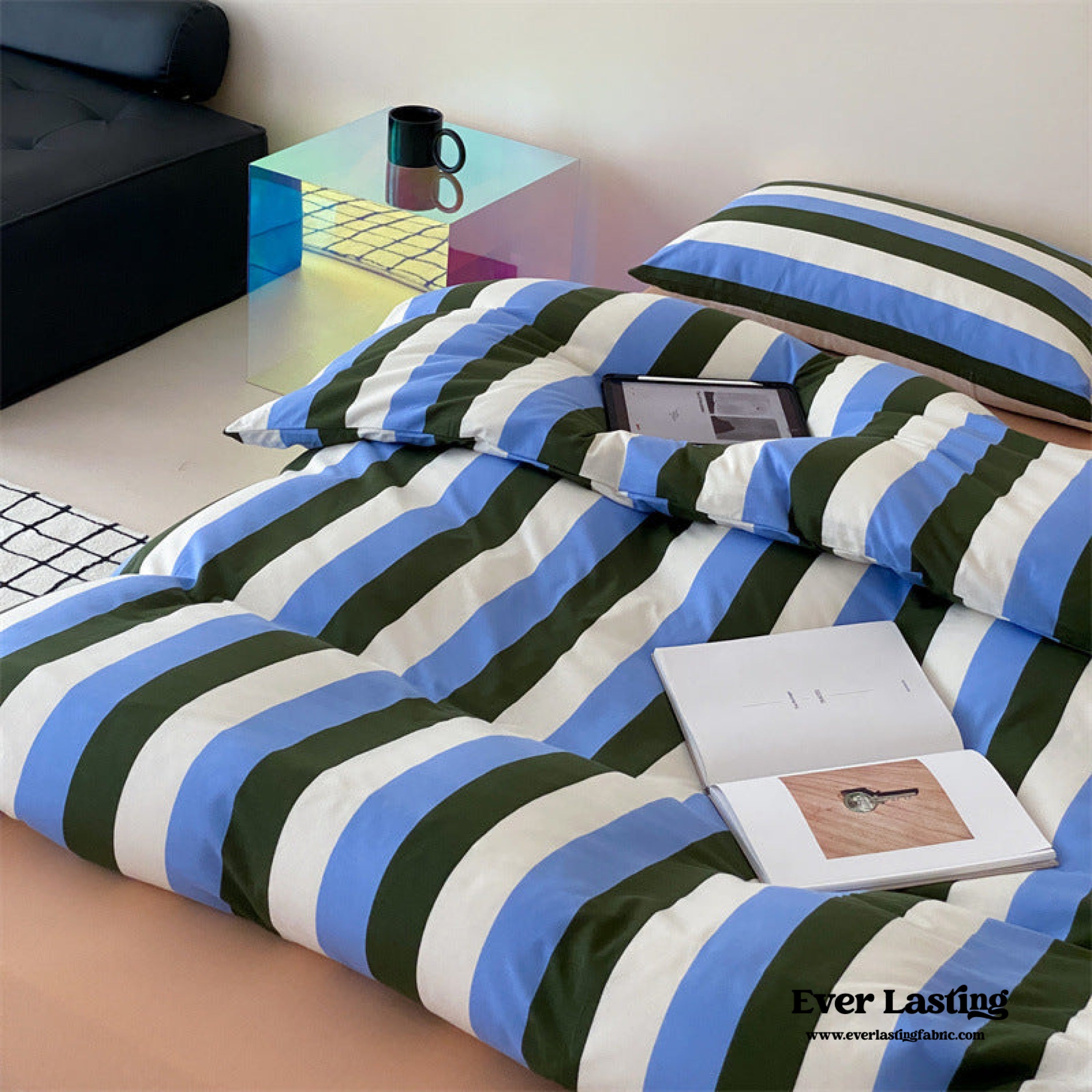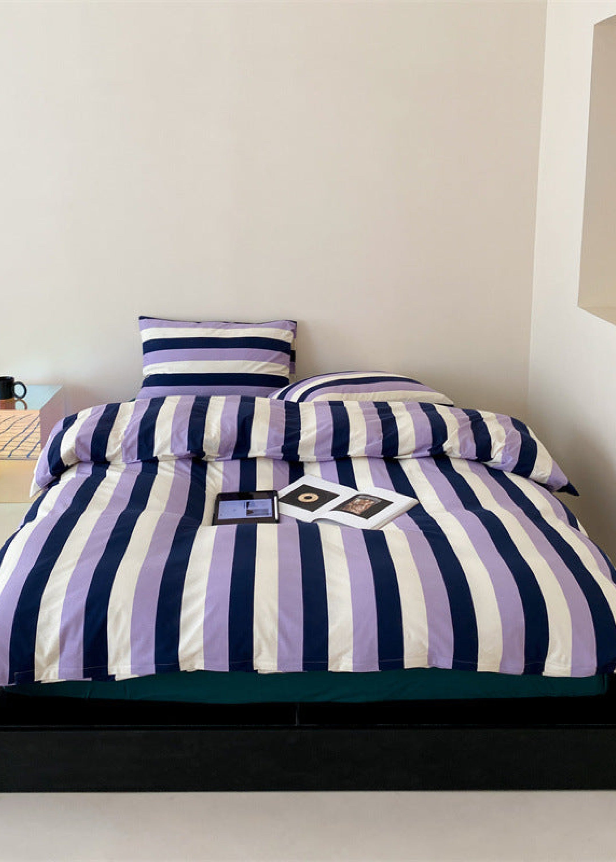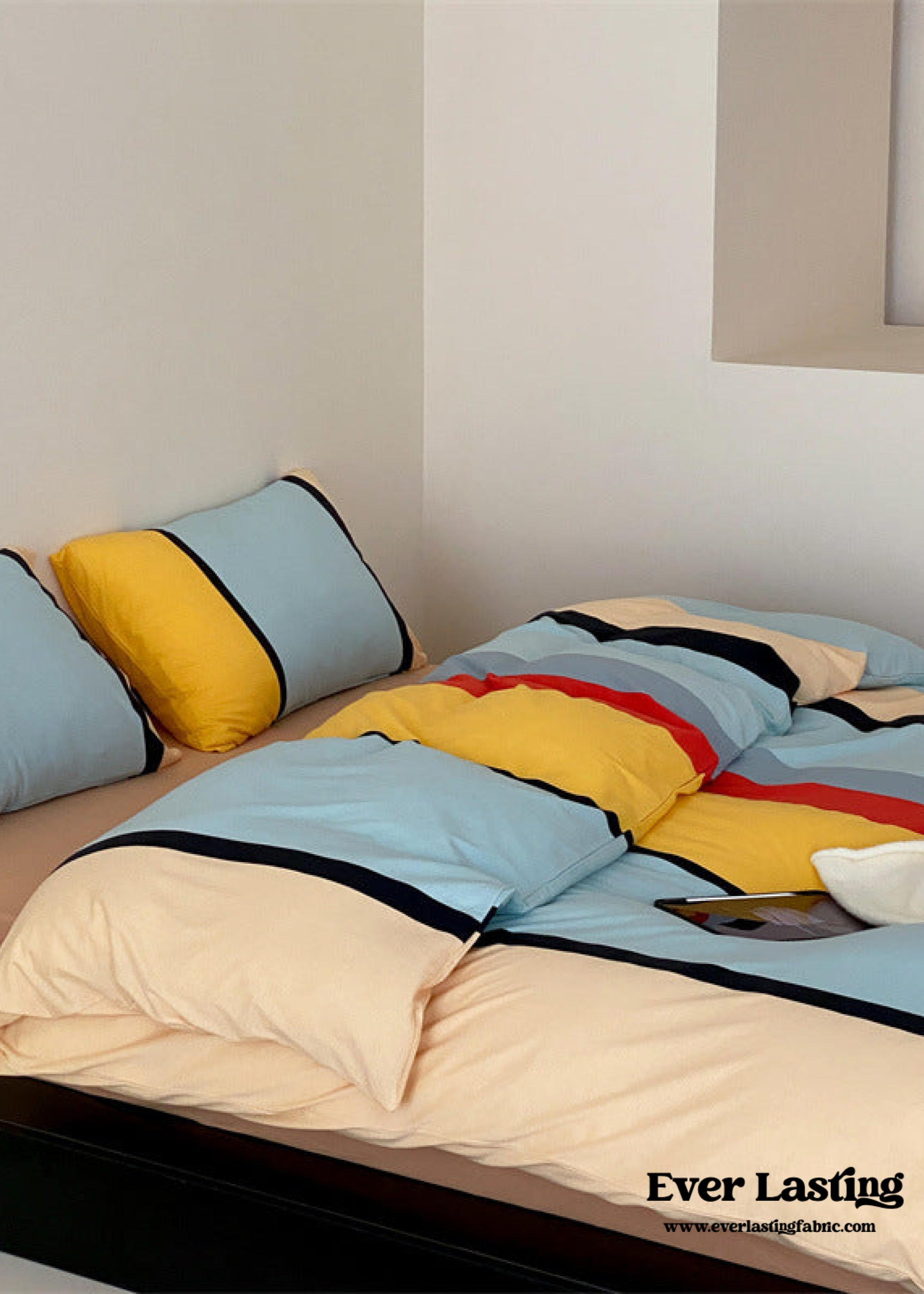 Introducing our Maximalist Striped Bedding Set. a bold and vibrant statement for those who embrace a fearless approach to style. Dive into a world of dynamic design with a striking array of rich. contrasting stripes that infuse your bedroom with energy and personality.Each duvet cover is equipped with four corner ties and a hidden zipper to ensure your duvet insert stays securely in place all night. Embrace the art of bold expression and transform your nightly retreat into a maximalist masterpiece.