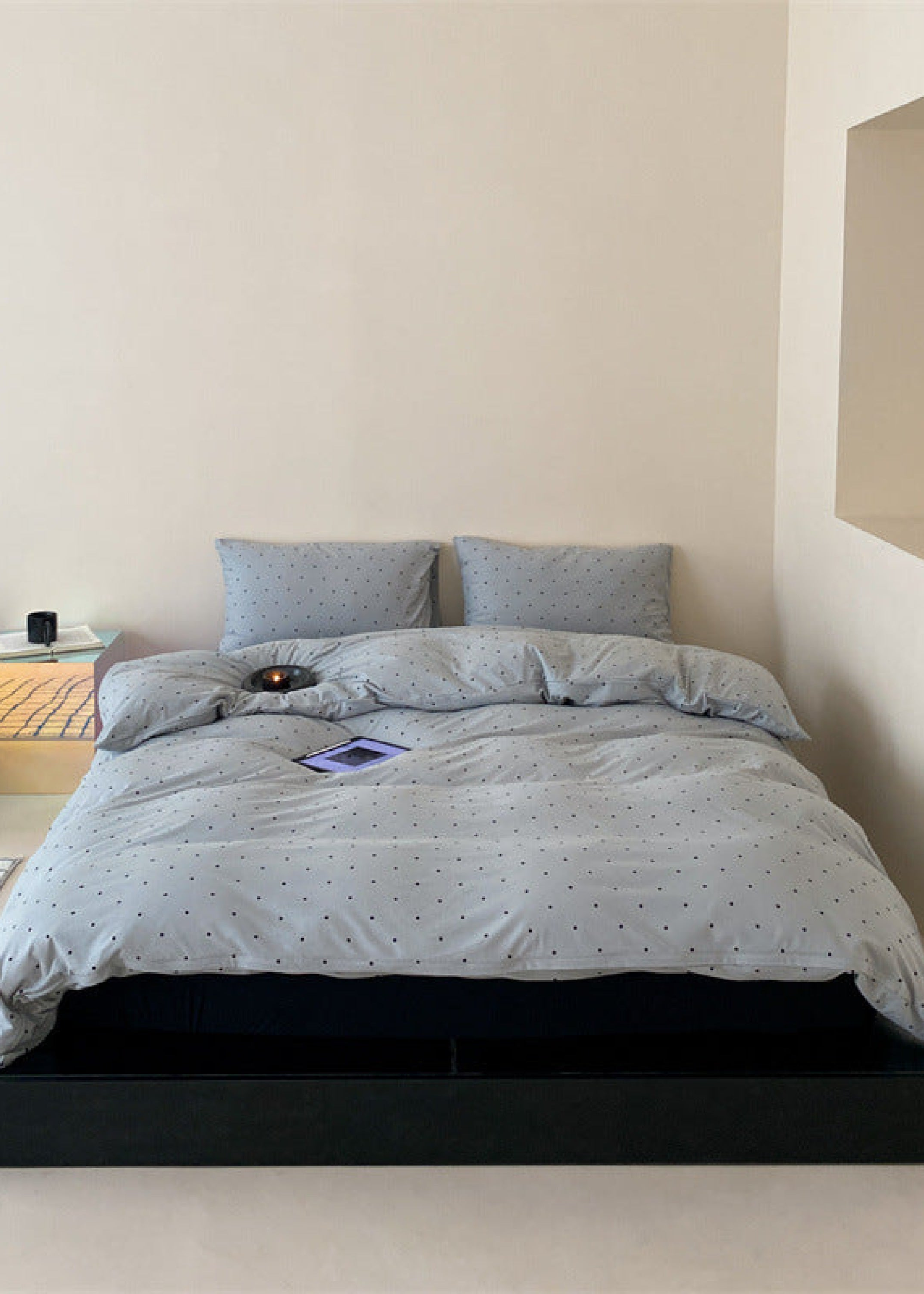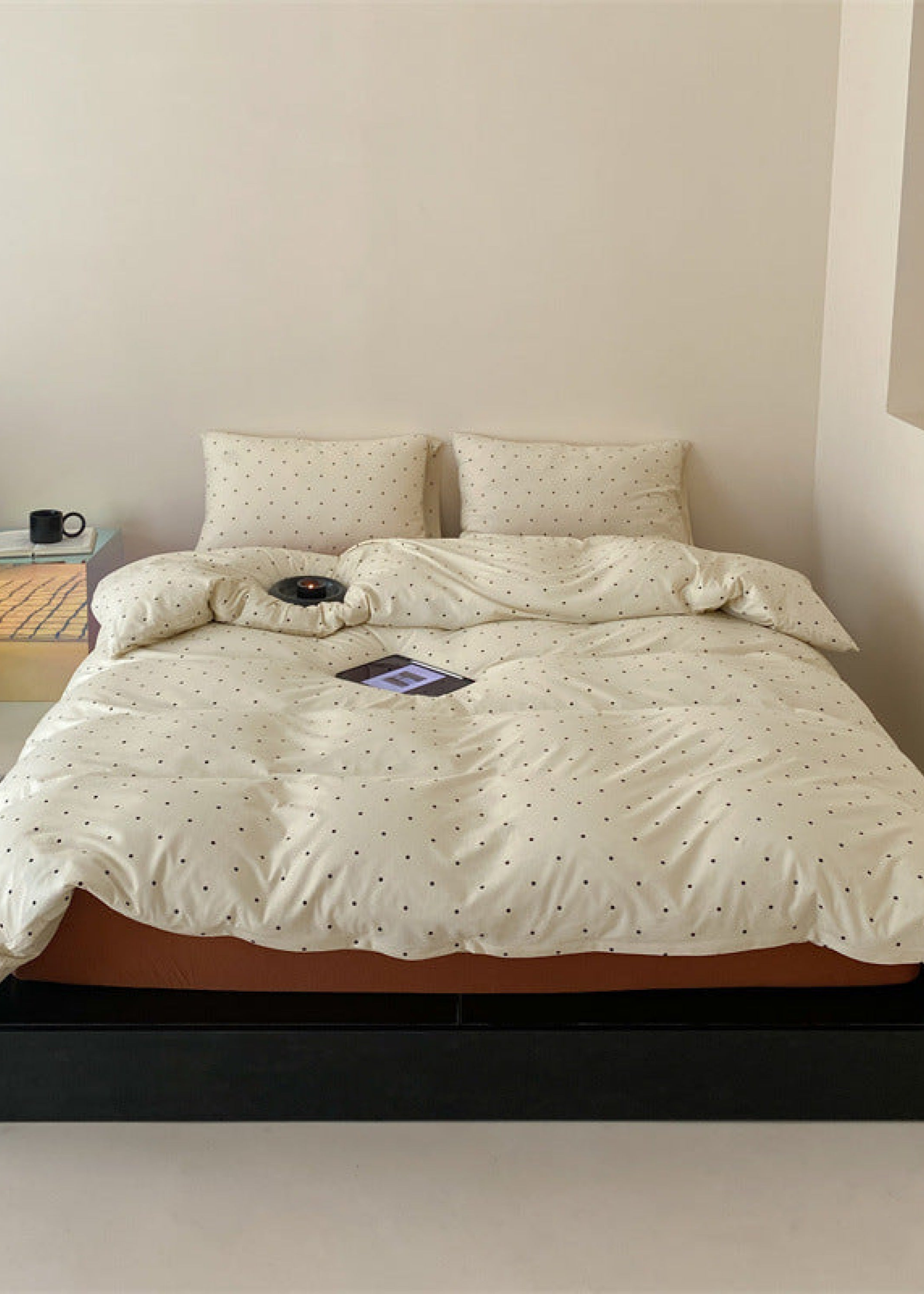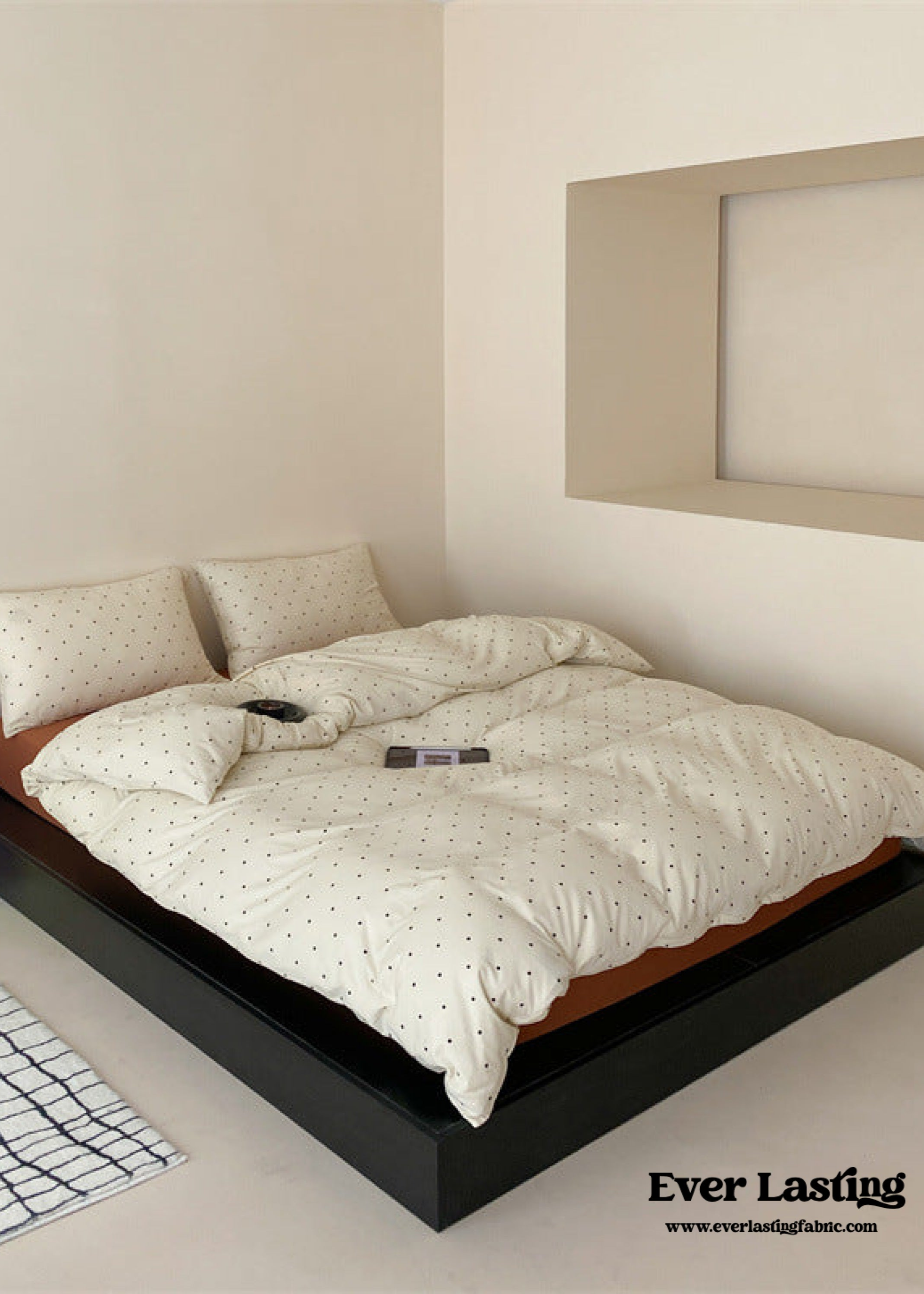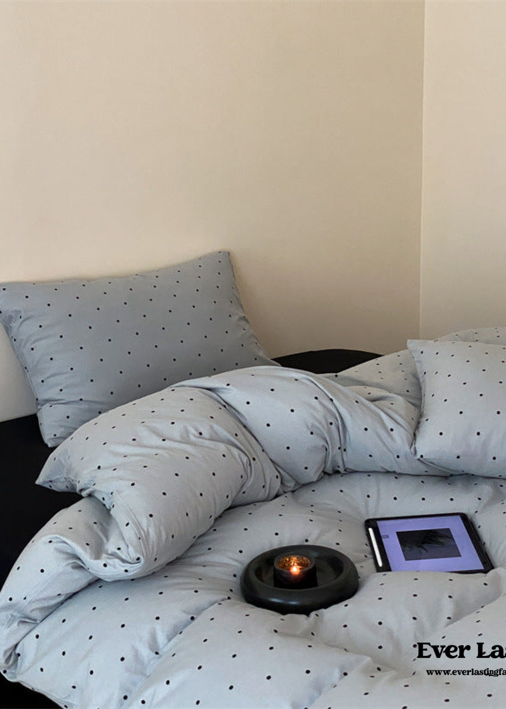 Introducing our Mini Polka Dot Jersey Knit Bedding Set. where comfort meets charm in a delightful dance of style. Crafted from premium jersey knit fabric. this bedding ensemble brings a touch of playfulness to your bedroom with its timeless mini polka dot pattern.Each duvet cover is equipped with four corner ties and a hidden zipper to ensure your duvet insert stays securely in place all night. Embrace the joy of a well-appointed space and make your nightly retreat a celebration of both style and relaxation.