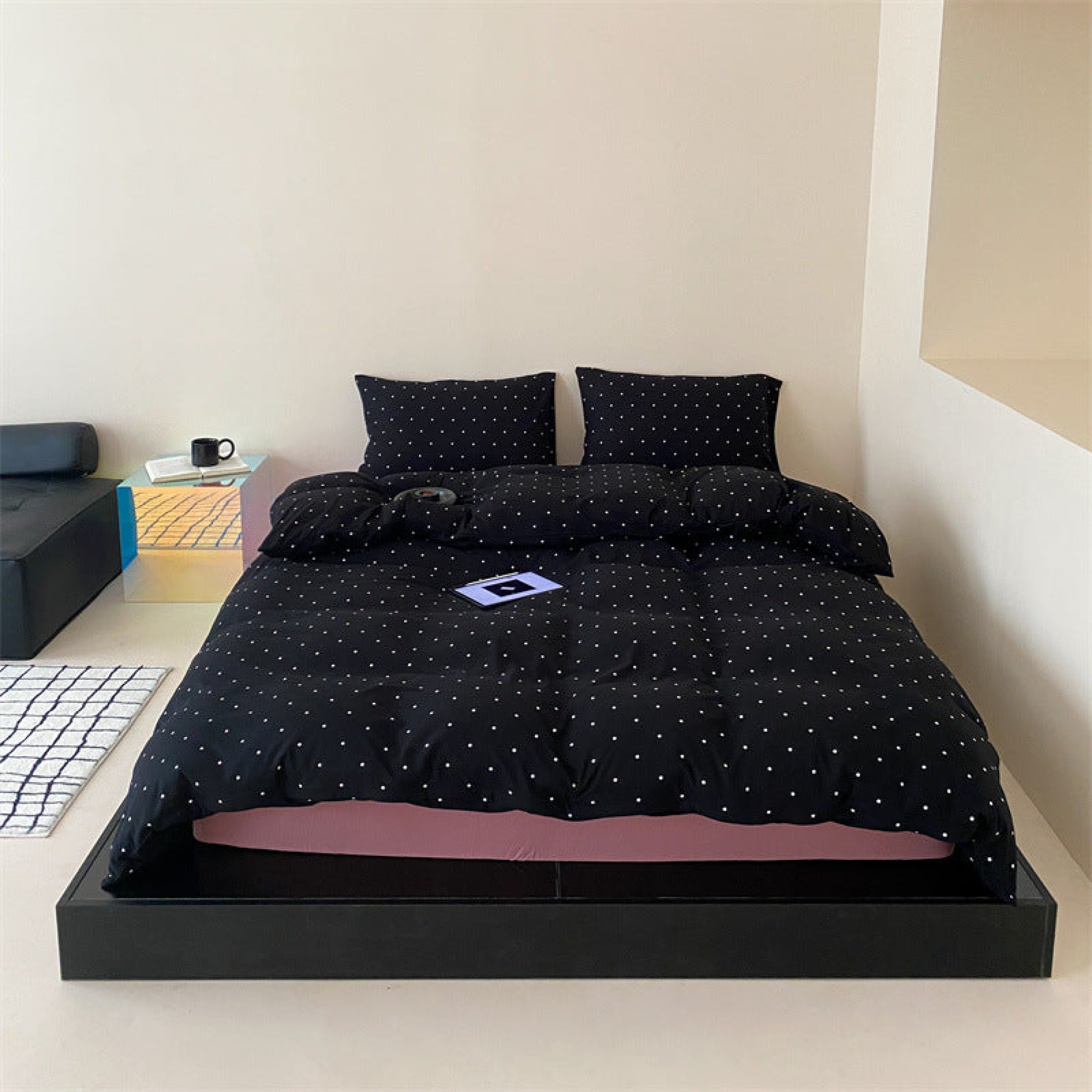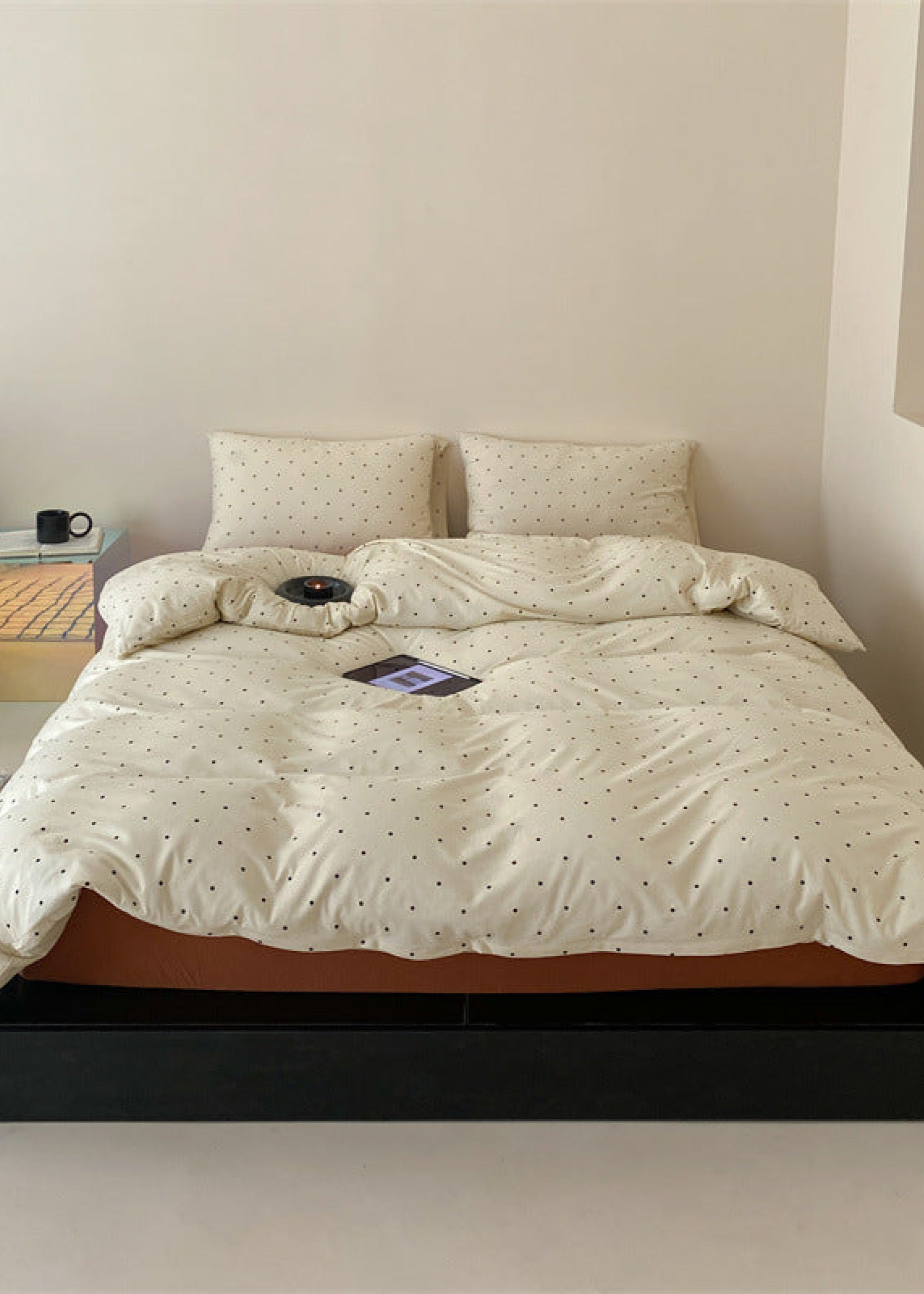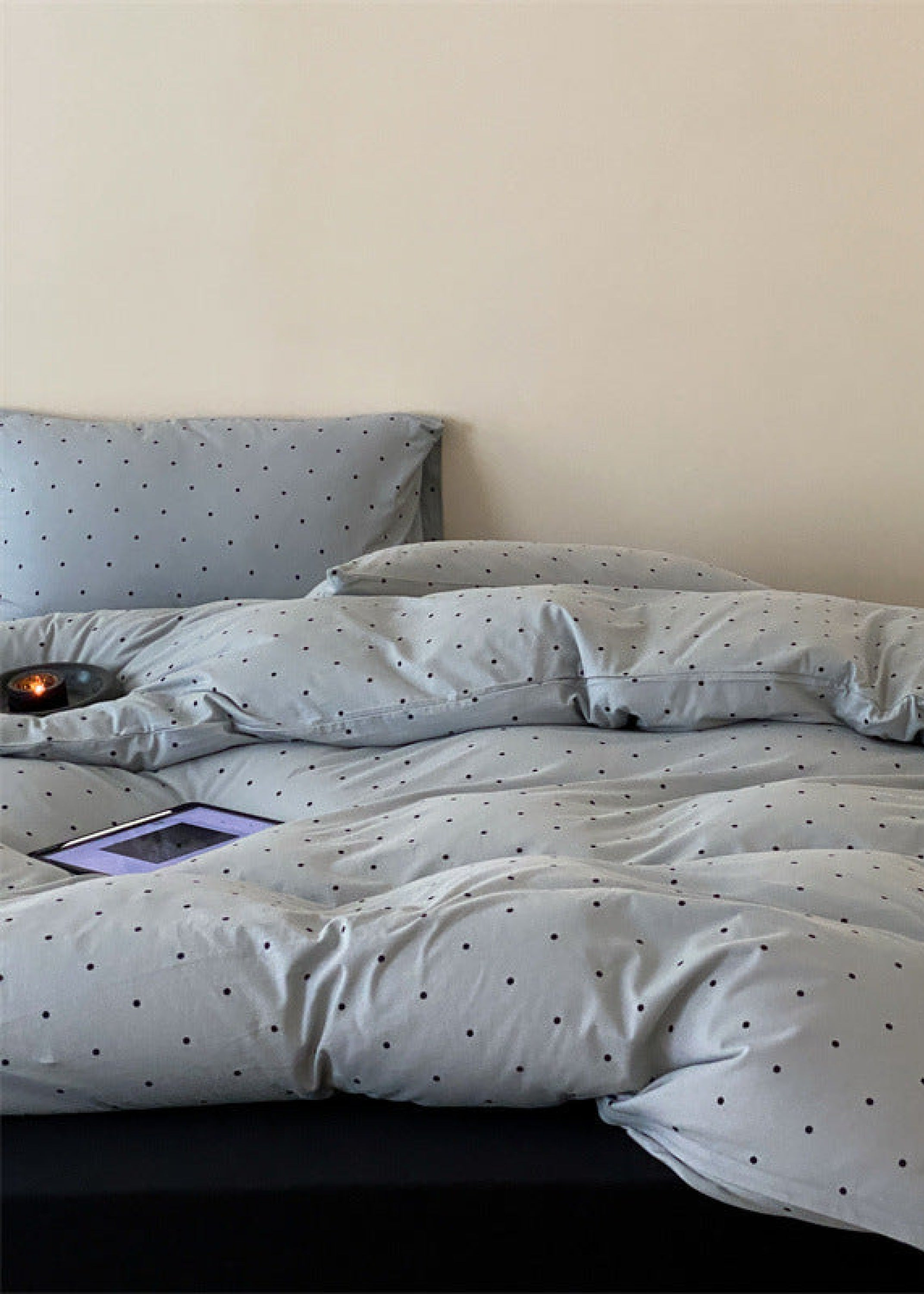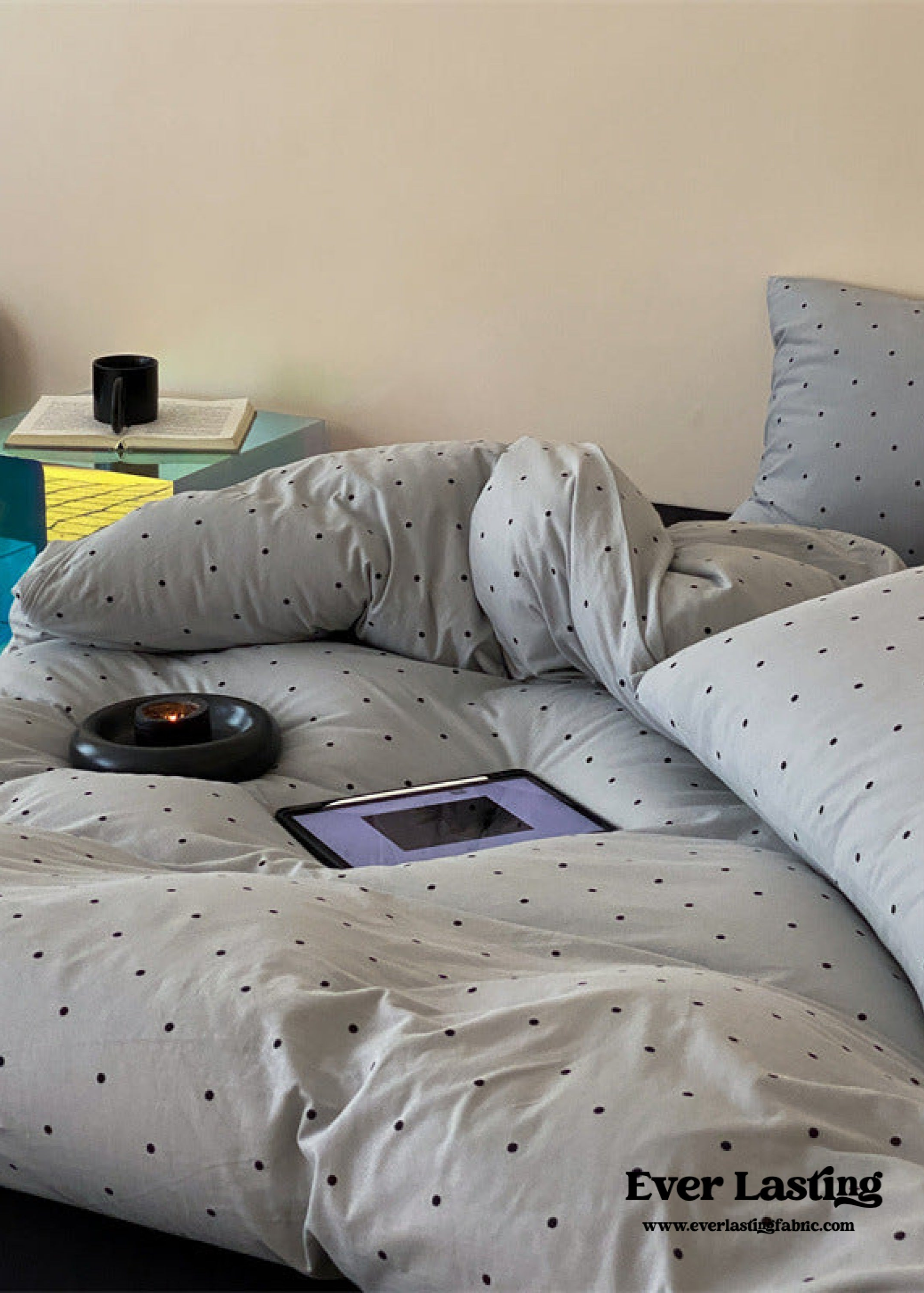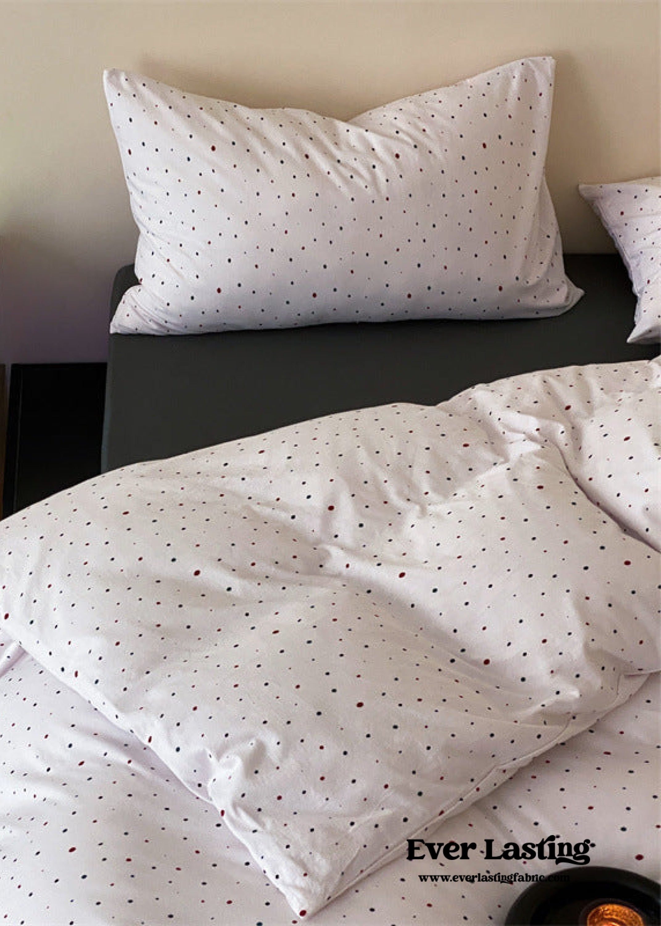 Introducing our Mini Polka Dot Jersey Knit Bedding Set. where comfort meets charm in a delightful dance of style. Crafted from premium jersey knit fabric. this bedding ensemble brings a touch of playfulness to your bedroom with its timeless mini polka dot pattern.Each duvet cover is equipped with four corner ties and a hidden zipper to ensure your duvet insert stays securely in place all night. Embrace the joy of a well-appointed space and make your nightly retreat a celebration of both style and relaxation.