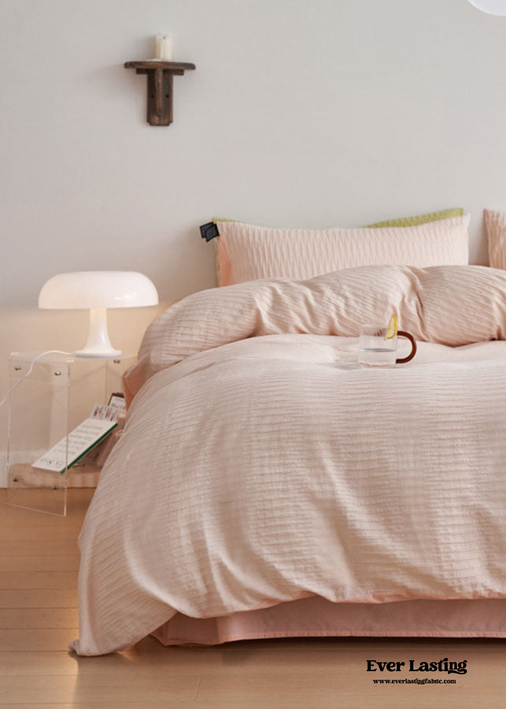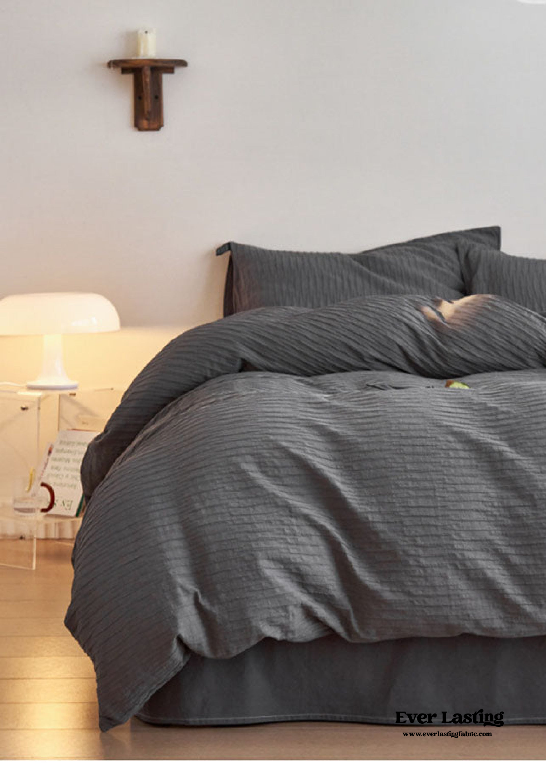 Experience our Minimal Jacquard Bedding Set. the epitome of refined simplicity. Crafted with meticulous attention to detail. this set embodies minimalist elegance with its clean lines and subtle jacquard pattern. Made with premium materials. it offers both softness and durability for a comfortable sleep experience that stands the test of time. Create a tranquil oasis in your bedroom with our minimalist Jacquard Bedding Set and embrace the beauty of understated luxury.