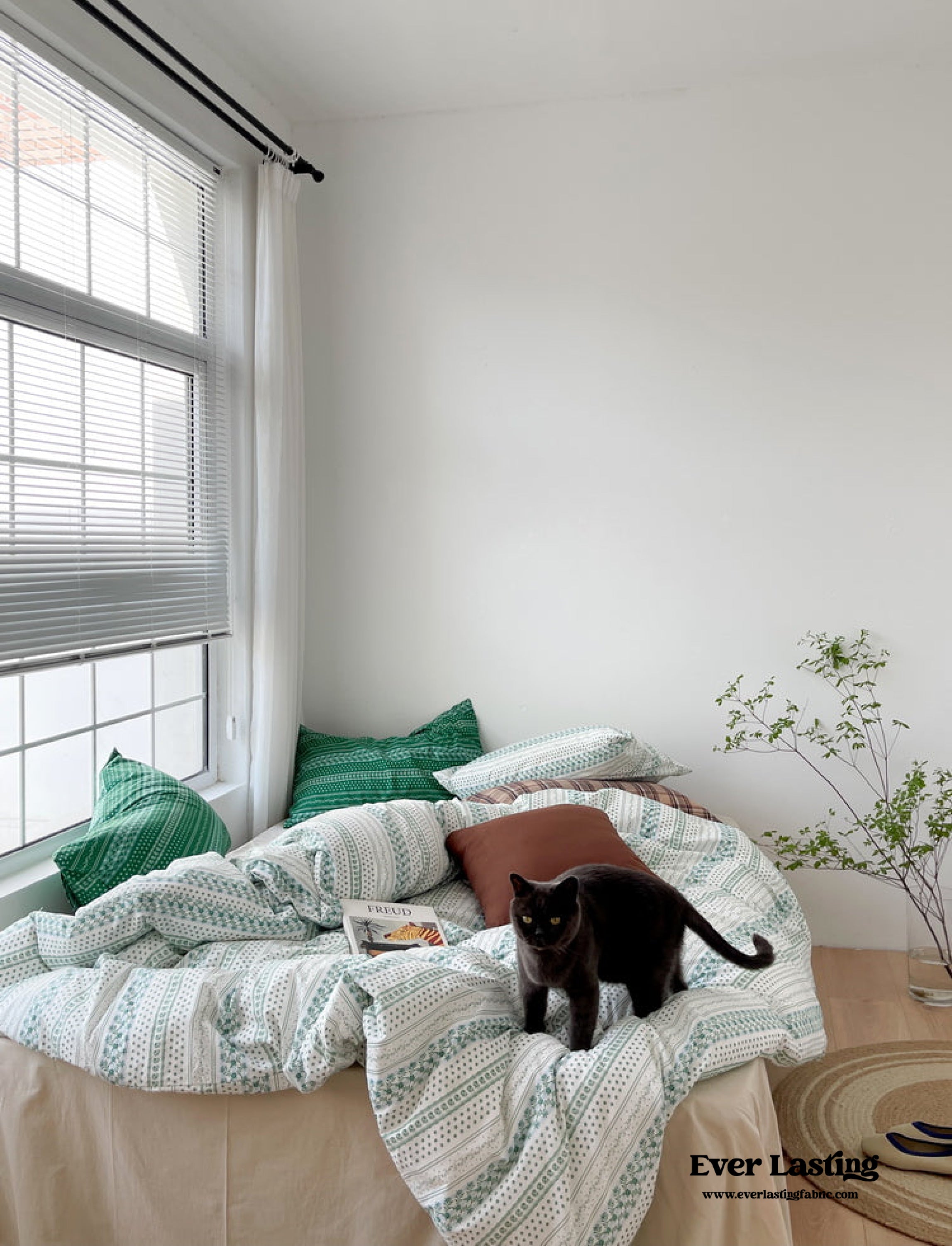Transform your bedroom into a serene and stylish retreat with Magchic's Mint Boho Vintage Bedding Set. a perfect blend of fresh charm and timeless design. Crafted from 100% breathable washed cotton. this bedding set offers a soft. luxurious texture ideal for restful nights. The delicate striped pattern in soothing mint brings a refreshing and vintage-inspired aesthetic to your space. Each duvet cover features corner ties and a hidden zipper for securing duvet inserts. promising enduring quality tailored just for you. Perfect for those who appreciate elegant simplicity. this bedding set combines functionality and artistry to elevate your bedroom decor.