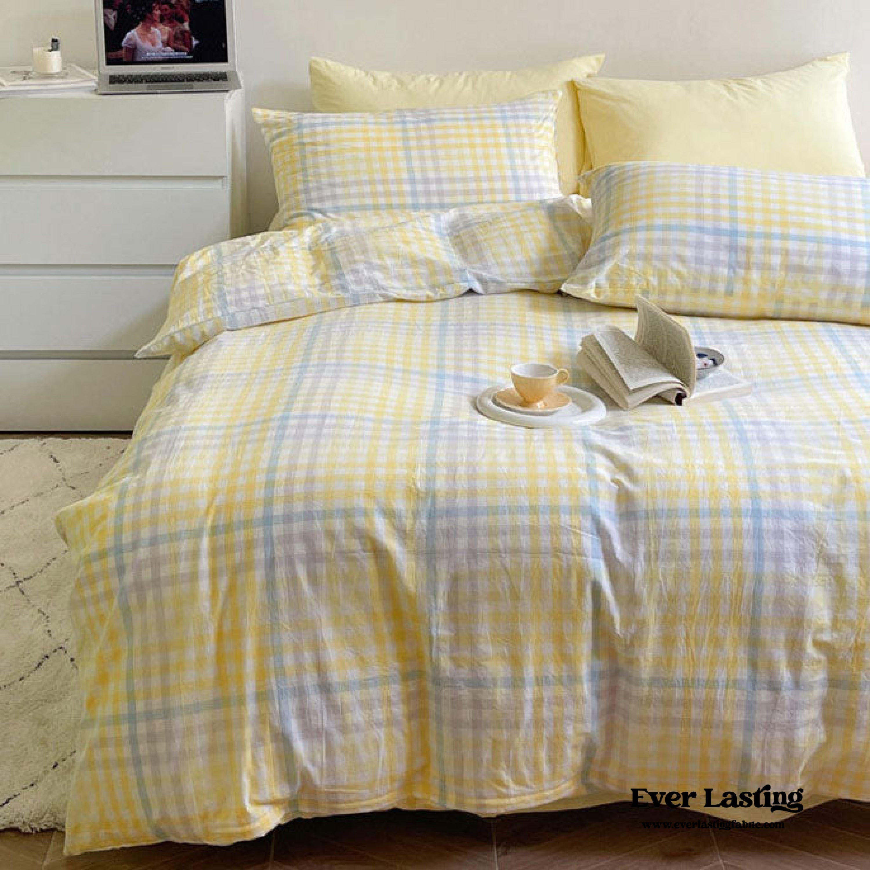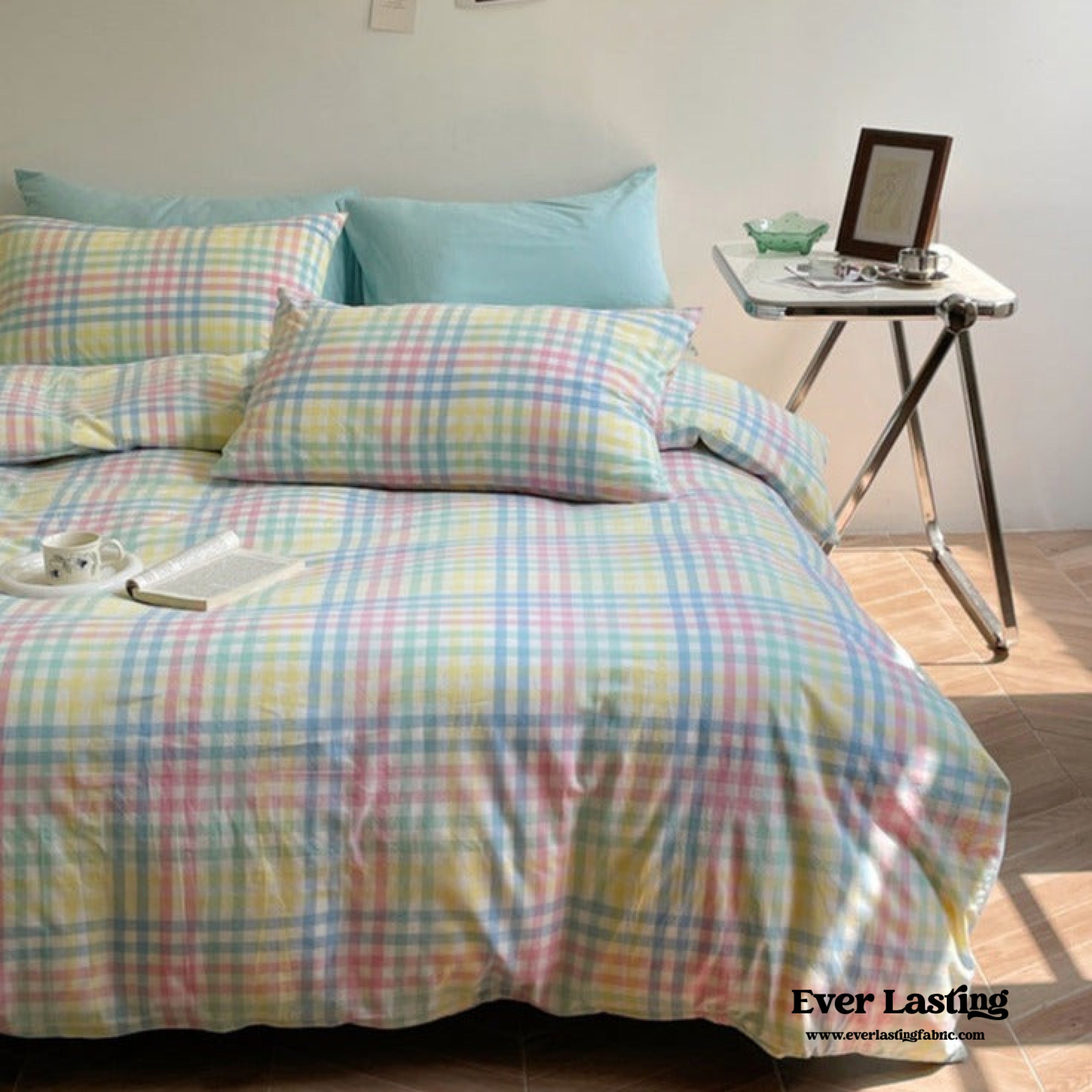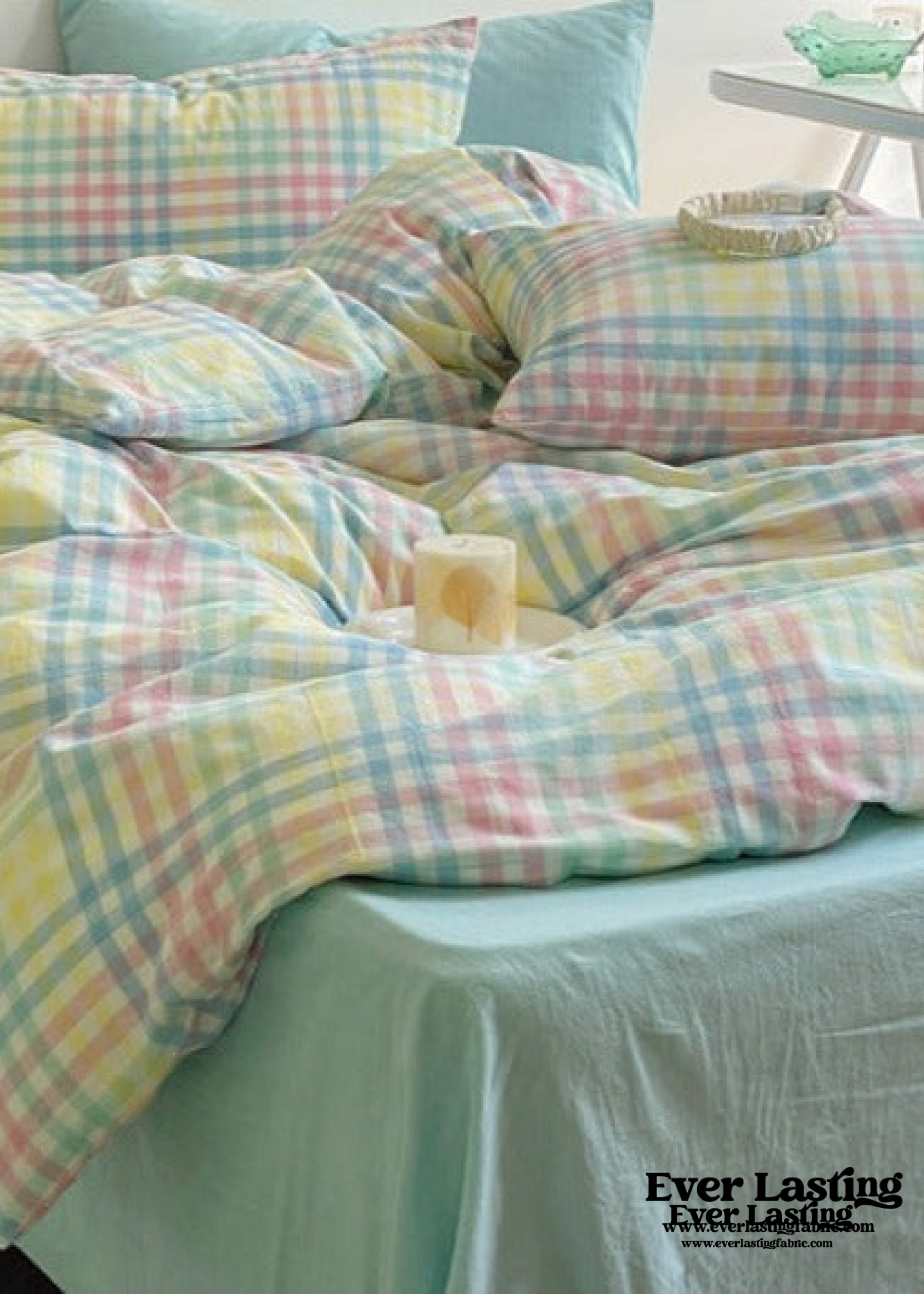 Indulge in our Rainbow Gingham Bedding Bundle. a perfect blend of comfort and style. The Rainbow color palette brings a sense of tranquility and warmth to your bedroom. The timeless stripe design adds a touch of sophistication and elegance to your bedding ensemble. Crafted from high-quality materials. this bedding bundle ensures a soft and cozy feel. providing you with a restful night's sleep. Experience the ultimate comfort and style with our Rainbow Gingham Bedding Bundle. transforming your bedroom into a haven of relaxation and serenity.