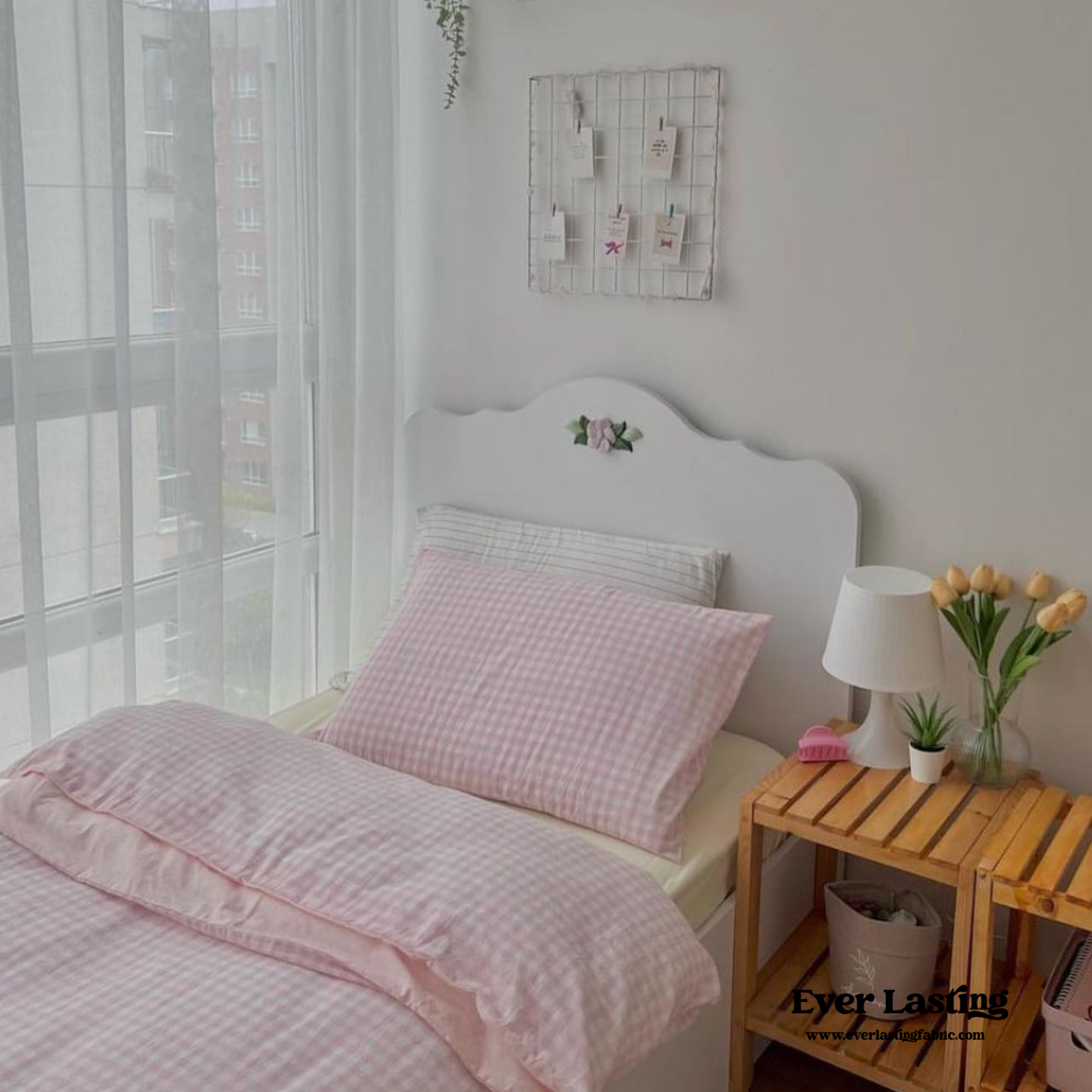 Introducing our new ginghamduvet cover with pastel shades. Made with 100% washed cotton that becomes softer with each wash. Duvet cover comes with 4 corner loops and hidden zipper to help keep your duvet insert clean.