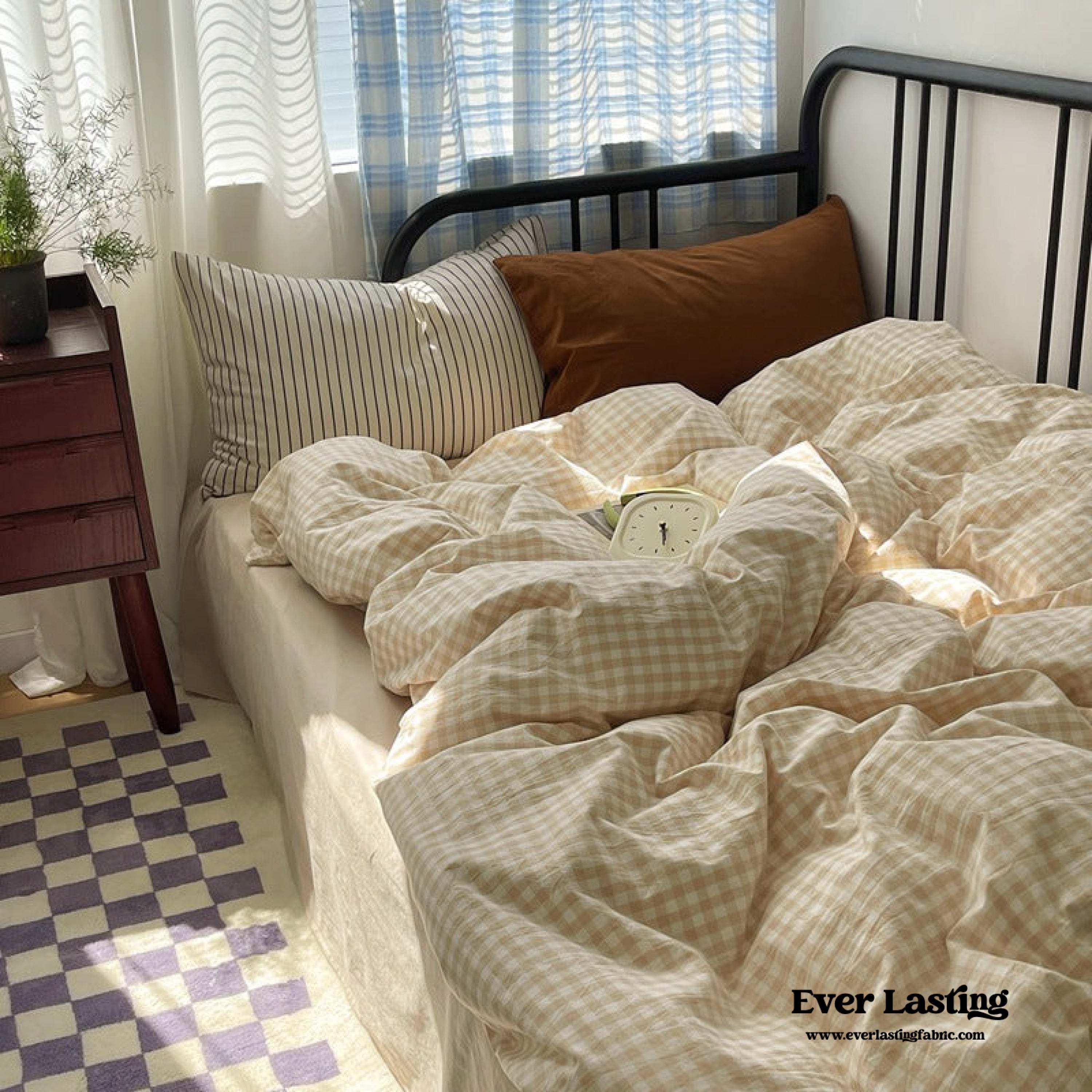 Revitalize your bedroom with our Mixed Gingham Striped Bedding Set. This set is a harmonious blend of classic gingham and contemporary stripes. creating a timeless yet modern aesthetic. Each duvet cover features four corner ties and a hidden zipper. ensuring your duvet insert stays securely in place all night. Elevate your sleep experience with this versatile and stylish bedding set. turning your bedroom into a space where tradition meets innovation. and each night is a unique. cozy adventure.