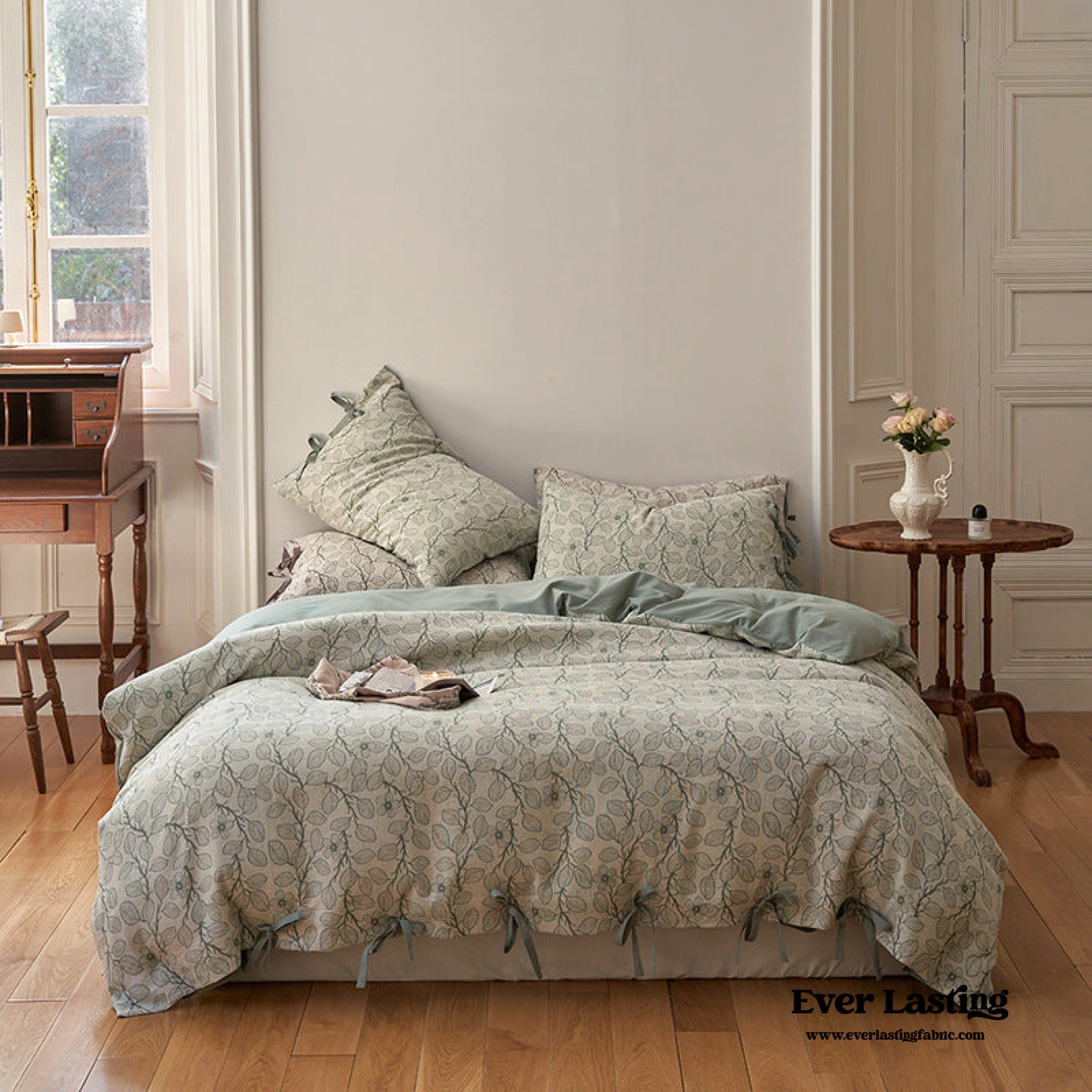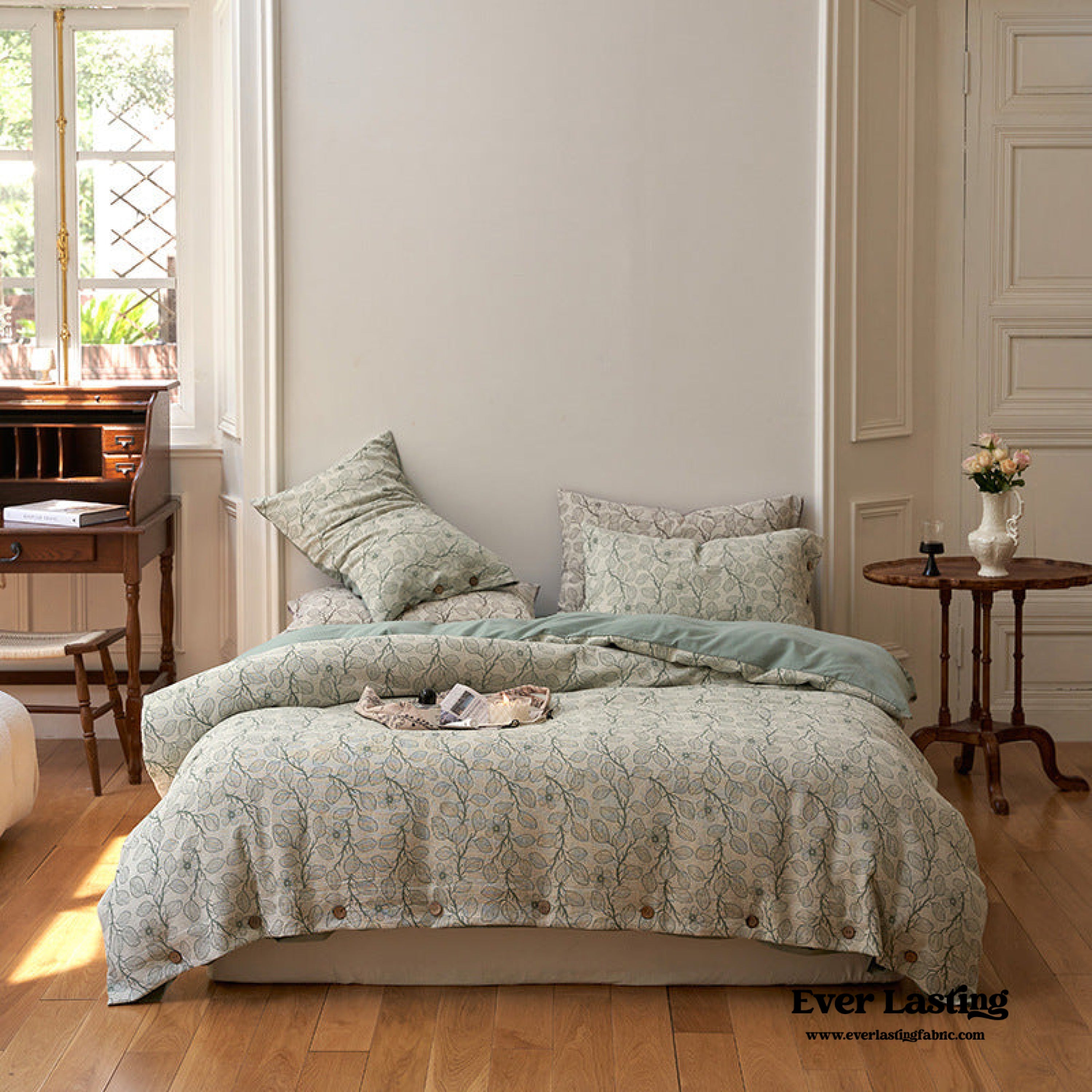 Bring the beauty of nature into your bedroom with our Mother Earth Floral Bedding Set. This set is adorned with delicate floral patterns that pay homage to the natural world. Crafted with the utmost care. it offers not only comfort but also a connection to the serene charm of the Earth. Each duvet cover features four corner ties and a hidden zipper. ensuring your duvet insert stays securely in place all night. Elevate your sleep experience with a touch of eco-conscious elegance. turning your bedroom into a haven where dreams bloom in harmony with the beauty of the world.