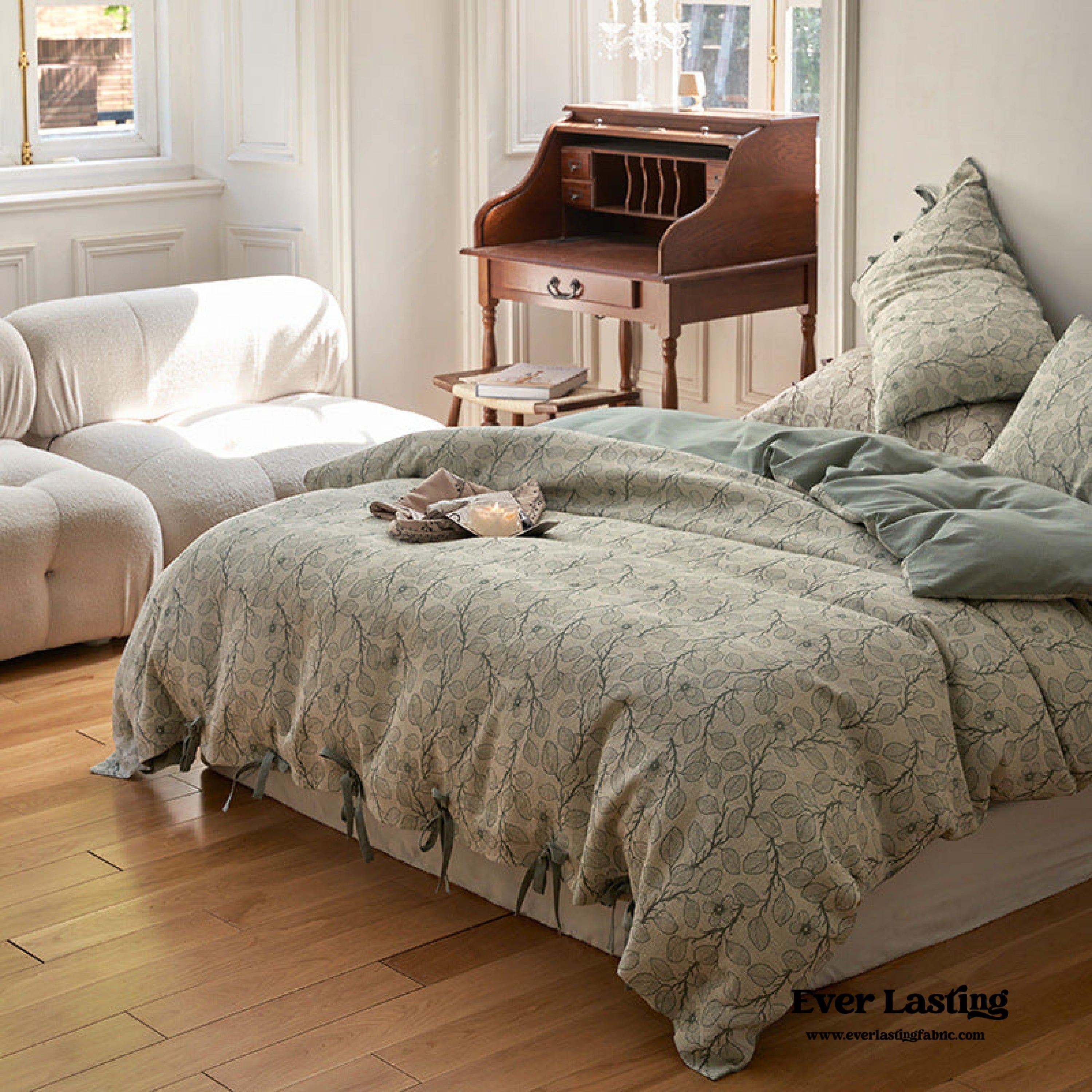 Mother Earth Floral Bedding Set - Green Ribbon Ties