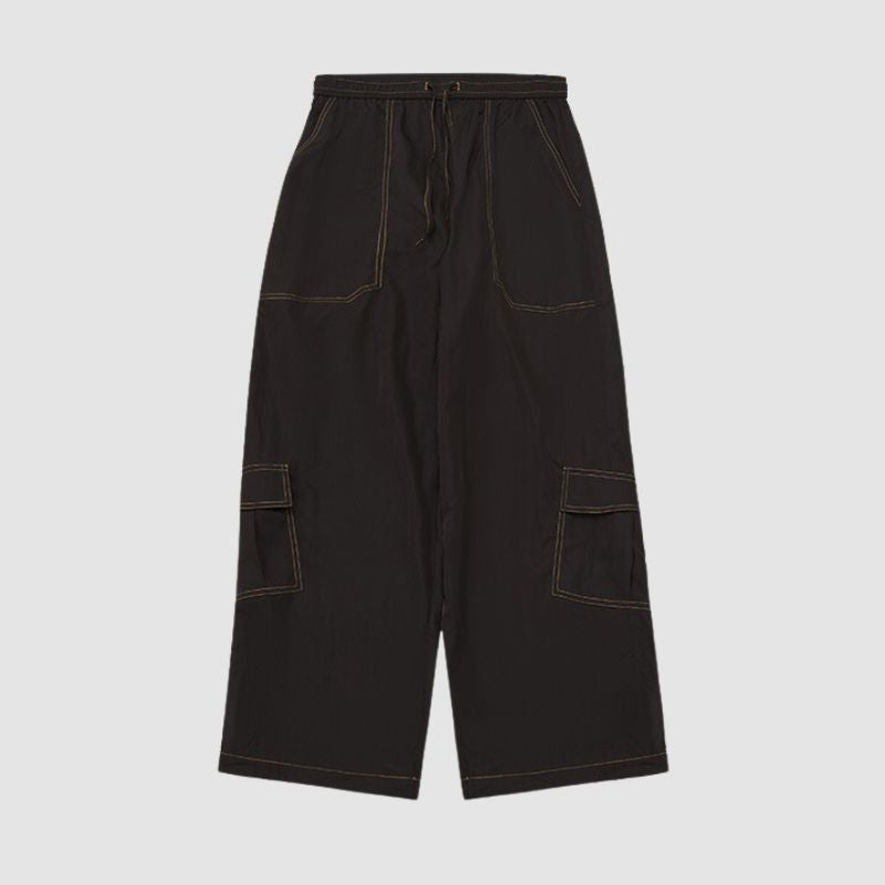 Pantalones con cordón y parche de múltiples bolsillos de color sólido