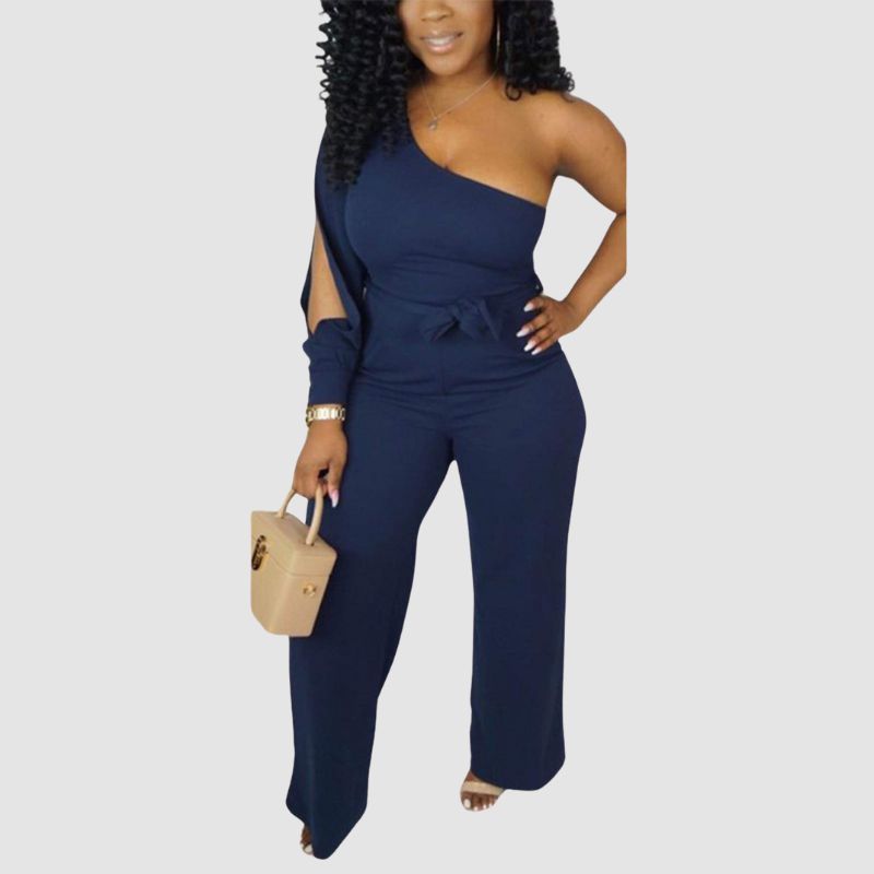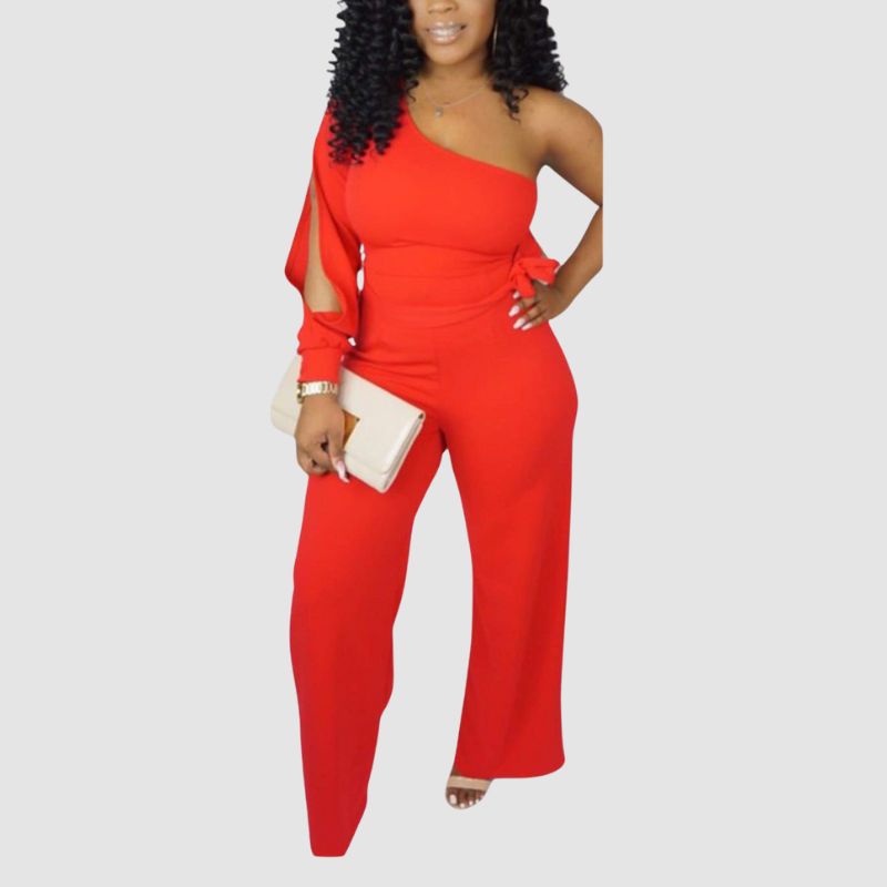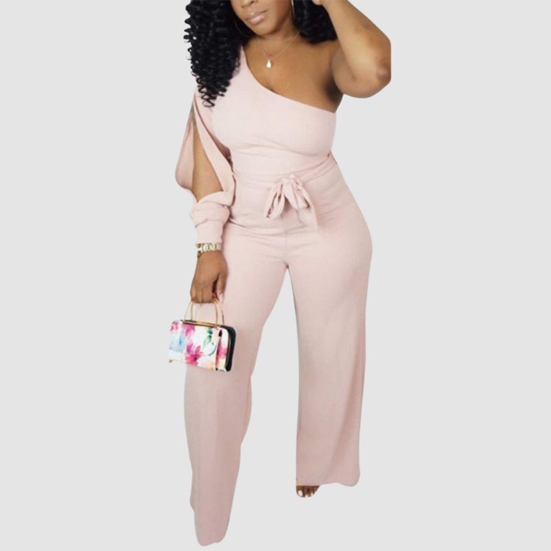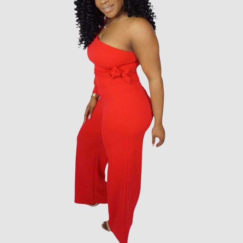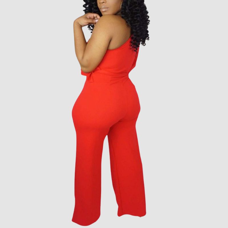 Características: Monos. Sueltos. Un solo hombro. Color sólido. Sin mangas. Sin espalda. Una manga. Abertura. Atado. Piernas anchas. Piernas rectas.