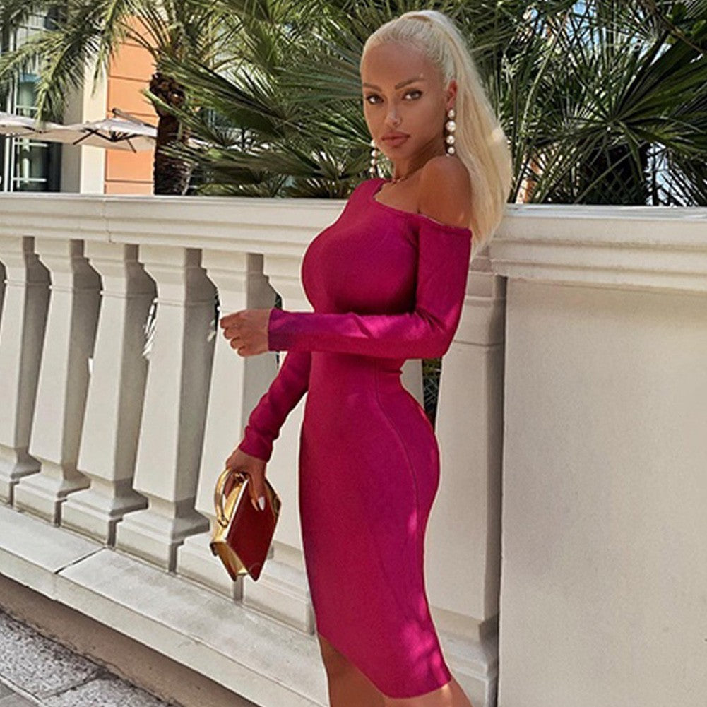 Vestido mini de vendaje asimétrico con un solo hombro y manga larga PP19214