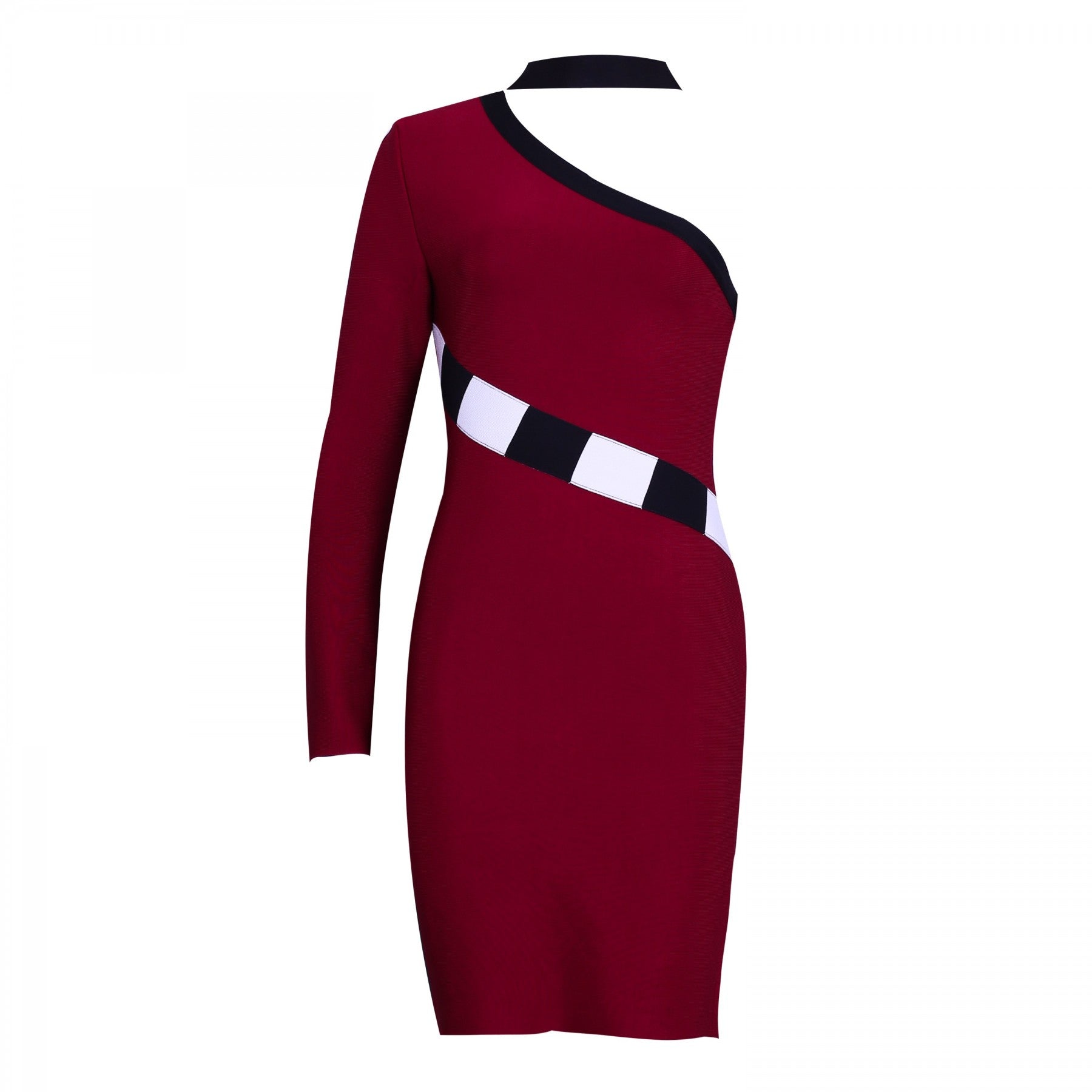 Vestido midi de vendaje con un hombro, manga larga y aberturas HI906