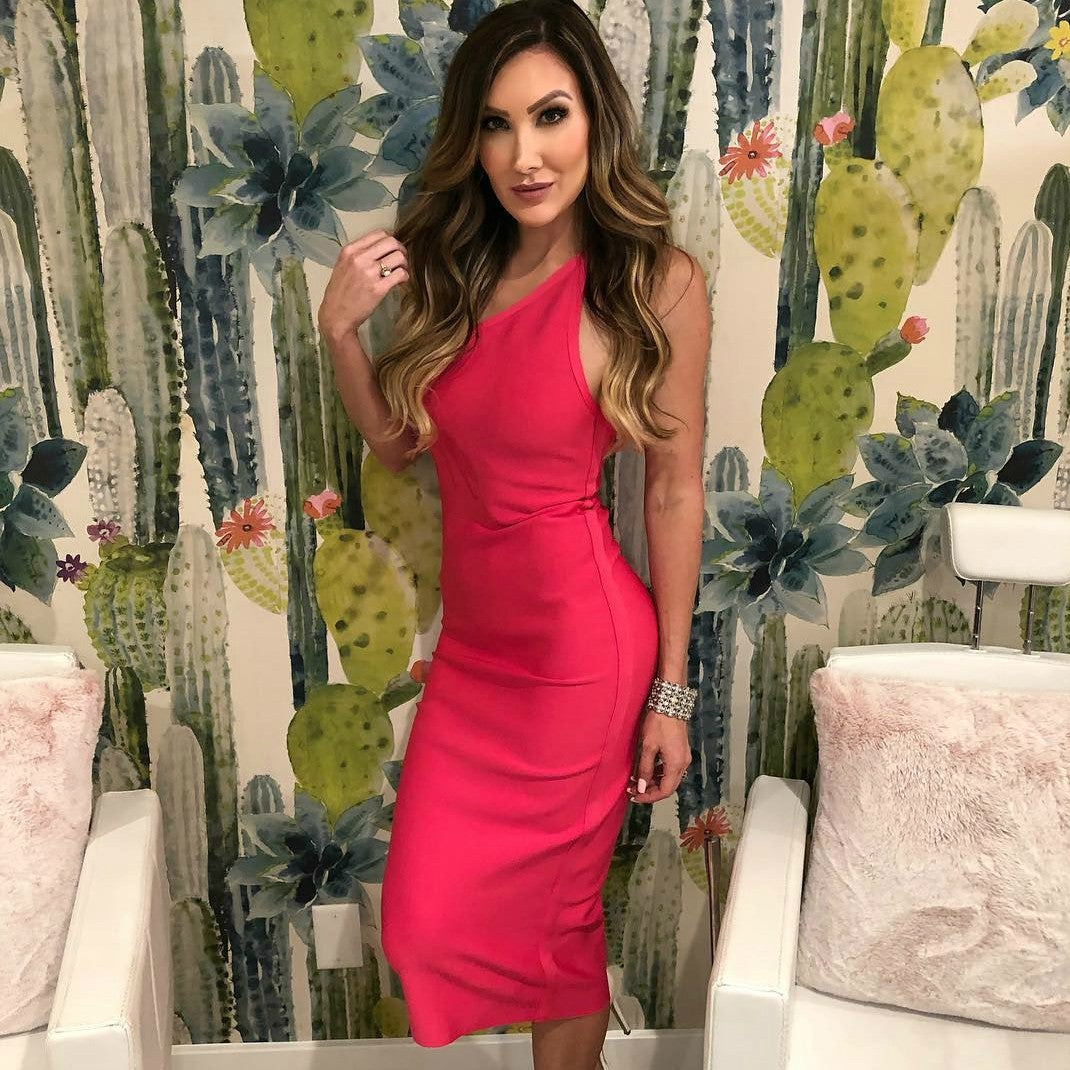 Vestido asimétrico de un solo hombro, sin mangas y con vendaje por encima de la rodilla HK054