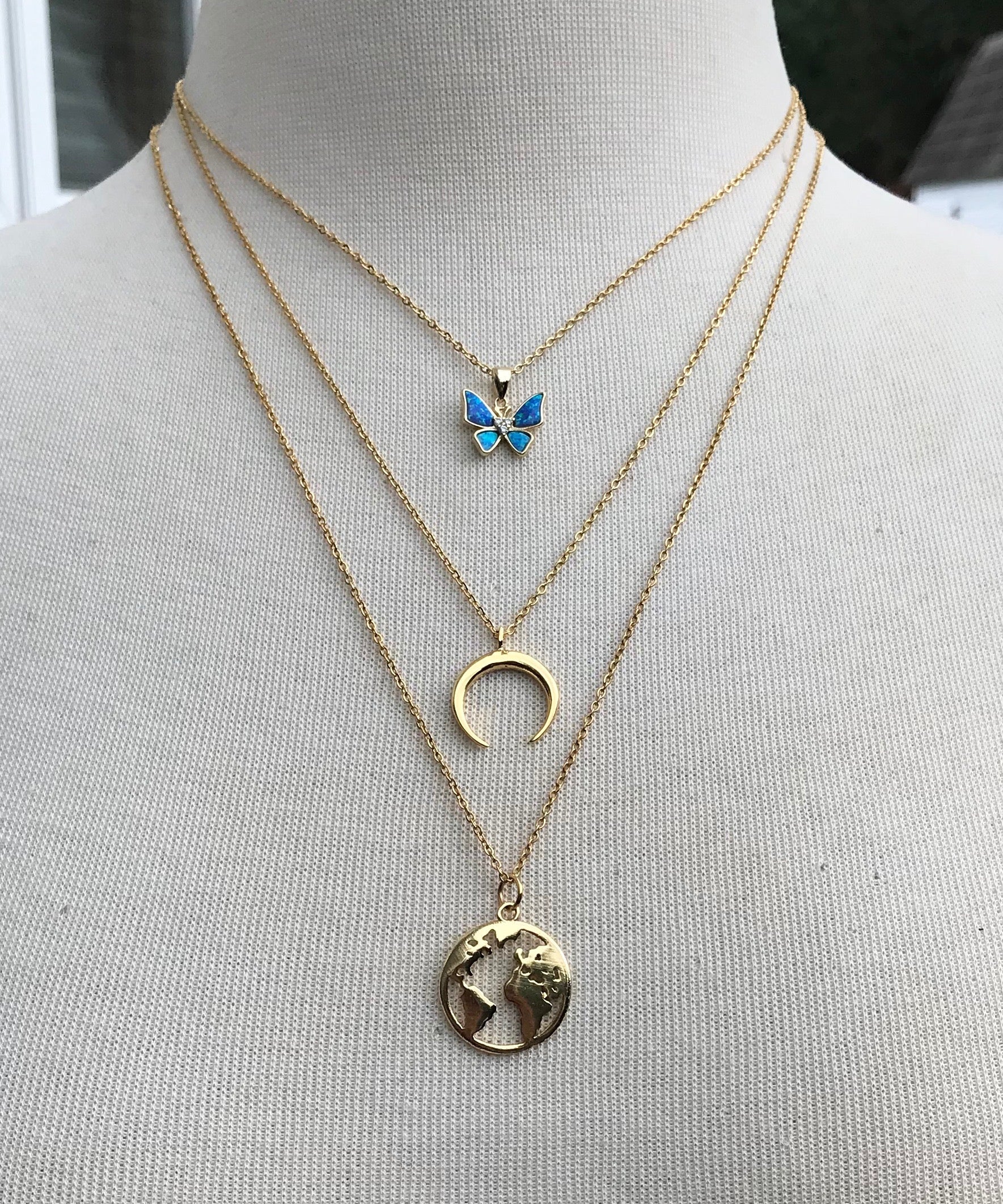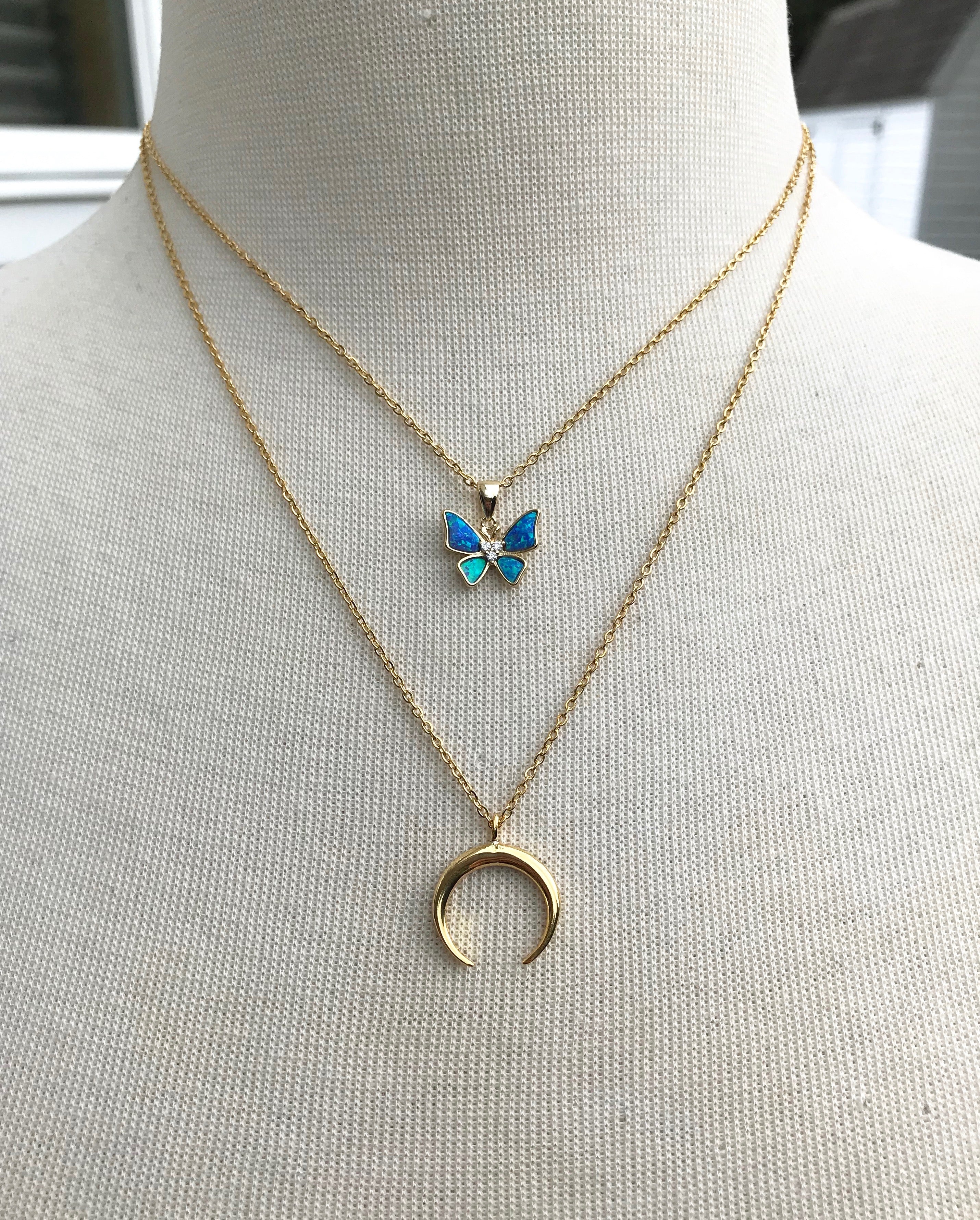 Gargantilla de cadena bañada en oro de 24 quilates con mariposa de ópalo y plata de ley.