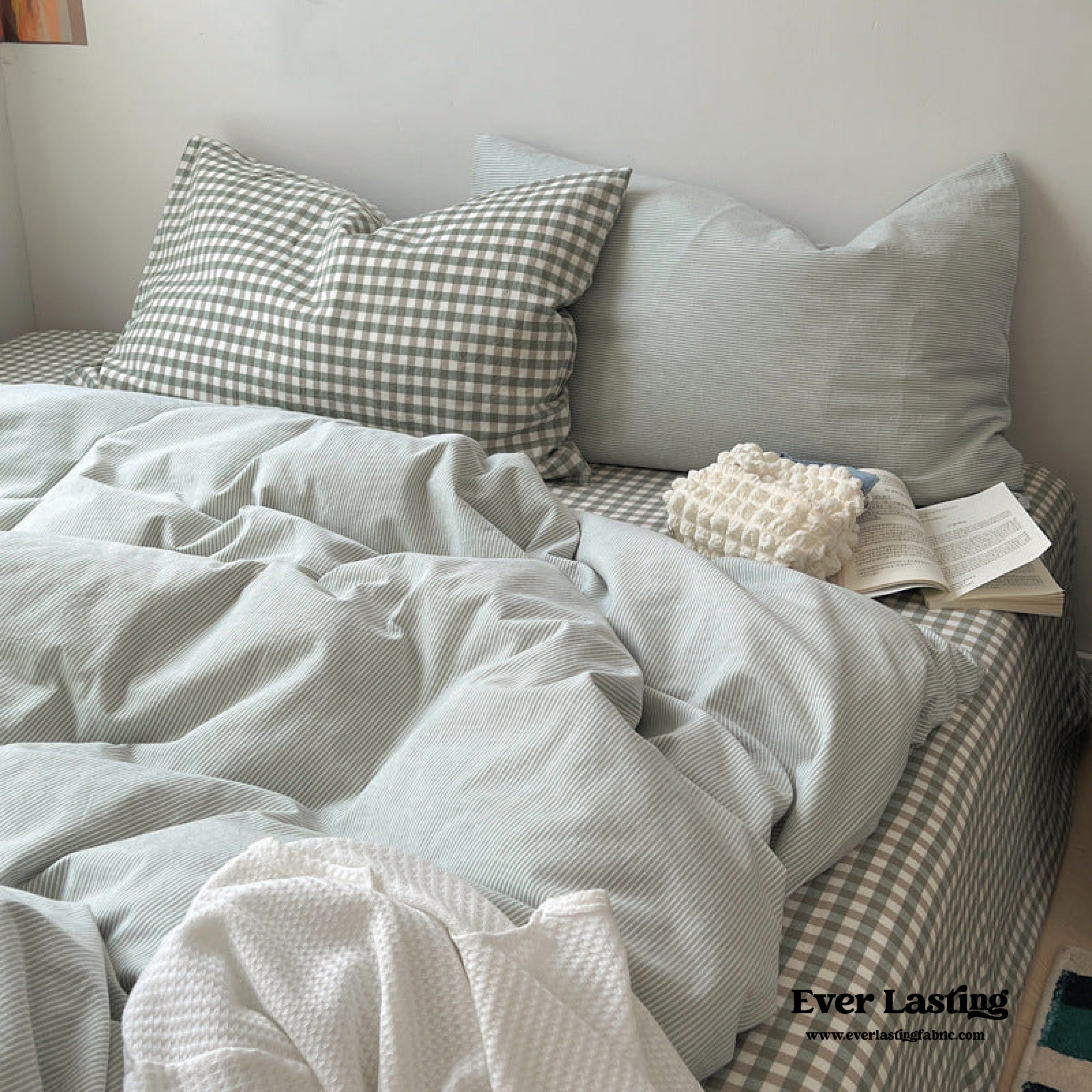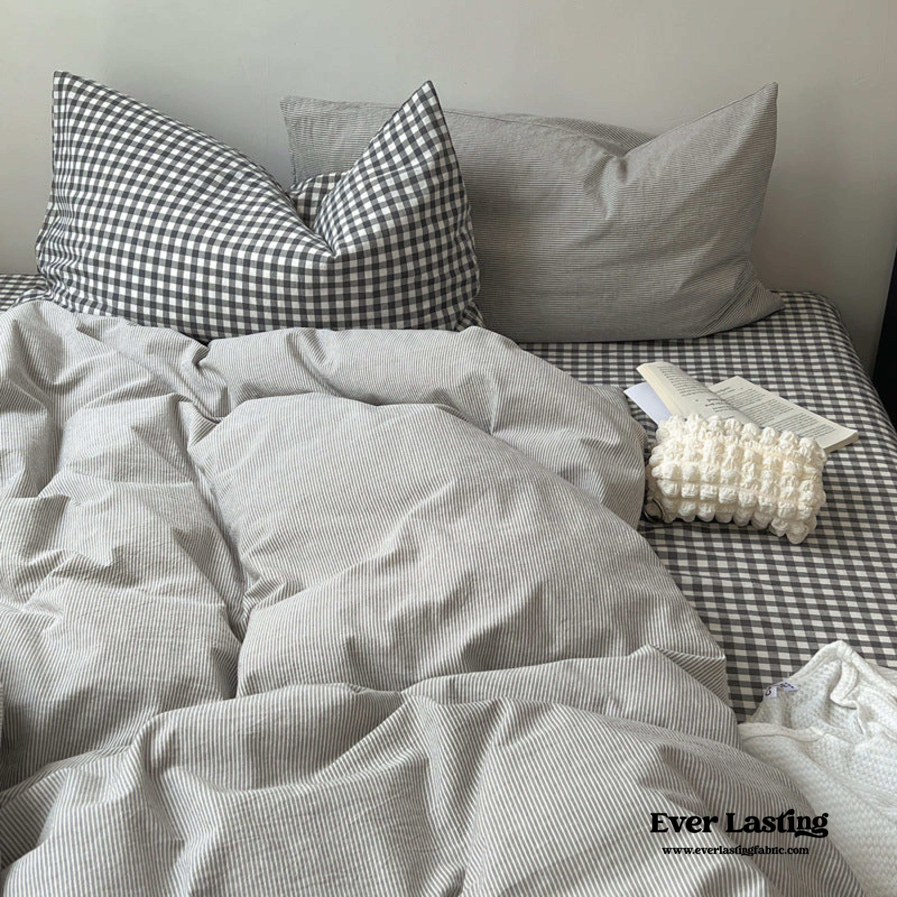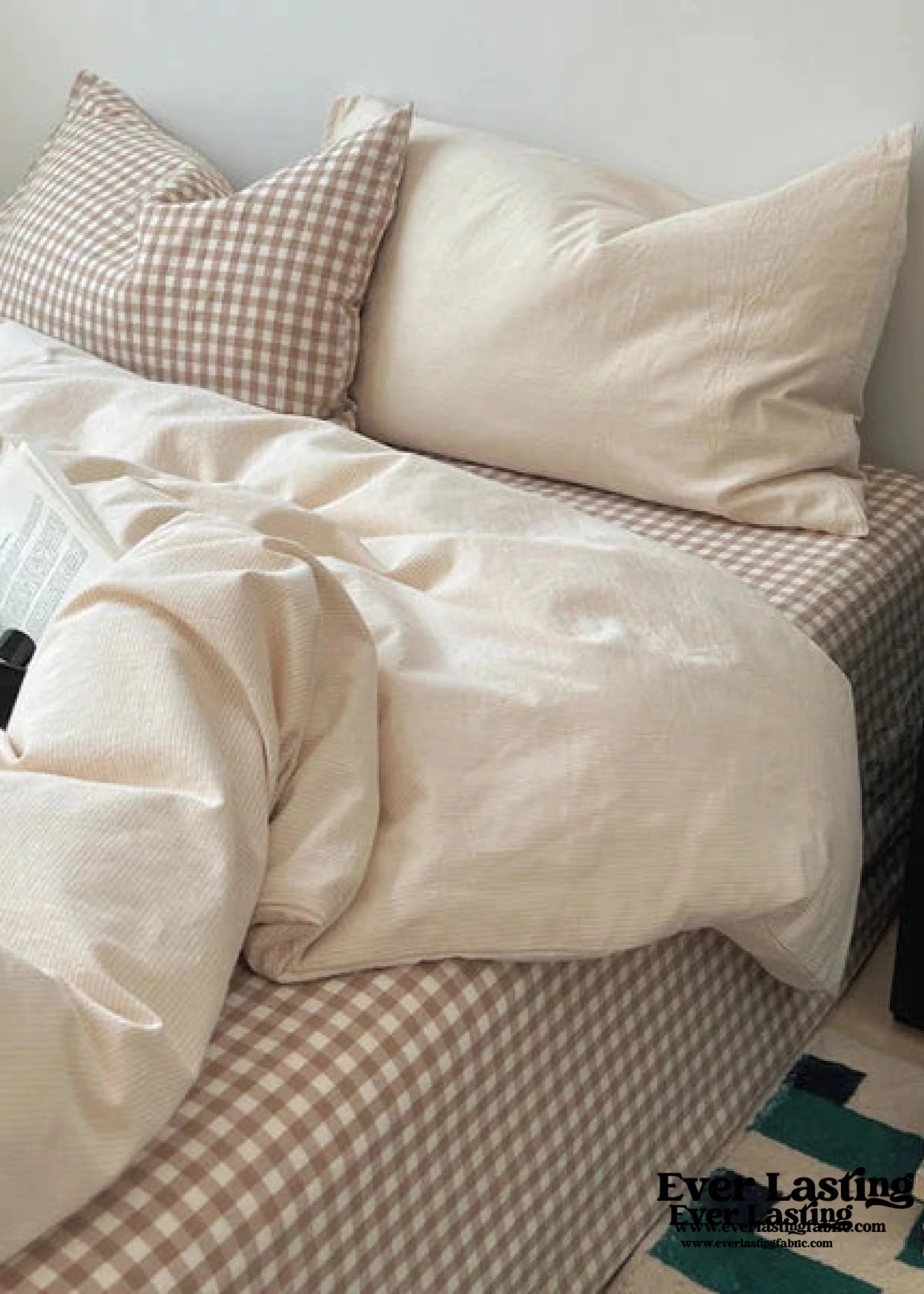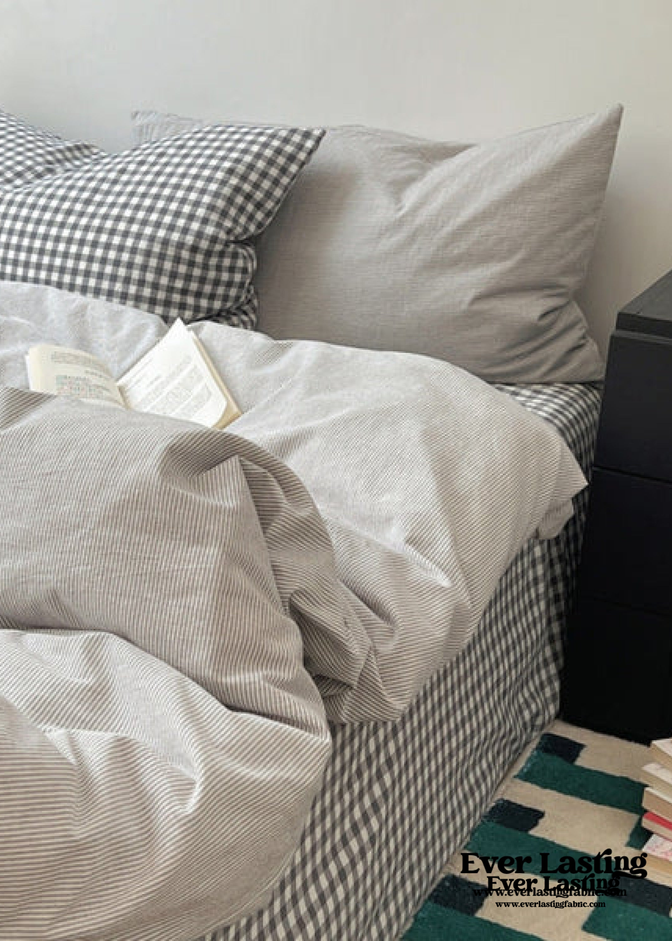 Introducing our Peekaboo Gingham Bedding Set. a fusion of modern style and cozy comfort. This set boasts a captivating grid pattern sheets and minimal stripe duvet that add a contemporary touch to your bedroom decor. Crafted from premium cotton. it offers a soft and inviting feel that guarantees restful sleep. With its versatile design. the Peekaboo Gingham Bedding Set includes everything you need for a complete bedding ensemble. from a stylish duvet cover to coordinating pillowcases. Elevate your sleep sanctuary with this sleek and sophisticated set. and embrace the perfect balance of style and relaxation.