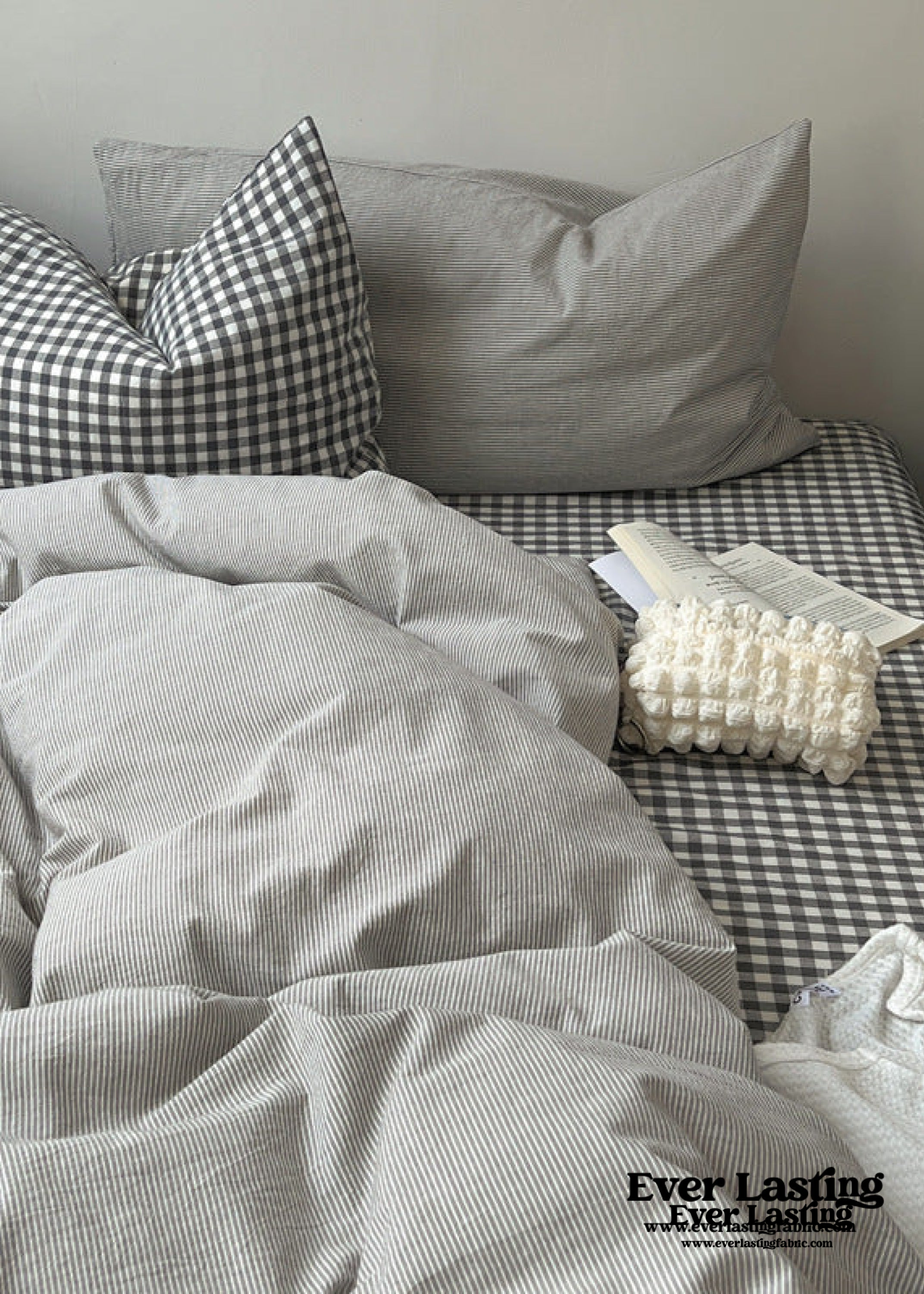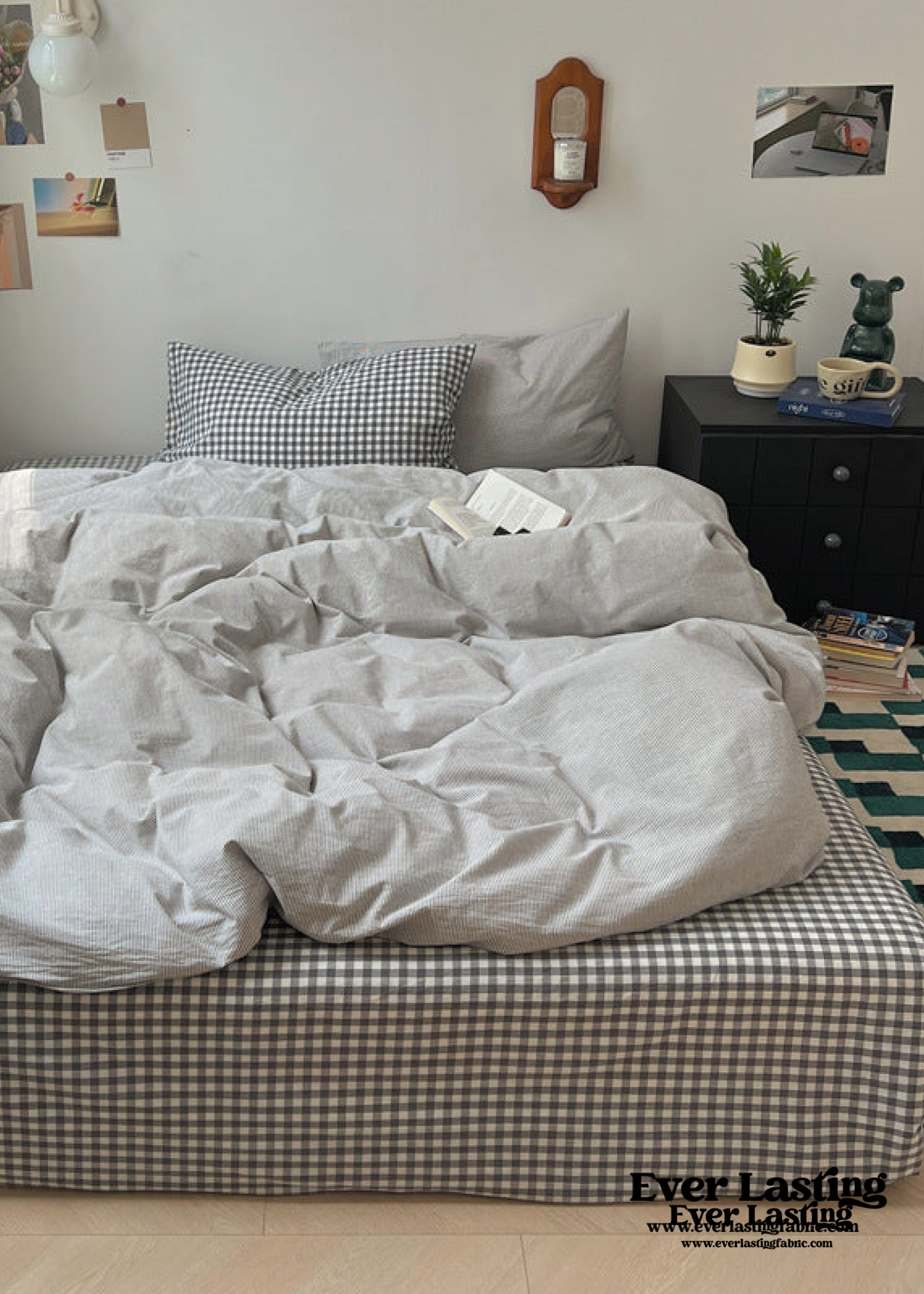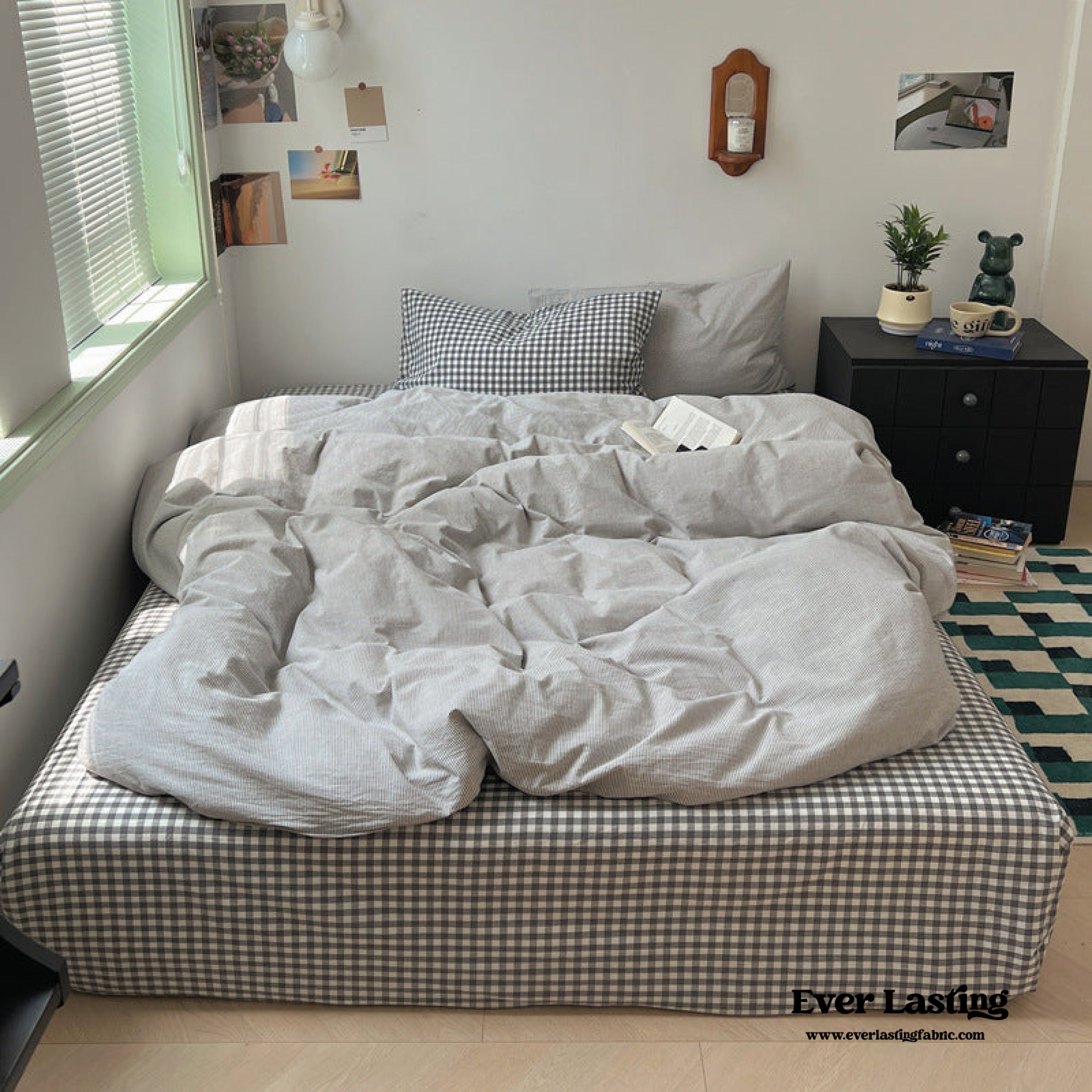 Introducing our Peekaboo Gingham Bedding Set. a fusion of modern style and cozy comfort. This set boasts a captivating grid pattern sheets and minimal stripe duvet that add a contemporary touch to your bedroom decor. Crafted from premium cotton. it offers a soft and inviting feel that guarantees restful sleep. With its versatile design. the Peekaboo Gingham Bedding Set includes everything you need for a complete bedding ensemble. from a stylish duvet cover to coordinating pillowcases. Elevate your sleep sanctuary with this sleek and sophisticated set. and embrace the perfect balance of style and relaxation.
