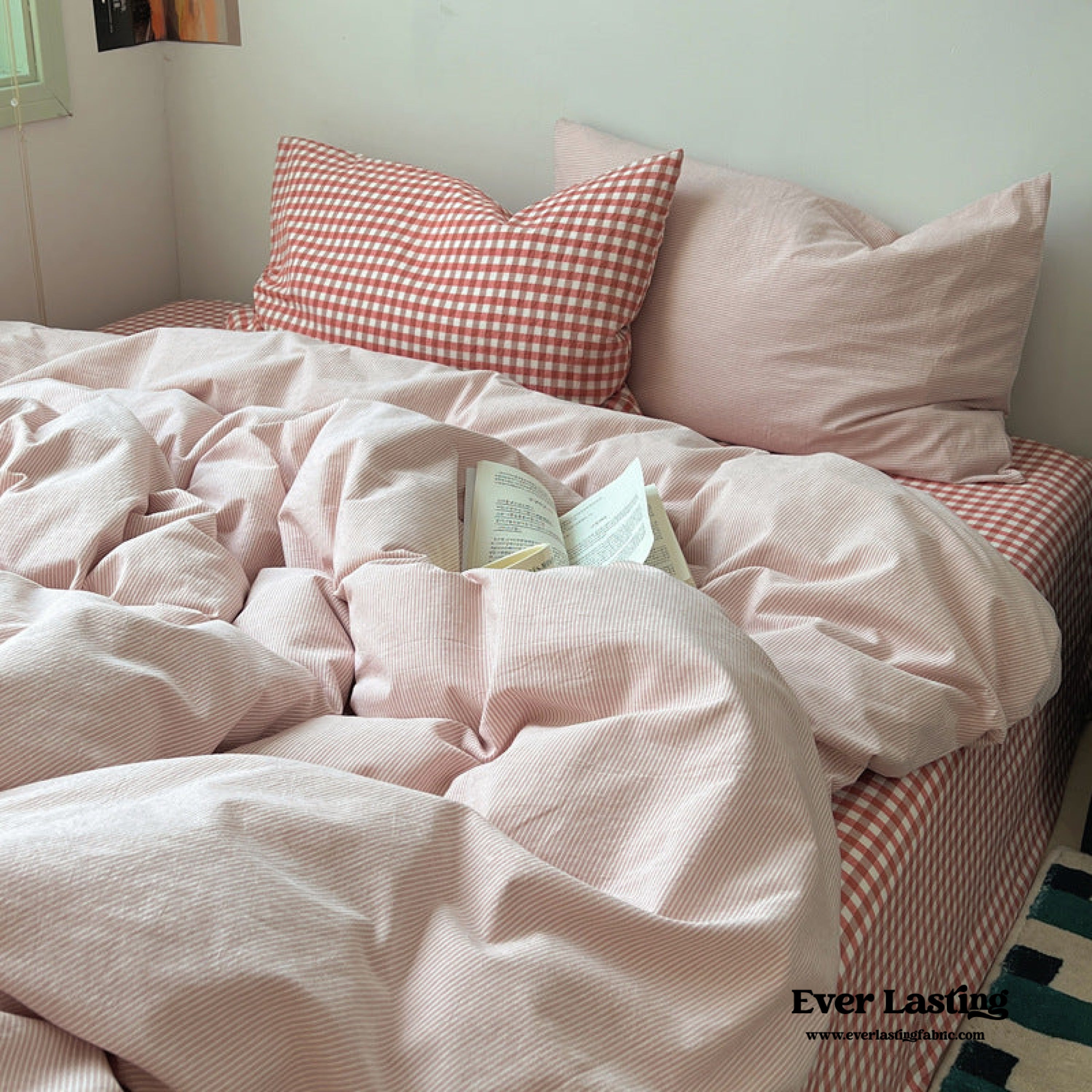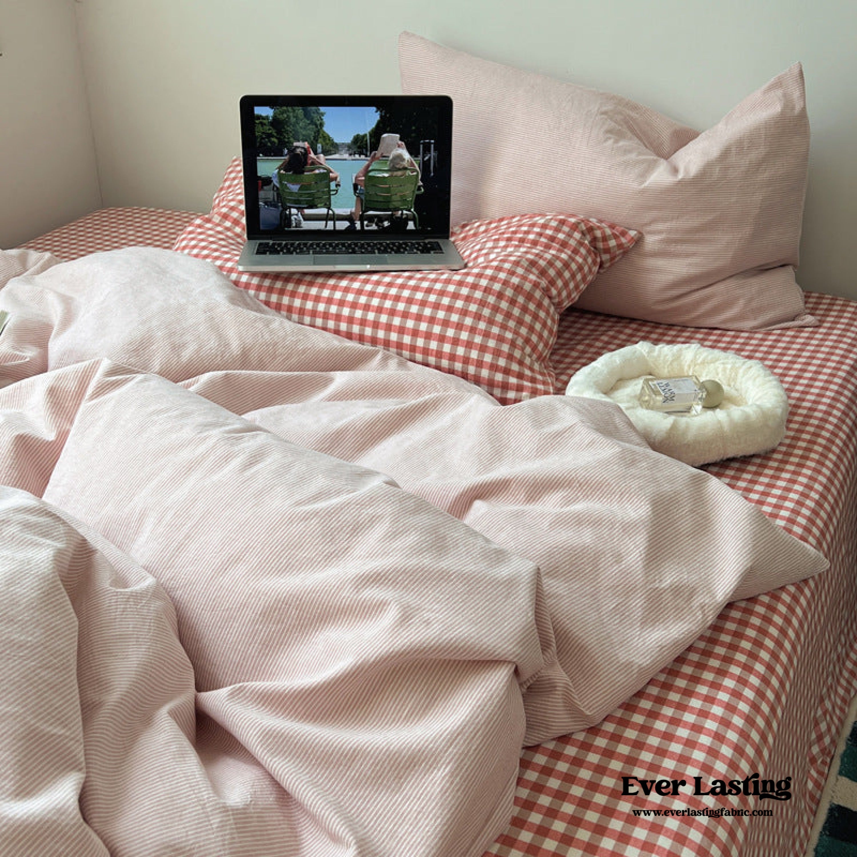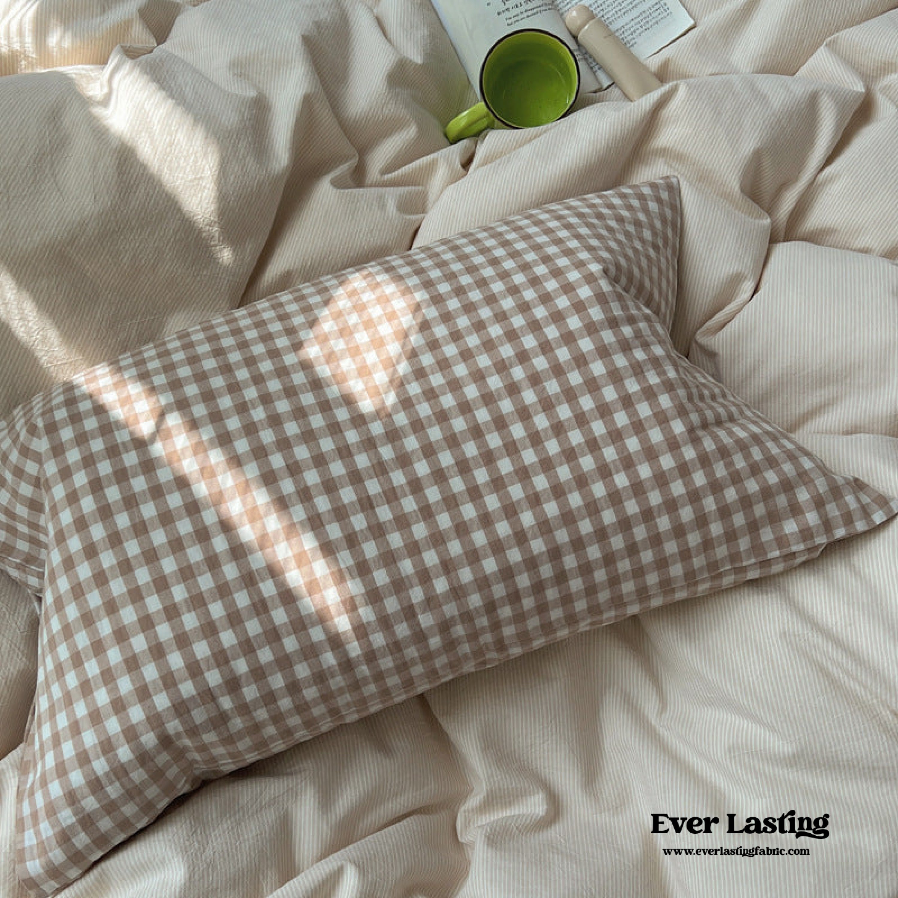 Introducing our Peekaboo Gingham Bedding Set. a fusion of modern style and cozy comfort. This set boasts a captivating grid pattern sheets and minimal stripe duvet that add a contemporary touch to your bedroom decor. Crafted from premium cotton. it offers a soft and inviting feel that guarantees restful sleep. With its versatile design. the Peekaboo Gingham Bedding Set includes everything you need for a complete bedding ensemble. from a stylish duvet cover to coordinating pillowcases. Elevate your sleep sanctuary with this sleek and sophisticated set. and embrace the perfect balance of style and relaxation.