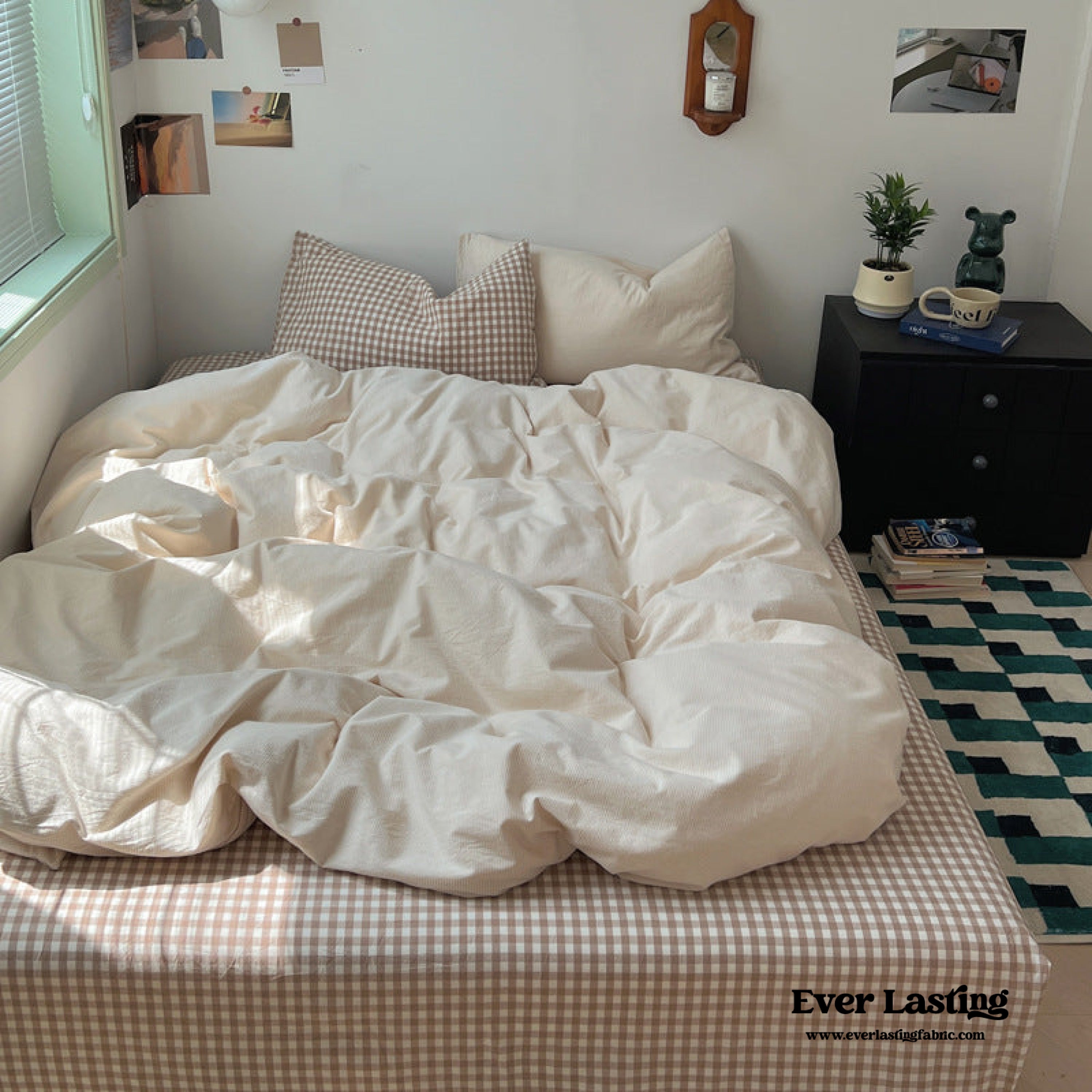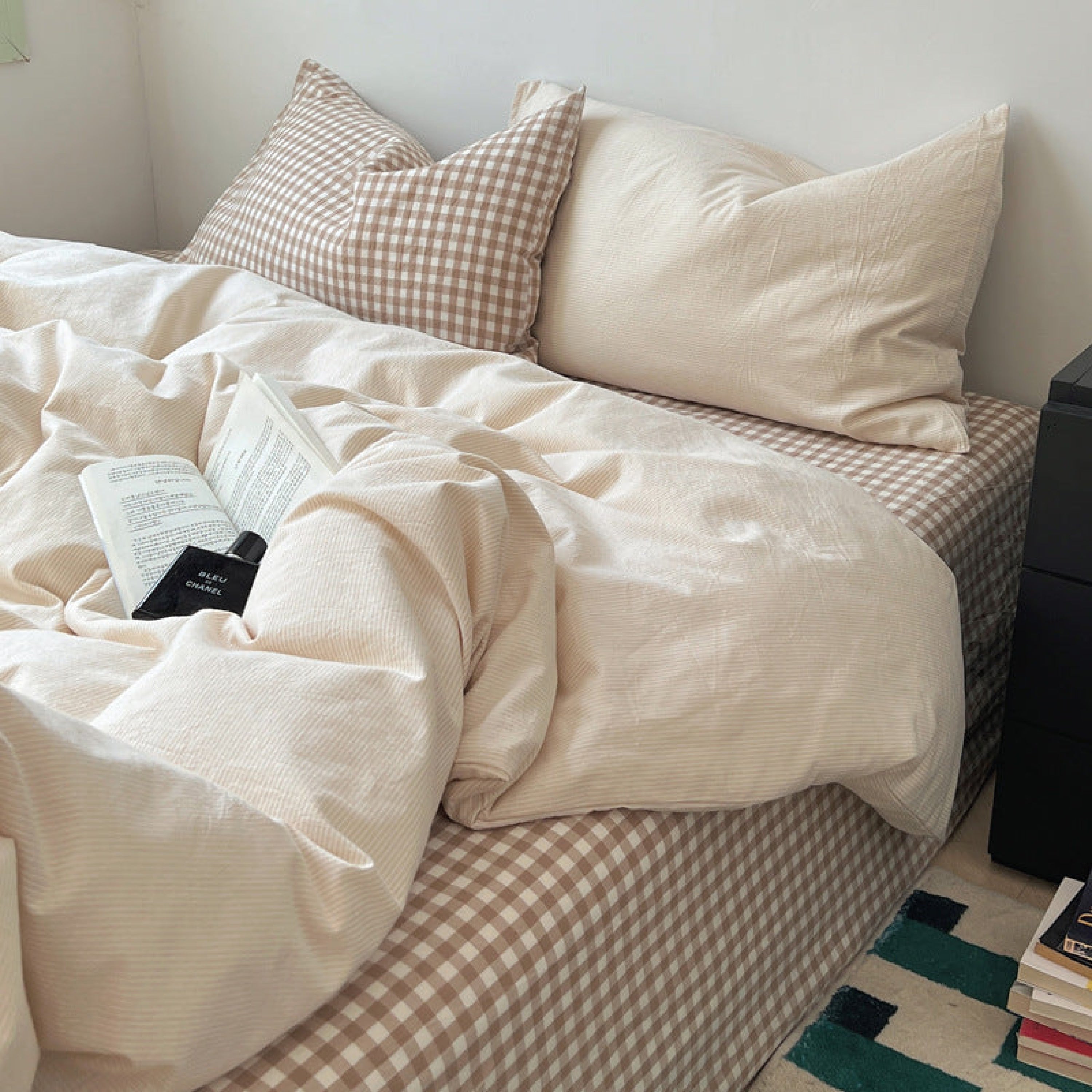 Introducing our Peekaboo Gingham Bedding Set. a fusion of modern style and cozy comfort. This set boasts a captivating grid pattern sheets and minimal stripe duvet that add a contemporary touch to your bedroom decor. Crafted from premium cotton. it offers a soft and inviting feel that guarantees restful sleep. With its versatile design. the Peekaboo Gingham Bedding Set includes everything you need for a complete bedding ensemble. from a stylish duvet cover to coordinating pillowcases. Elevate your sleep sanctuary with this sleek and sophisticated set. and embrace the perfect balance of style and relaxation.