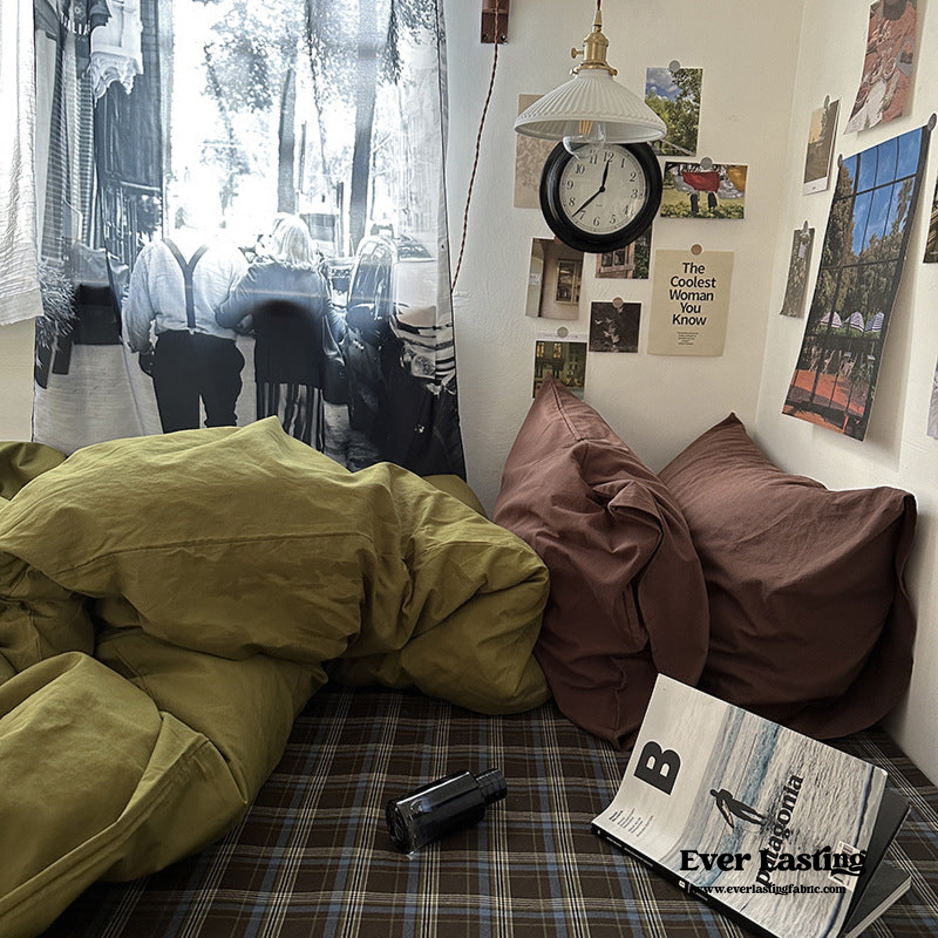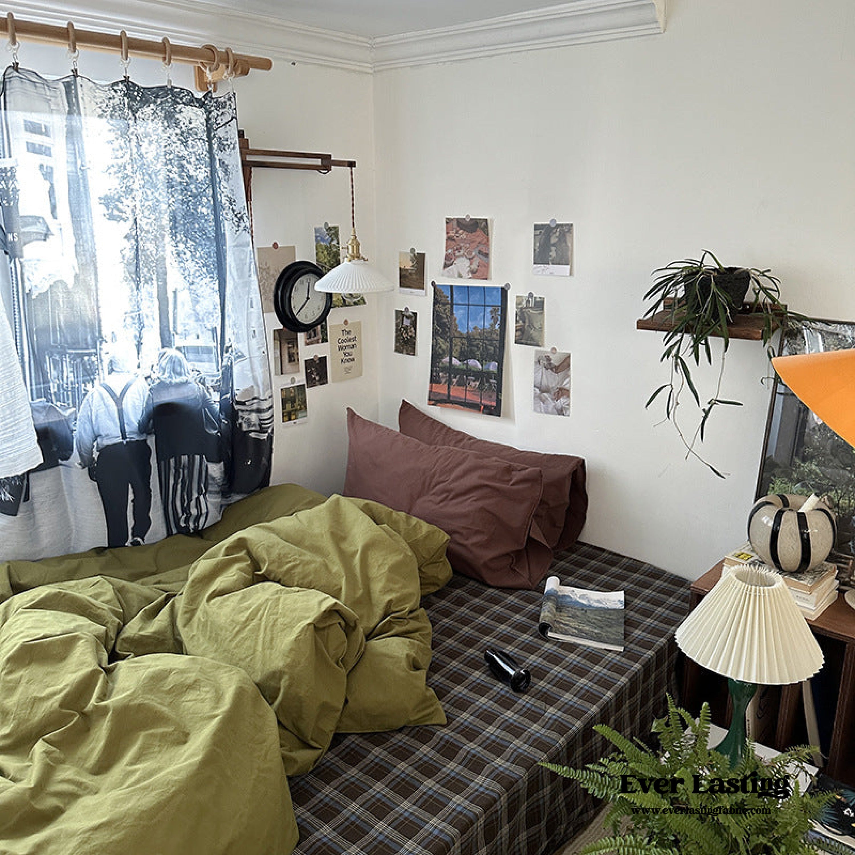 Plaid Goblincore Bedding Set. where whimsy meets coziness in a delightful fusion of style and comfort. Embrace the enchanting world of goblincore with this charming bedding ensemble featuring a playful plaid pattern. Crafted from premium materials. this set promises a soft and inviting feel. perfect for transforming your bedroom into a cozy retreat. Each duvet cover is thoughtfully equipped with four corner ties and a hidden zipper. ensuring your duvet insert stays securely in place throughout the night. Add a touch of magic to your sleep space with our Plaid Goblincore Bedding Set and immerse yourself in the whimsical charm of goblincore aesthetics.
