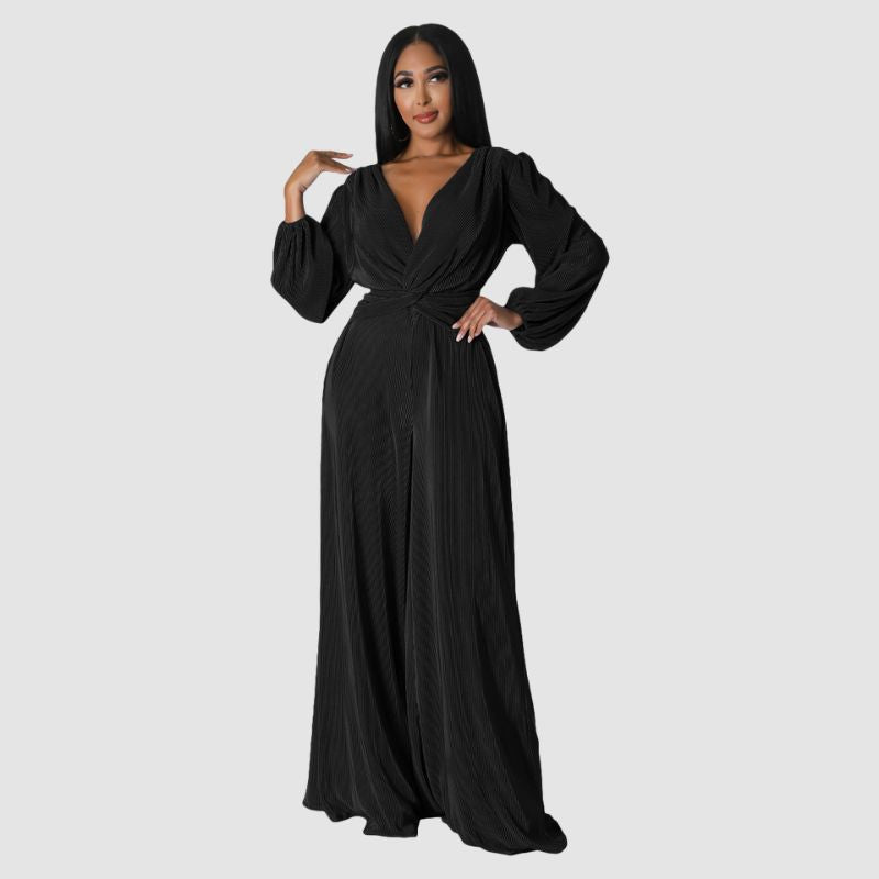 Características: Mono. Pantalones. Pantalones plisados. Cuello en V. Entrecruzado. Ajuste relajado. Cintura con cordón. Cintura alta. Color sólido. Mangas largas. De gran tamaño.