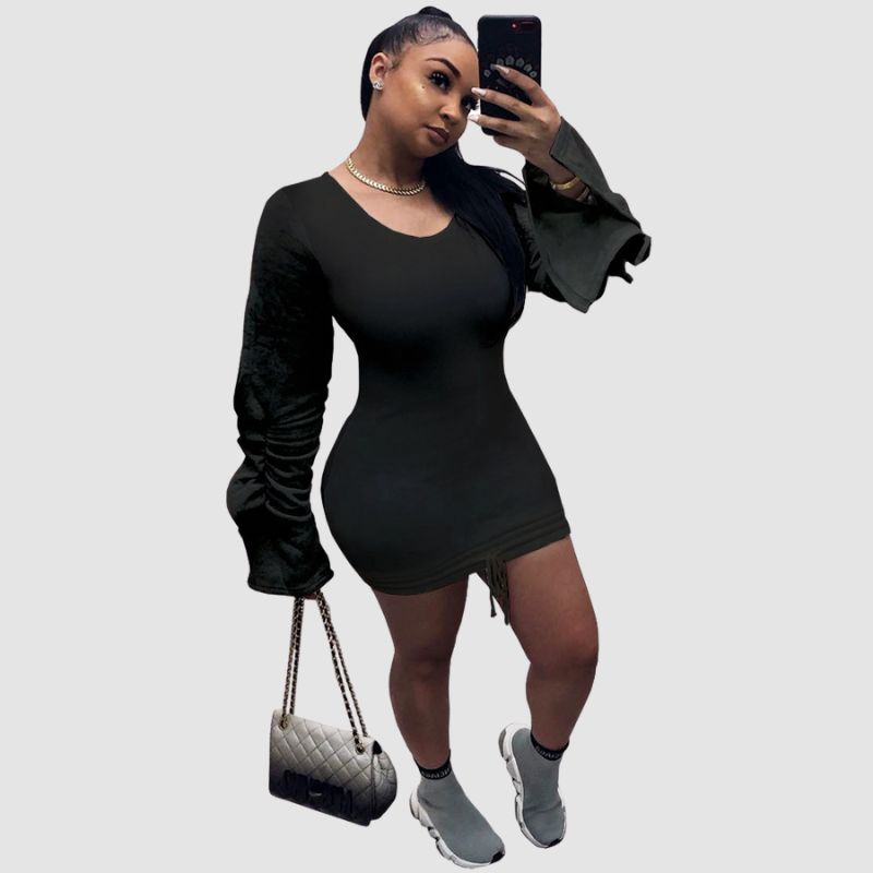 Vestido con mangas plisadas y cordón ajustable en contraste de color