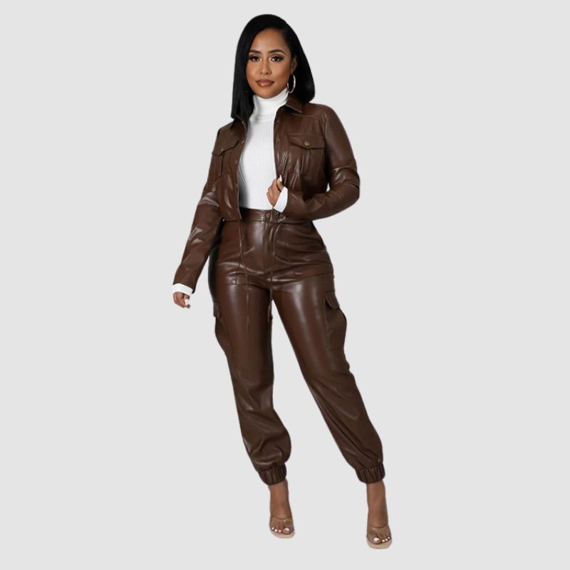 Características: Conjunto. Pantalón cargo. Abrigo. Solapa. Manga larga. Pantalón largo. Cremallera frontal. Cintura alta. Color liso.