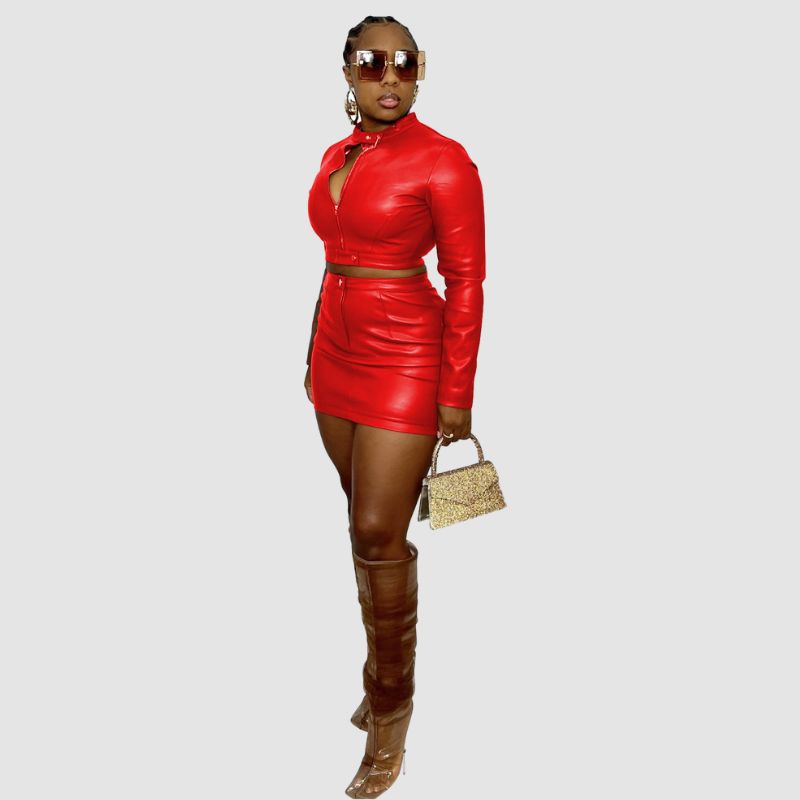 Conjunto de falda con cremallera de cuero PU