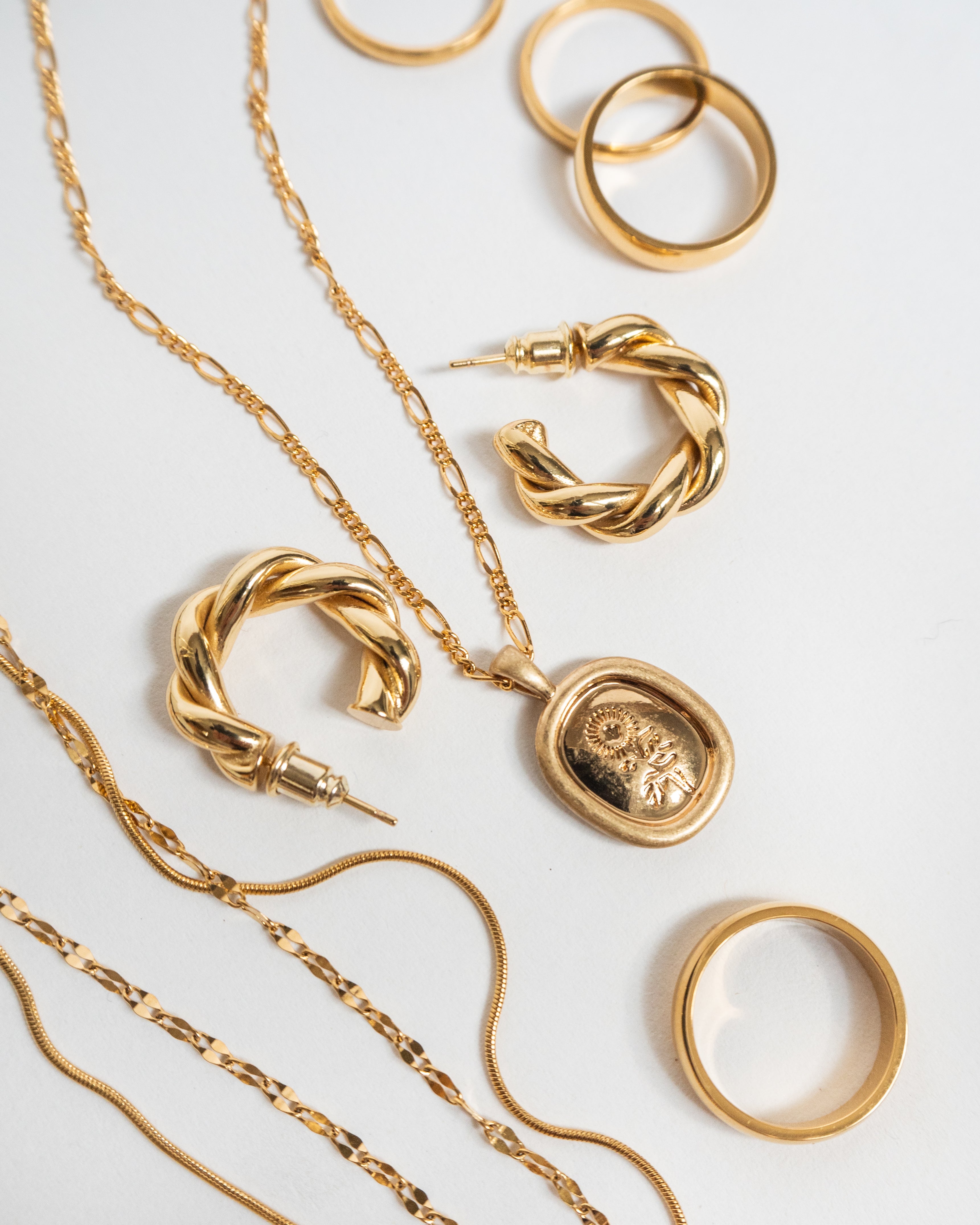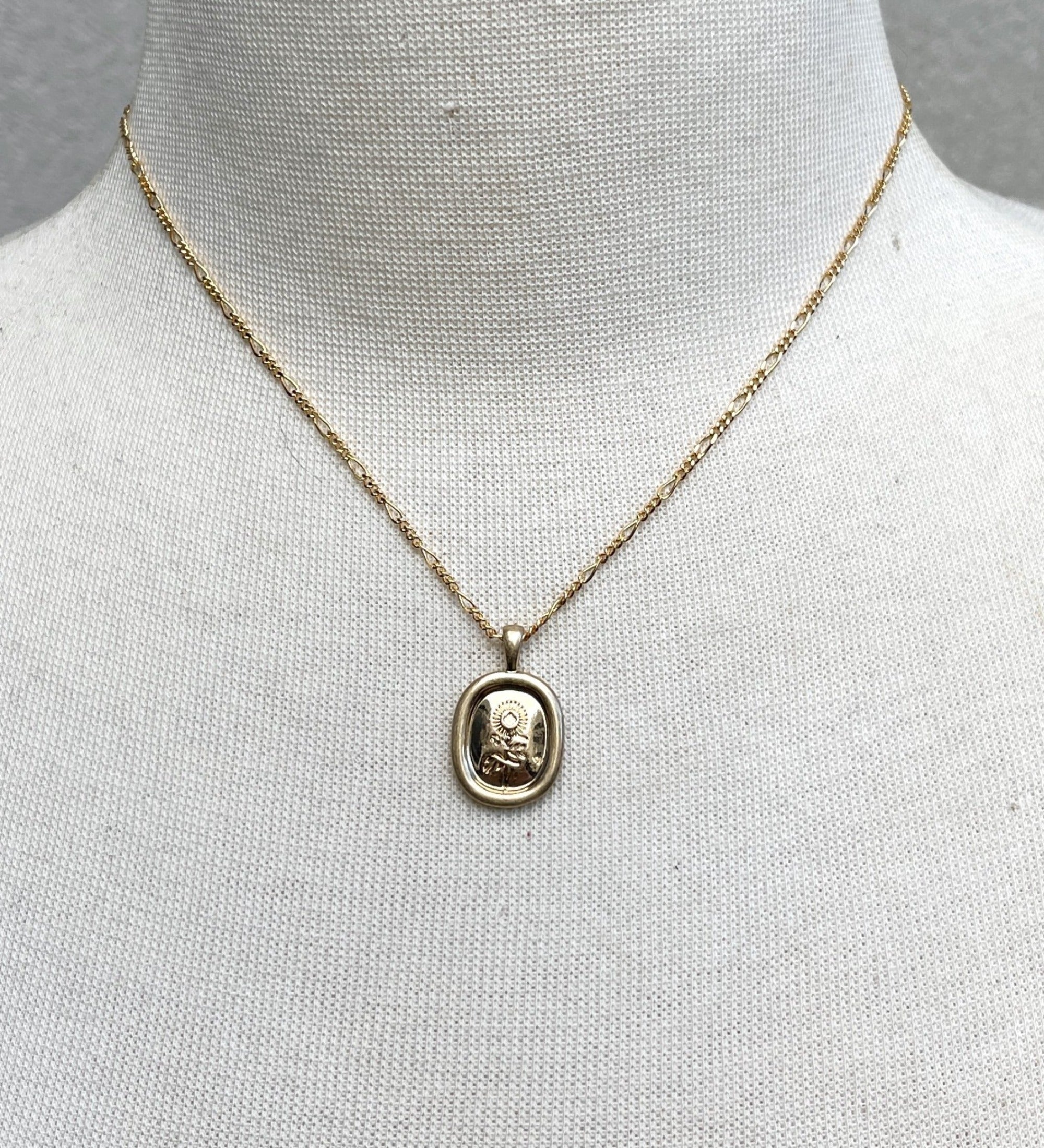 Colgante de flor vintage bañado en oro Collar de cadena Figaro