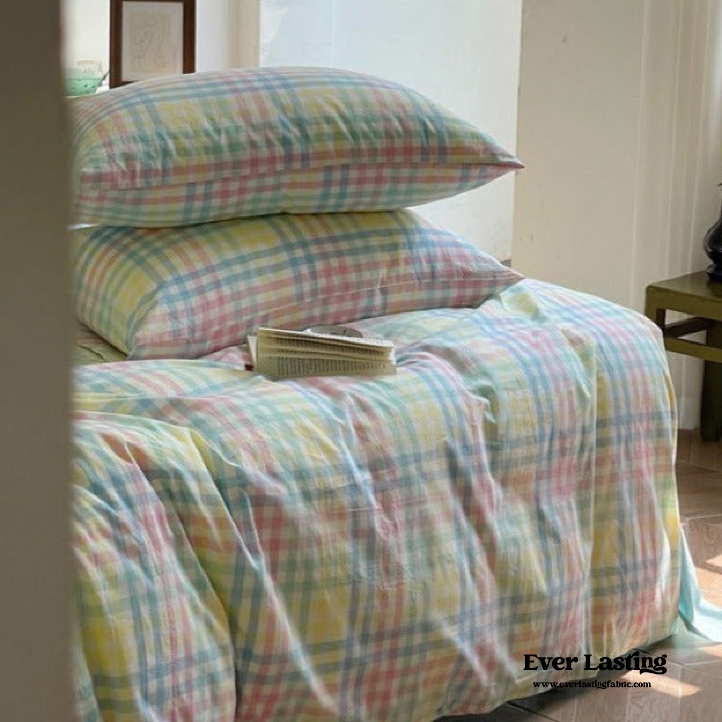 Indulge in our Rainbow Gingham Bedding Set. a perfect blend of comfort and style. Therainbow color palette brings a sense of tranquility and warmth to your bedroom. The timeless stripe design adds a touch of sophistication and elegance to your bedding ensemble. Crafted from high-quality materials. this bedding set ensures a soft and cozy feel. providing you with a restful night's sleep. Experience the ultimate comfort and style with our Rainbow Gingham Bedding Set. transforming your bedroom into a haven of relaxation and serenity.