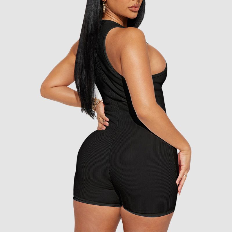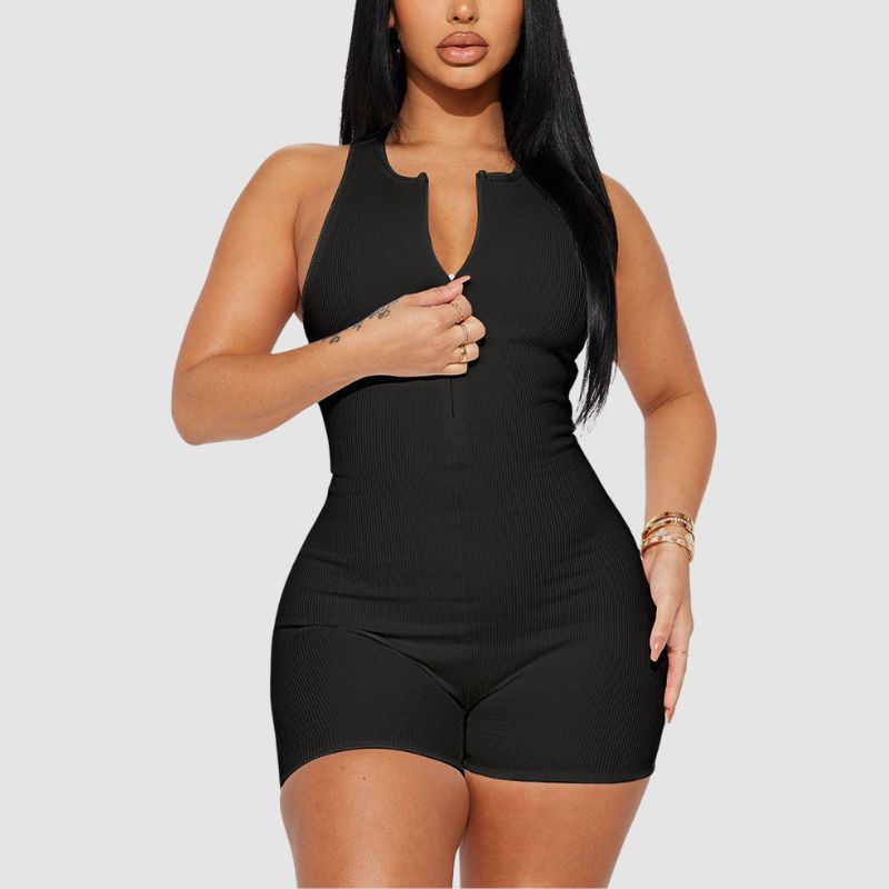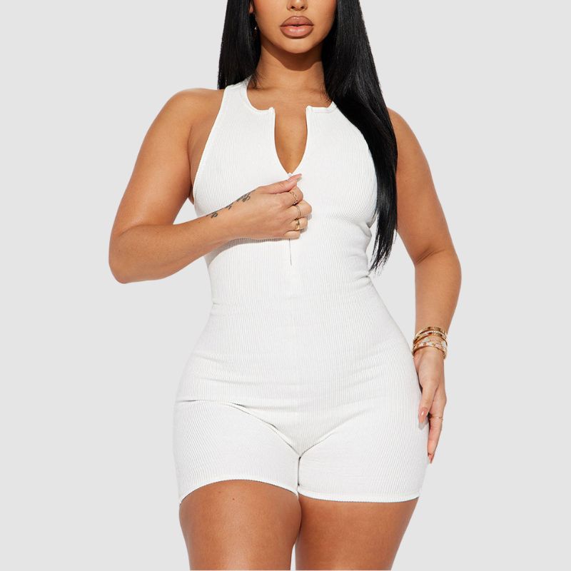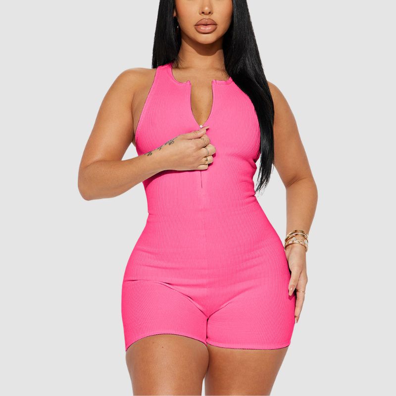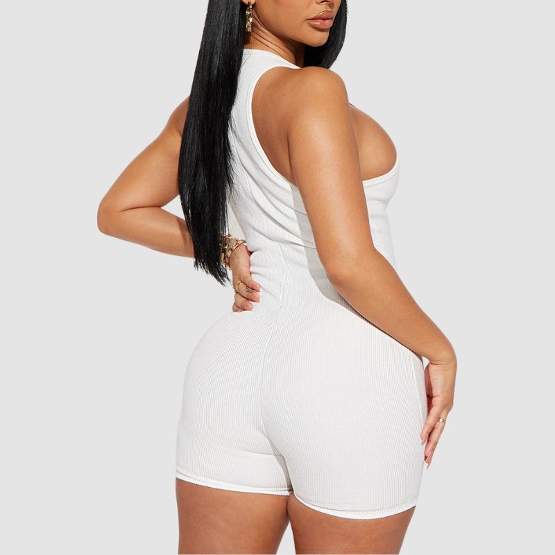 Características: Mono. Pantalón. Pantalón corto. Cintura alta. Hombros descubiertos. Cremallera. Punto acanalado. Sin mangas. Ajustado.