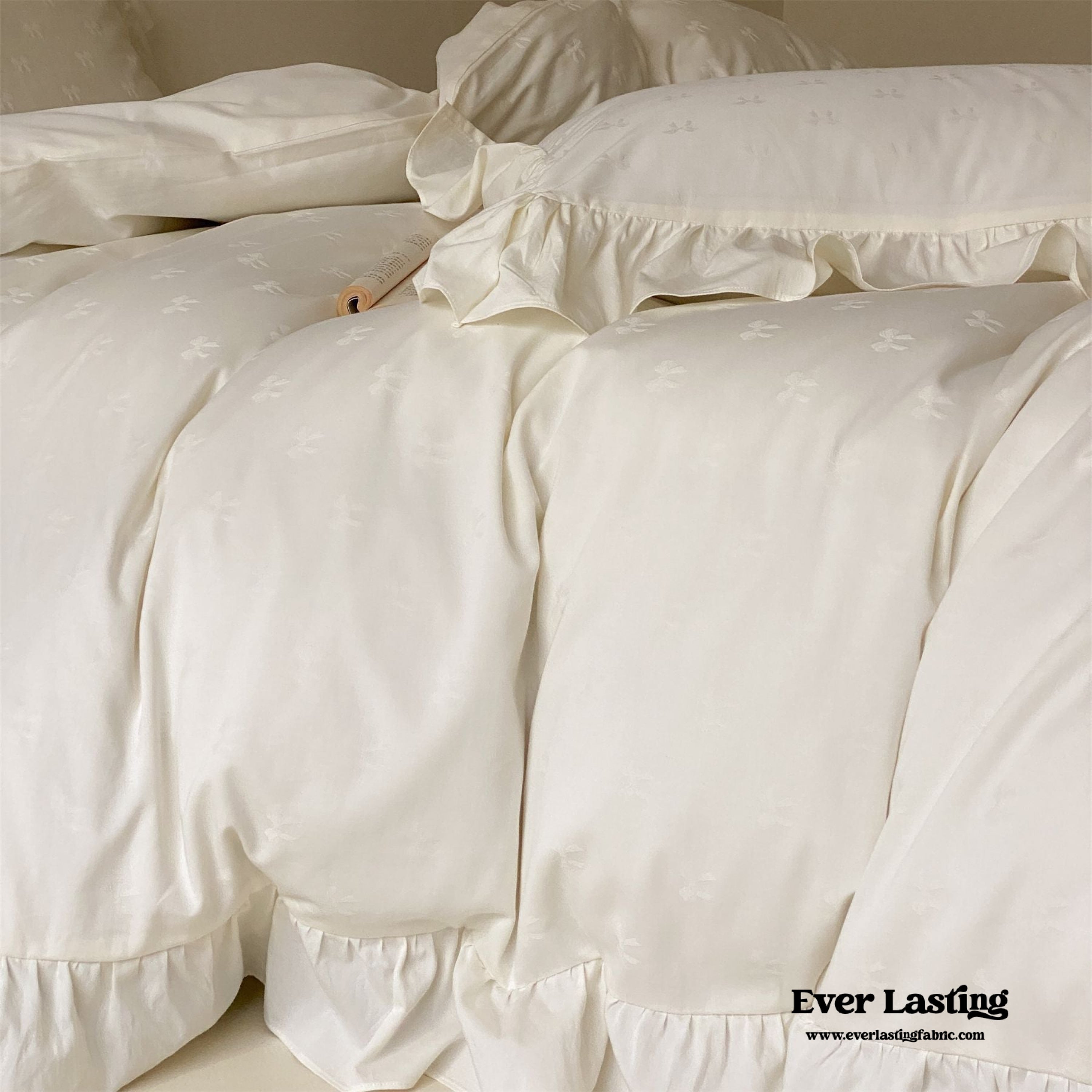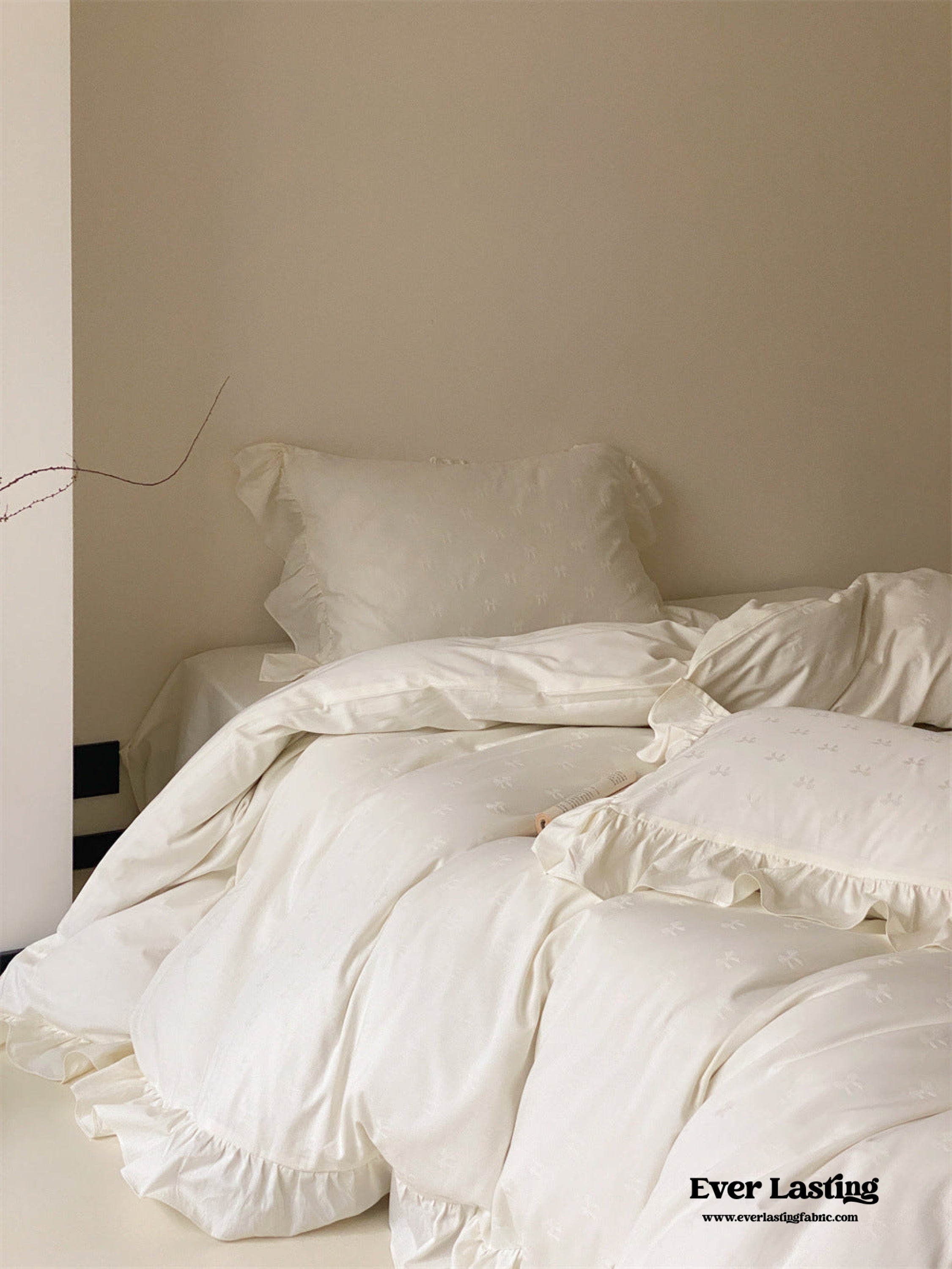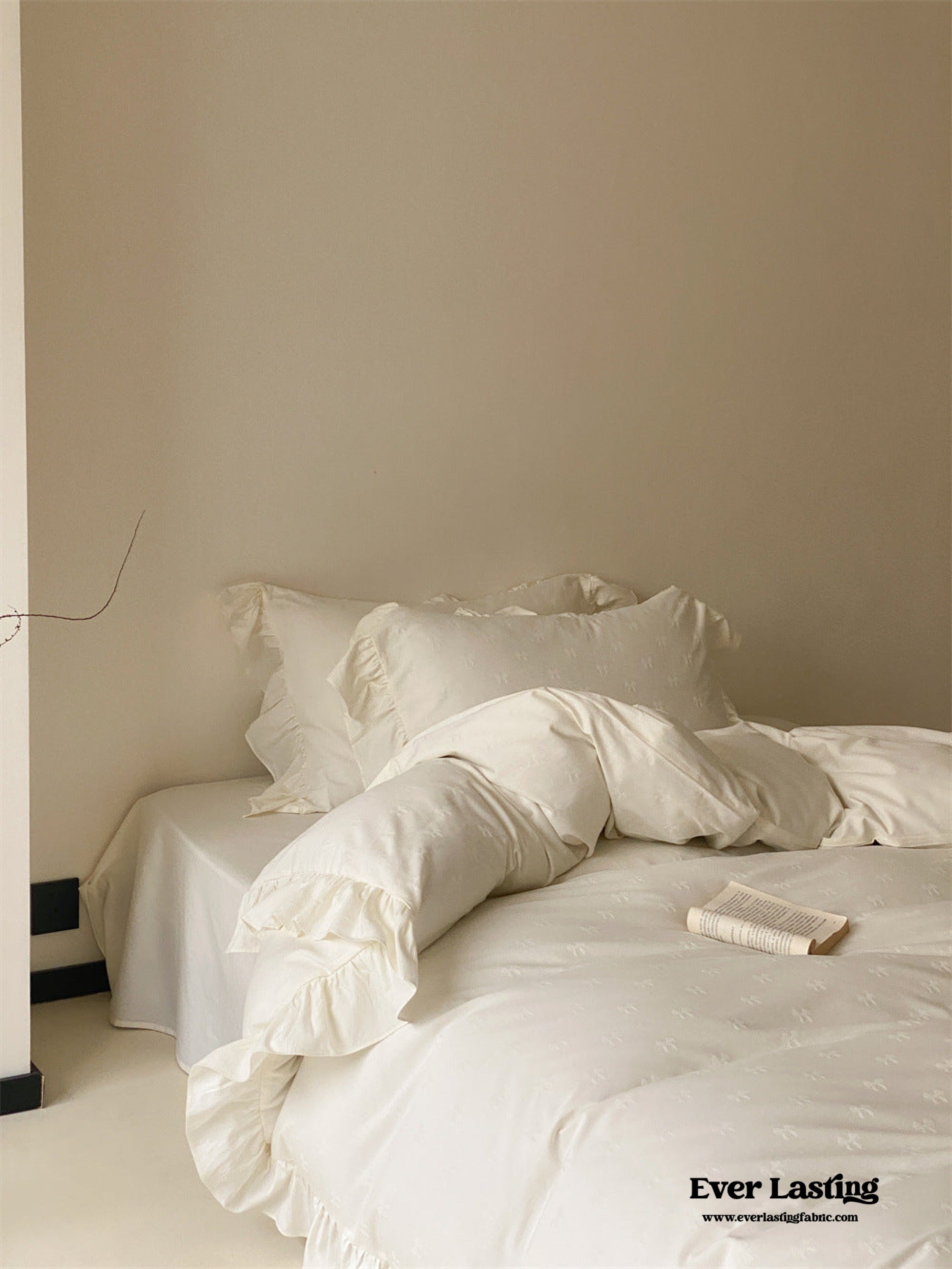 Experience the ultimate in luxury and feminine charm with Magchic's Ribbon Ruffle White Bedding Set. Crafted from the finest washed cotton. this bedding ensemble envelops you in a soft. velvety embrace. offering a delicate touch that feels like a coquette feminine dream. The perfect blend of soft whites and romantic pressed ribbon textures is enhanced with intricate ruffle details and elegant ruffle trim. creating a sophisticated yet playful look that elevates your bedroom decor. Designed with both style and practicality in mind. the duvet cover features four corner ties and a hidden zipper. ensuring your duvet stays perfectly in place throughout the night. Indulge in the beauty and comfort of our Ribbon Ruffle White Bedding Set and transform your space into a cozy. elegant haven that exudes charm and grace.