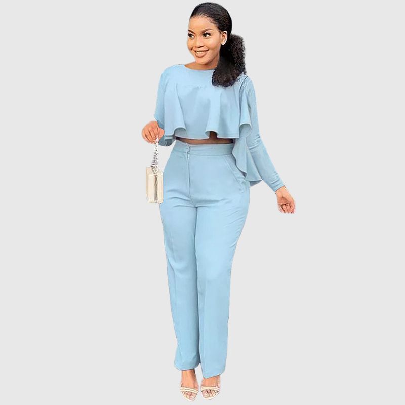 Conjunto de top con volantes y pantalón de pierna recta