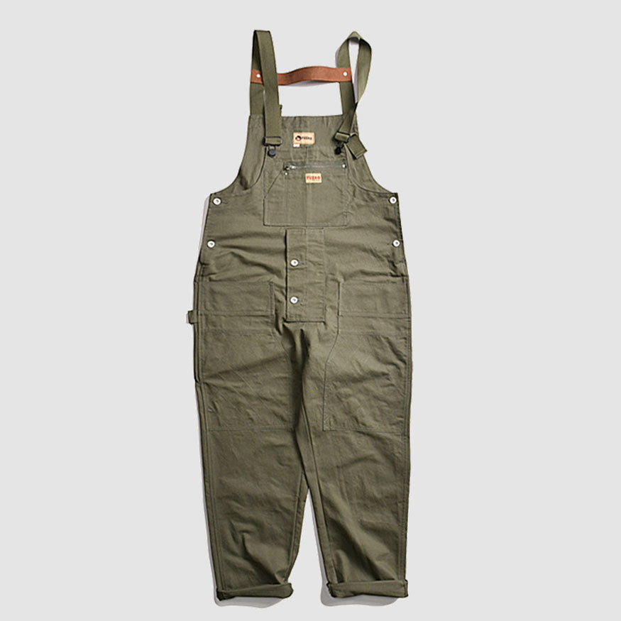 Confeccionados con un acabado cepillado y lavado, con un corte holgado y tirantes anchos, estos overoles son perfectos para cualquier salida informal. Disponibles en negro clásico, verde militar y marrón, cuentan con una exclusiva solapa frontal abotonada para un look vanguardista.