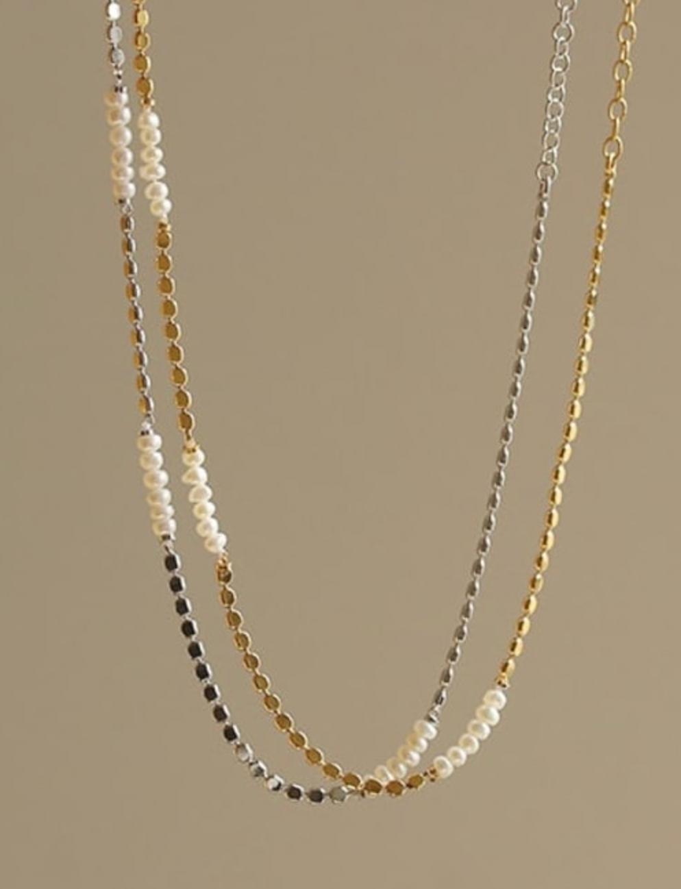 Gargantilla de cadena de disco bañada en plata y perlas de agua dulce