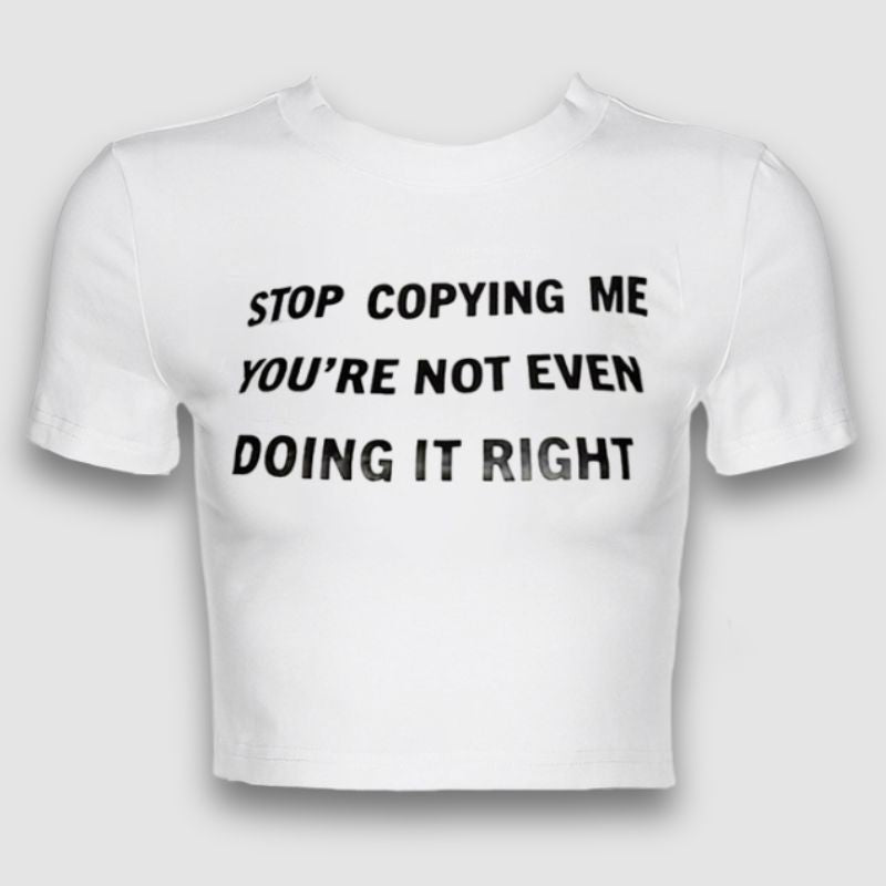 Características: Top corto. Camiseta. Cuello redondo. Mangas cortas. Contraste de color. Estampado de palabras. Ajustado. Suave y transpirable .
