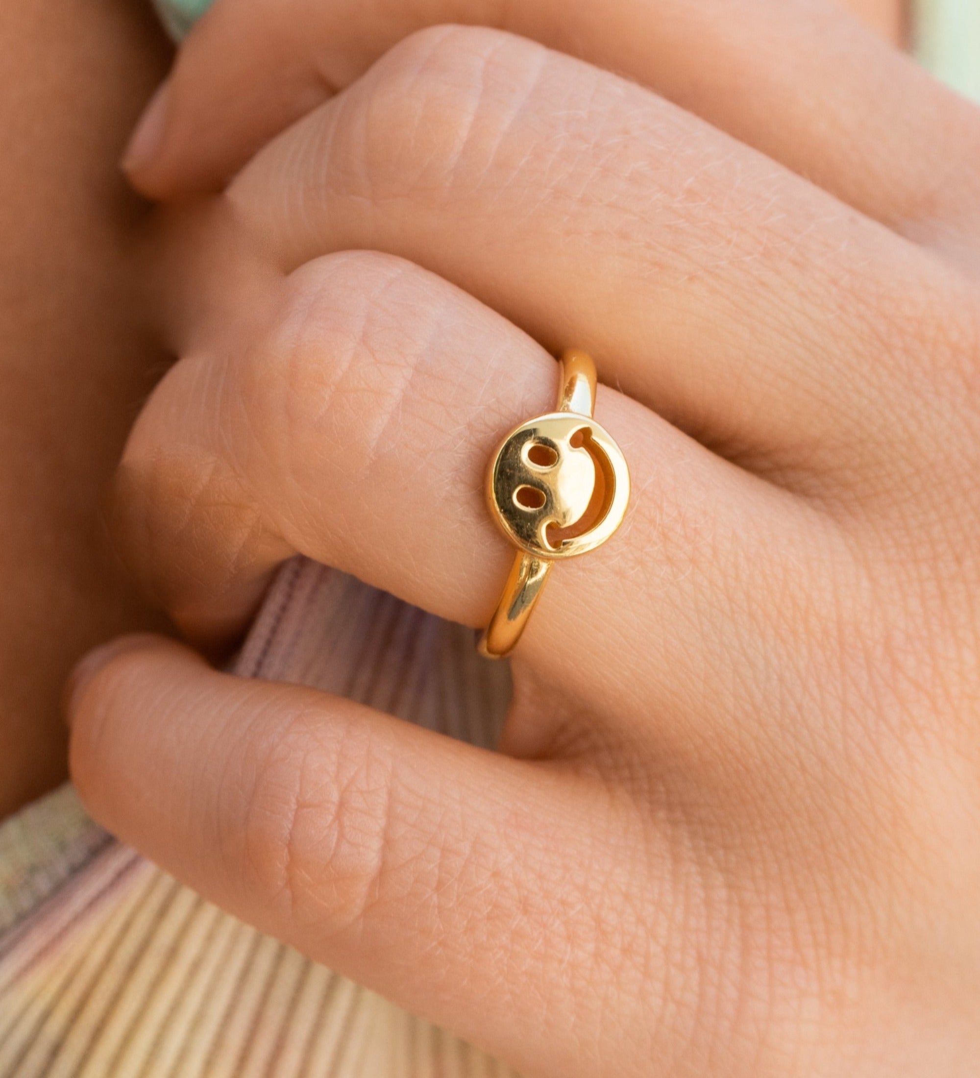Anillo de sonrisa de plata de ley bañado en oro