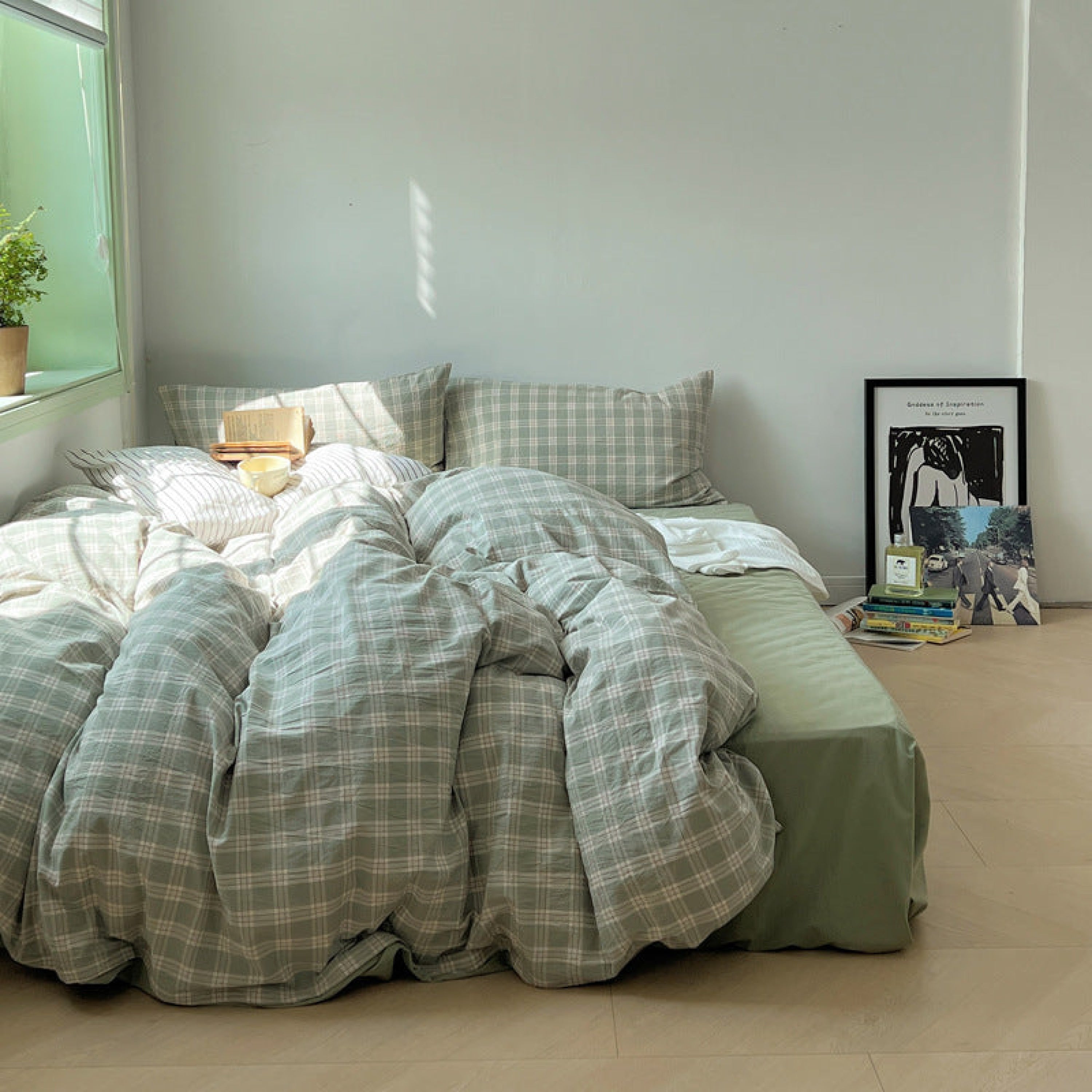 Experience the perfect blend of style and comfort with our Soft Blend Plaid Bedding Set. Crafted with care. this set showcases a timeless Gingham pattern that adds a touch of elegance to any bedroom decor. Made from high-quality washed cotton. the bedding set offers exceptional breathability and a soft. skin-friendly feel. Whether you're curling up for a peaceful night's sleep or lounging in bed on a lazy morning. the Soft Blend Plaid Bedding Set provides the utmost comfort. With its durable construction and easy-to-care-for fabric. this set is designed to withstand the test of time. Transform your bedroom into a cozy sanctuary with the sophisticated charm of our Soft Blend Plaid Bedding Set.