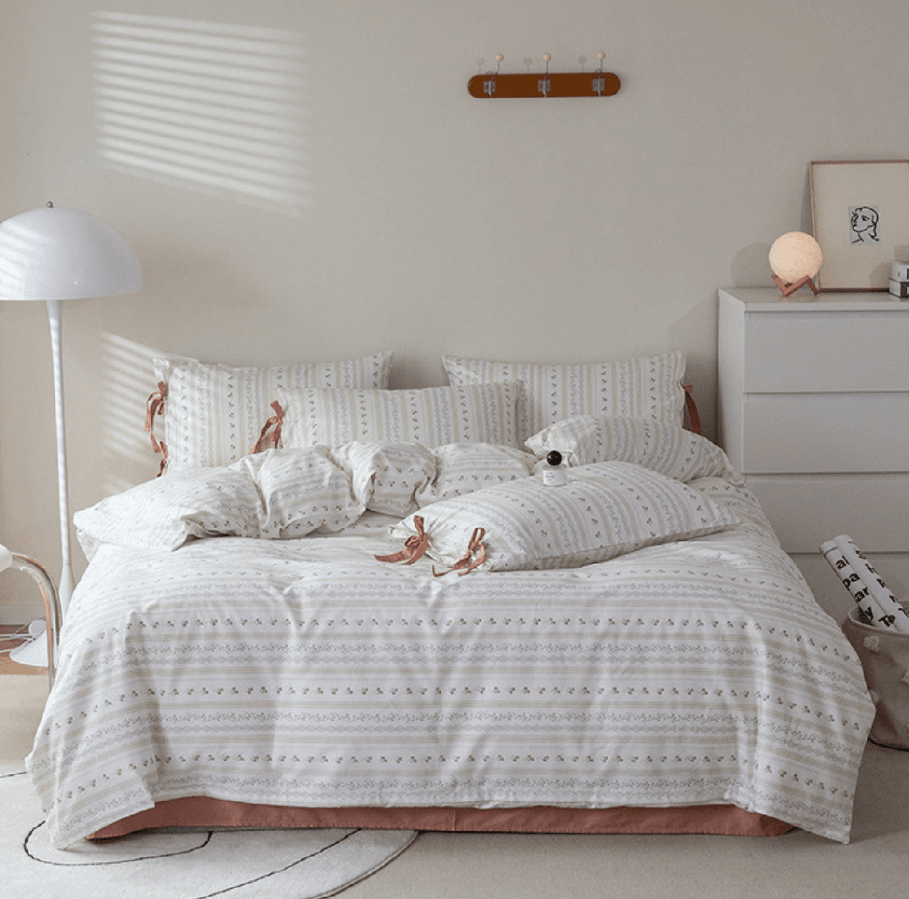 Step into a world of soft aesthetic charm with our Soft Cottage Ribbon Bedding Set. This captivating set takes inspiration from yesteryear. featuring vintage-style ribbon accents that add a touch of nostalgia to your bedroom. Crafted from high-quality materials. it offers a luxurious and comfortable sleep experience. The intricate ribbon details evoke a sense of timeless elegance and lend a unique character to your space. Create a haven of vintage allure and embrace the enchantment of our Soft Cottage Ribbon Bedding Set. Elevate your sleep sanctuary with a touch ofcottage flair and indulge in the beauty of days gone by.