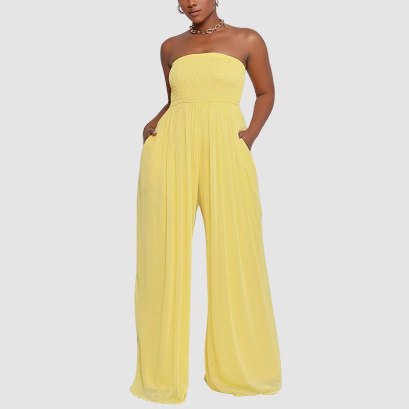 Características: Monos. Pantalones. Pantalones de pierna ancha. Corte relajado. Ajustado. Cintura alta. Hombros descubiertos. Sin tirantes. Color liso. Sin mangas. Suelto.