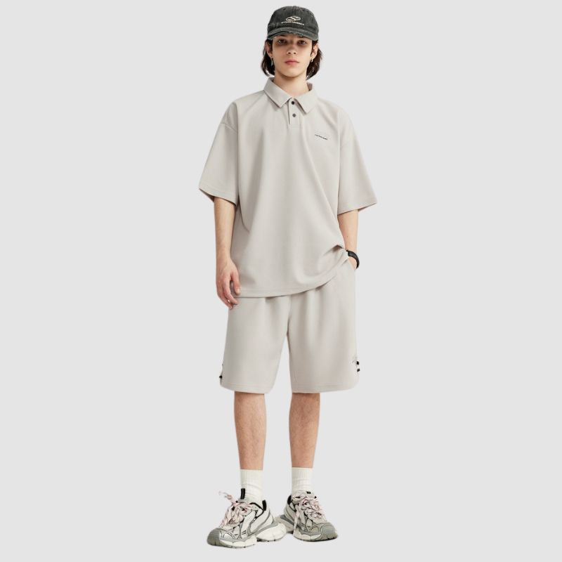 Características: Conjunto. Camiseta. Pantalones cortos. Cuello polo. Solapa. Mangas cortas. Color liso. Cintura con cordón. Dobladillo con cordón. Bordado. Cintura alta. Pierna ancha. Suelto.