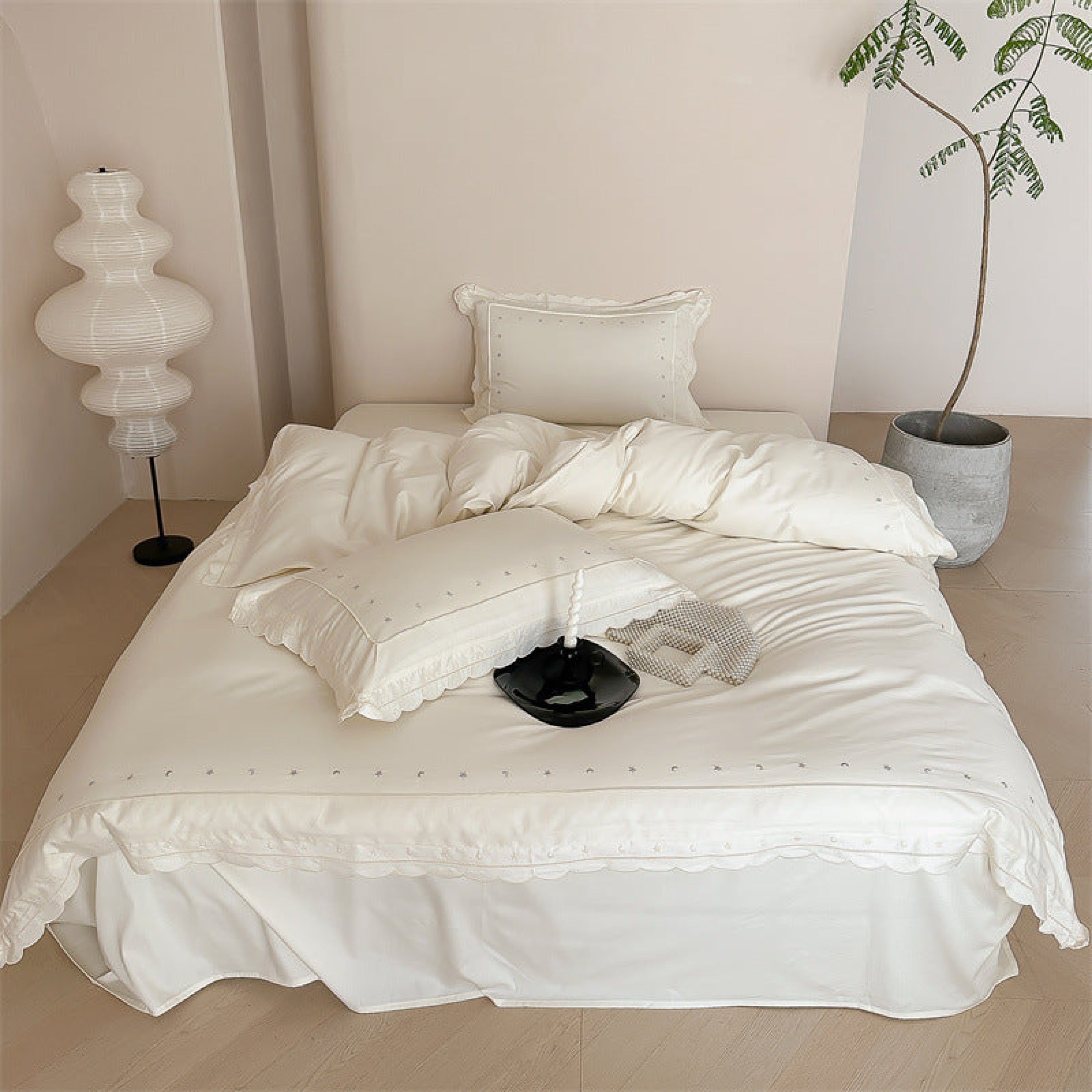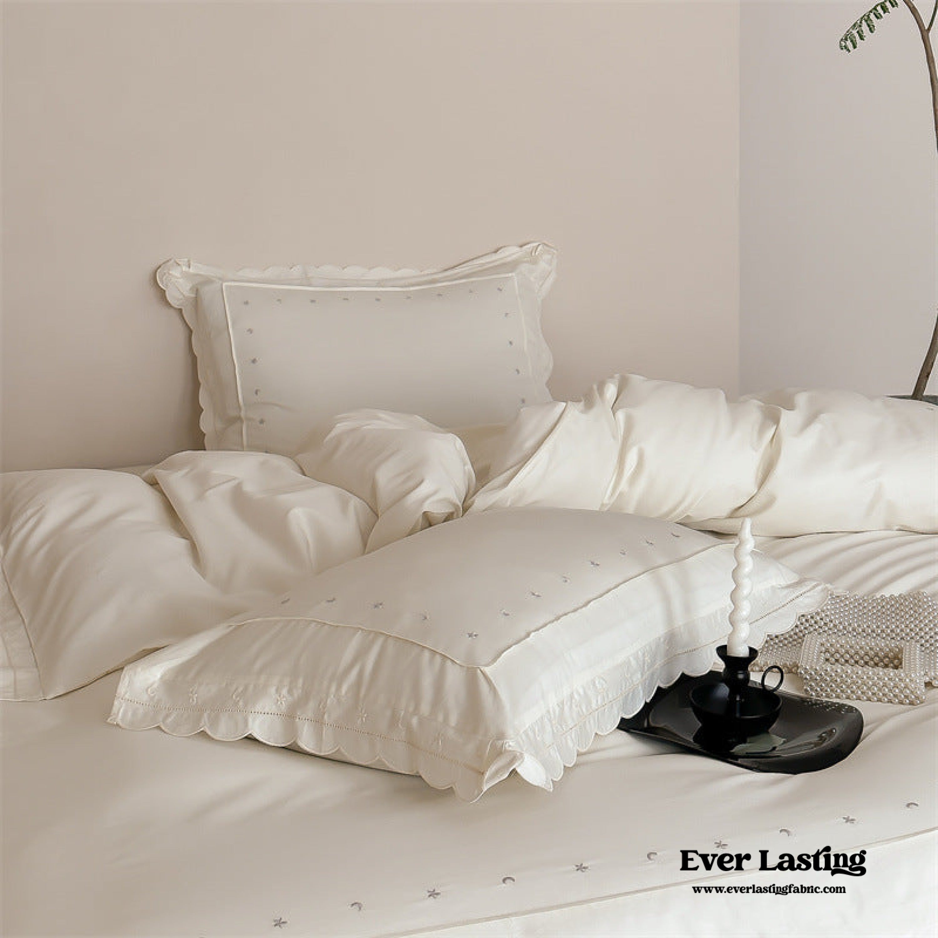 Star Gaze Short Cake Ruffle Bedding is now offered in a bundle. and all bundle sets come with a pre-included 10% to 20% discount! Enjoy savings on a complete set. including a duvet insert and pillow(s). along with our classic duvet cover. bed sheet. and pillowcase(s).