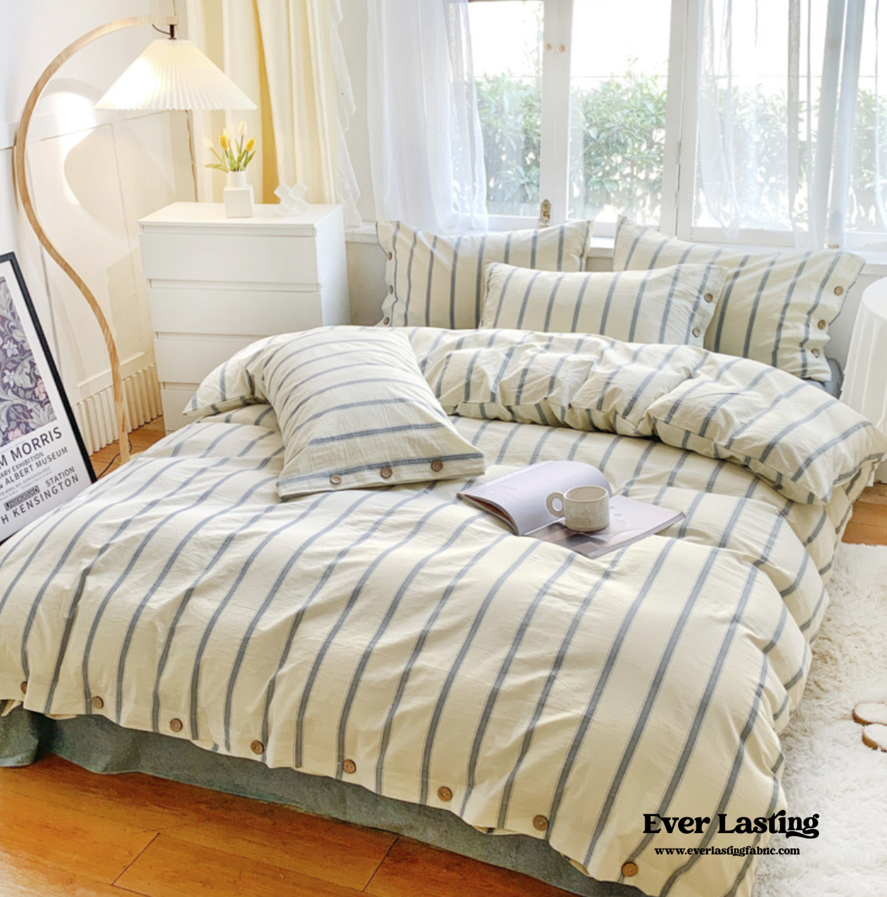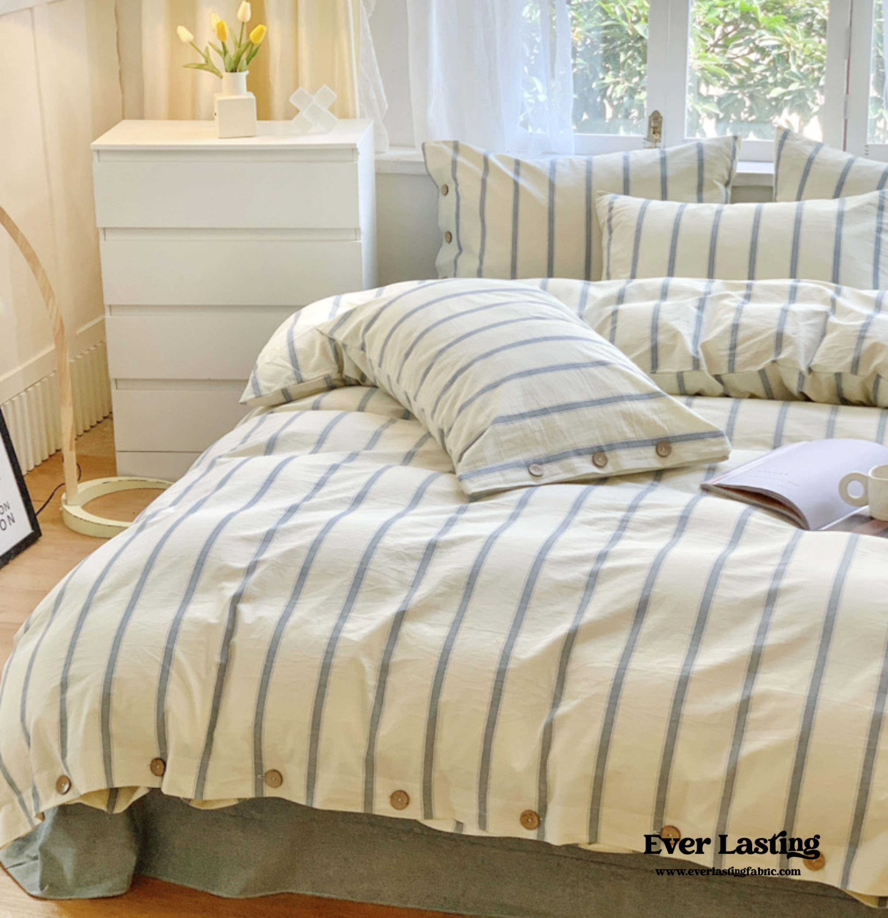 Elevate your bedroom decor with our stylish Striped Buttoned Bedding Set. Featuring a timeless striped pattern and charming buttoned detailing. it adds sophistication and flair to your space. Experience the ultimate blend of style and comfort. transforming your bedroom into a cozy and inviting sanctuary. Indulge in luxurious sleep surrounded by the captivating charm of our Striped Buttoned Bedding Set. Upgrade your bedding game and create a stylish haven today!