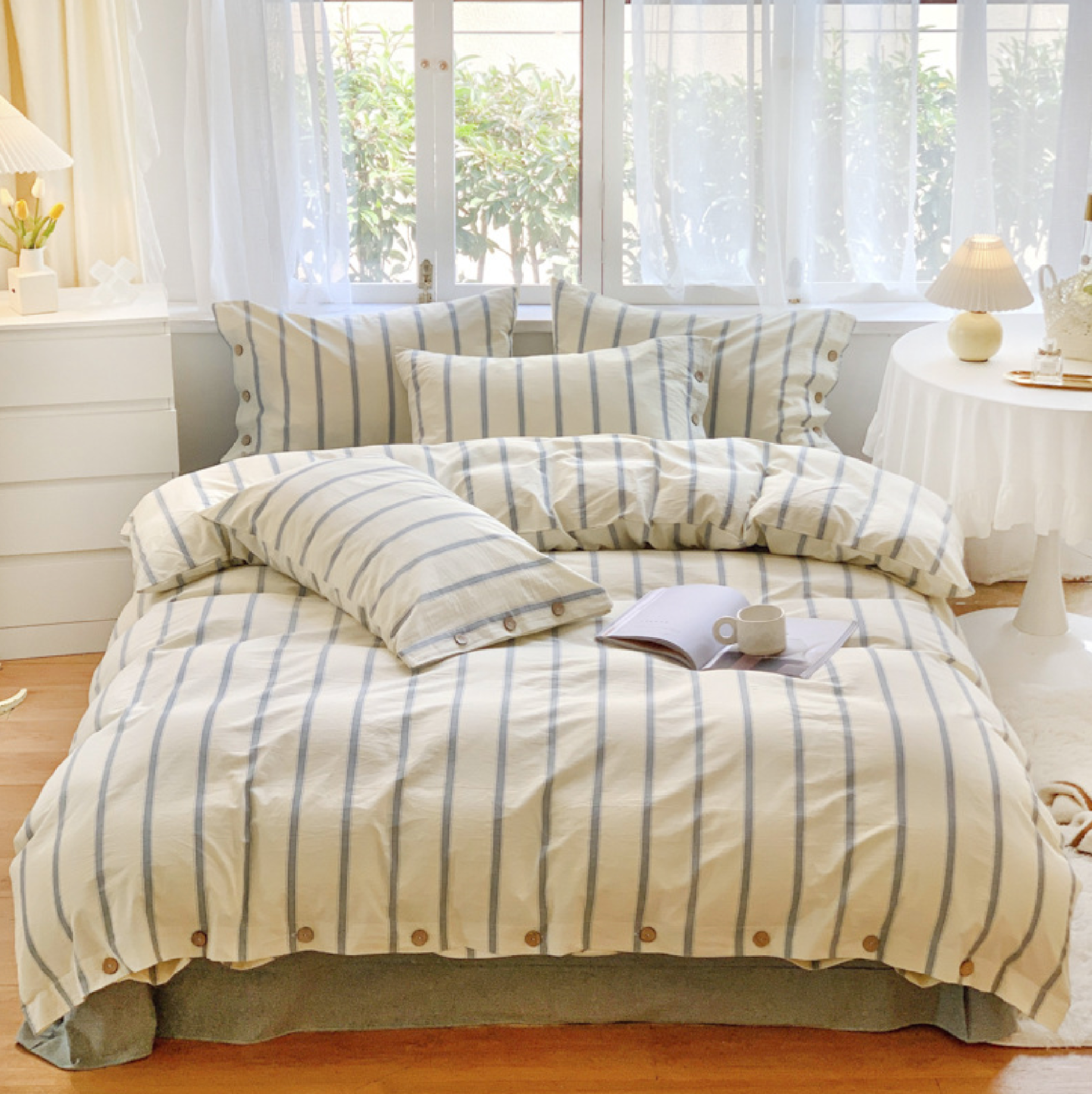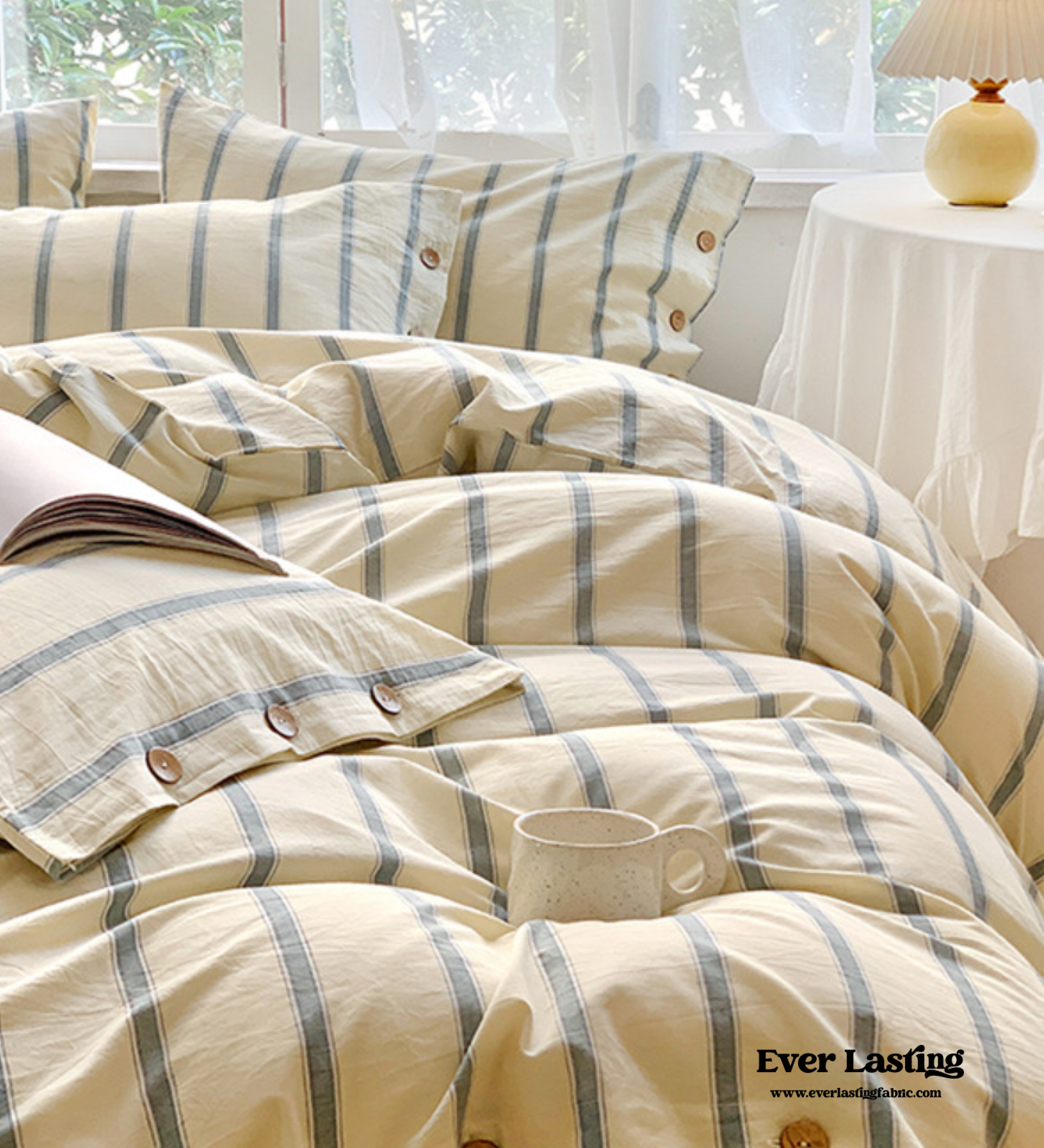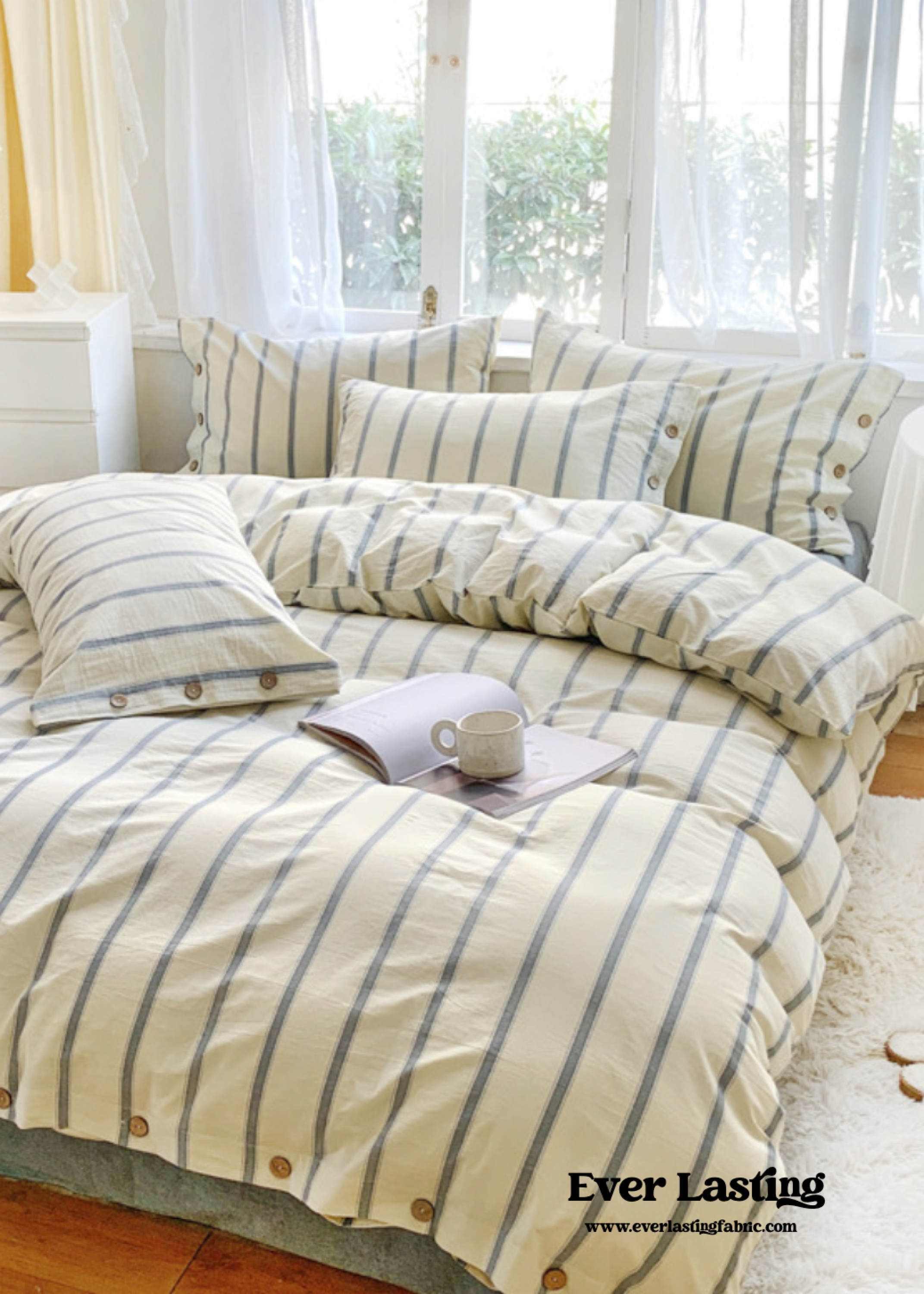 Elevate your bedroom decor with our stylish Striped Buttoned Bedding Set. Featuring a timeless striped pattern and charming buttoned detailing. it adds sophistication and flair to your space. Experience the ultimate blend of style and comfort. transforming your bedroom into a cozy and inviting sanctuary. Indulge in luxurious sleep surrounded by the captivating charm of our Striped Buttoned Bedding Set. Upgrade your bedding game and create a stylish haven today!