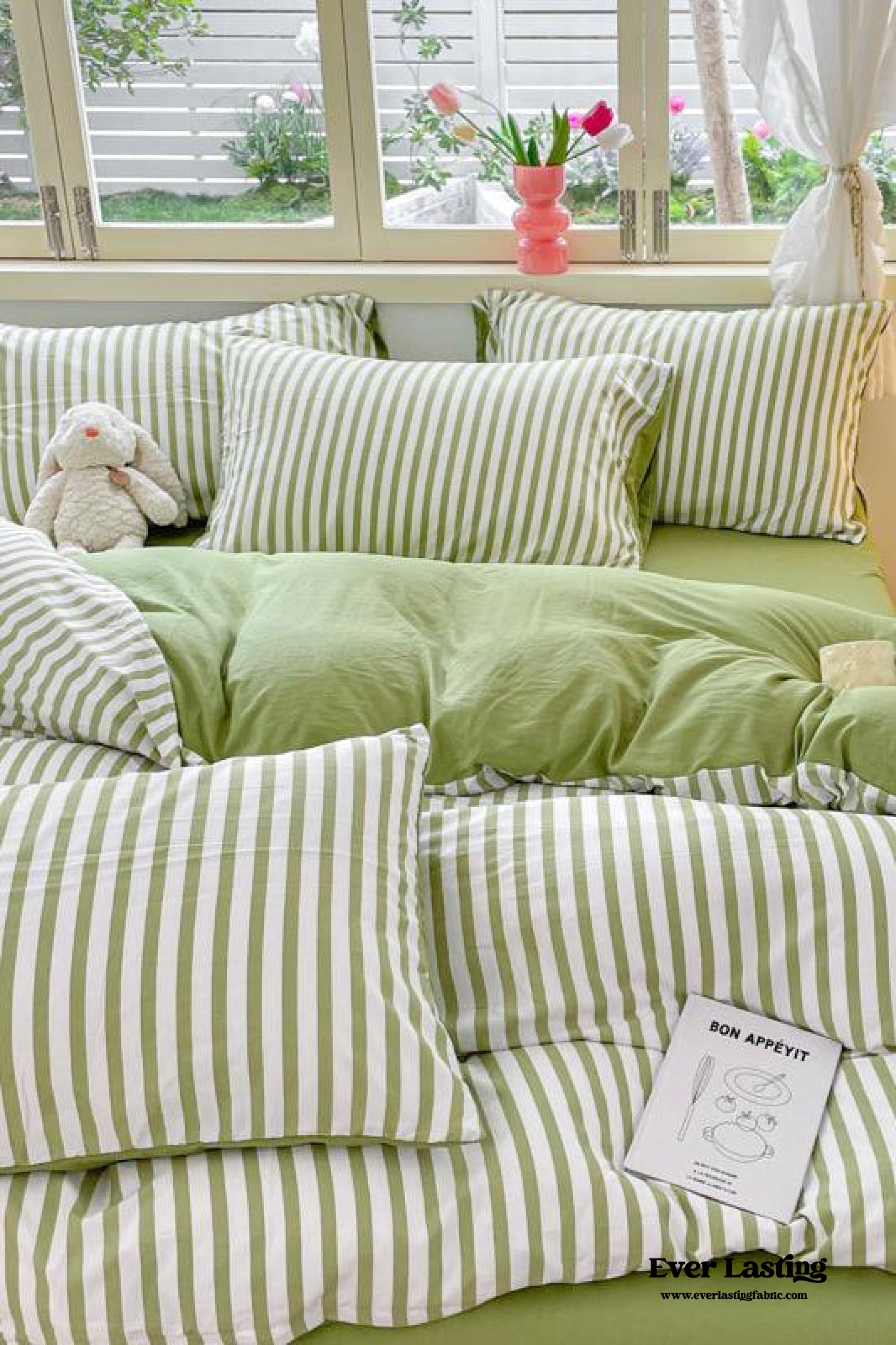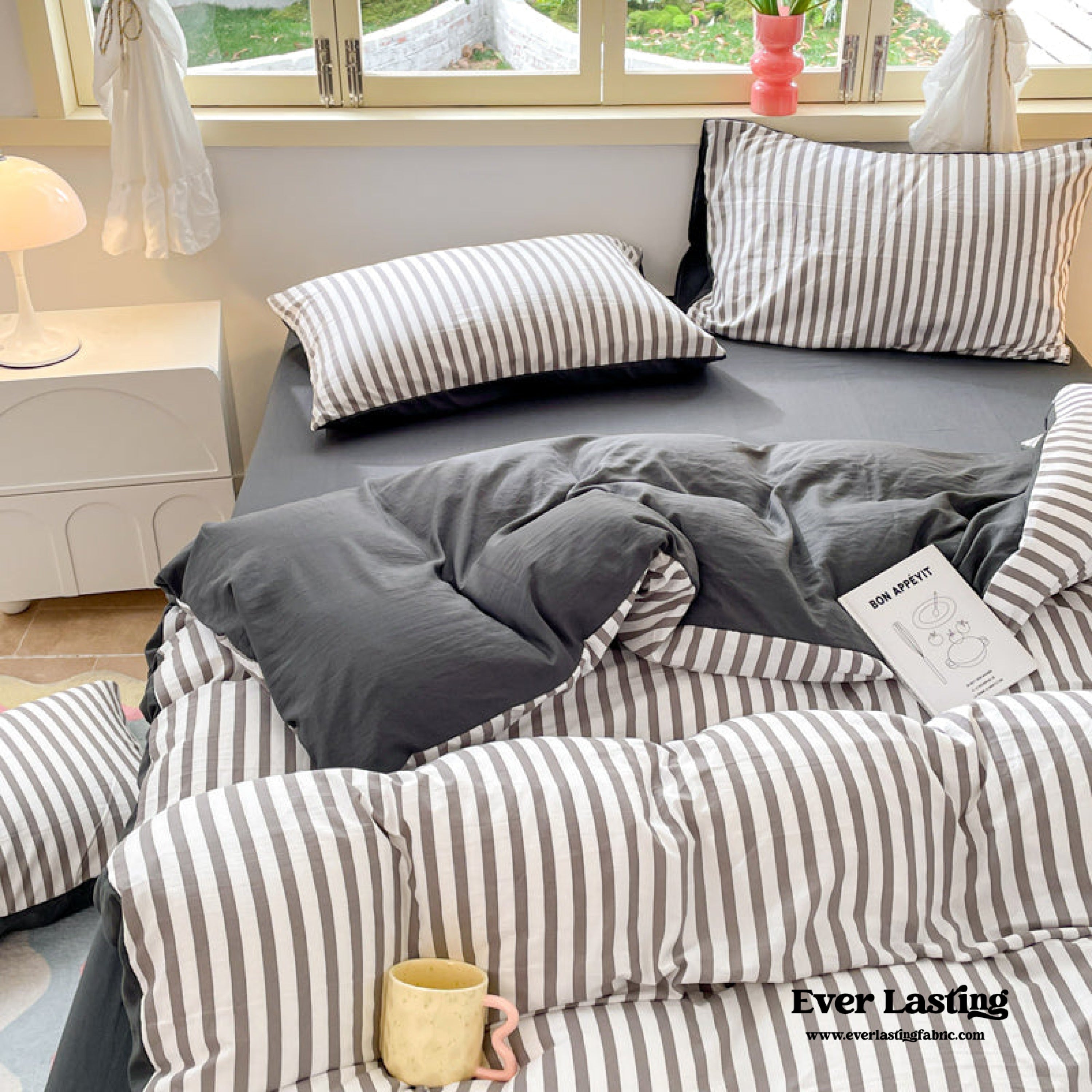 Transform your bedroom into a serene oasis with Magchic's Blue Cotton Striped Bedding Set. Designed with a cozy minimalist aesthetic. this bedding set protects your comforter from everyday wear while providing a super-soft. breathable feel. Made from 100% washed cotton. it offers perfect comfort and long-lasting quality. The elegant blue striped pattern adds a touch of sophistication to your bedroom decor. Each duvet cover features corner ties and a hidden zipper to securely hold your duvet insert in place. ensuring enduring quality tailored just for you. Ideal for those seeking a blend of aesthetic style and practical design. this bedding set turns your sleep space into a chic. comfortable retreat.