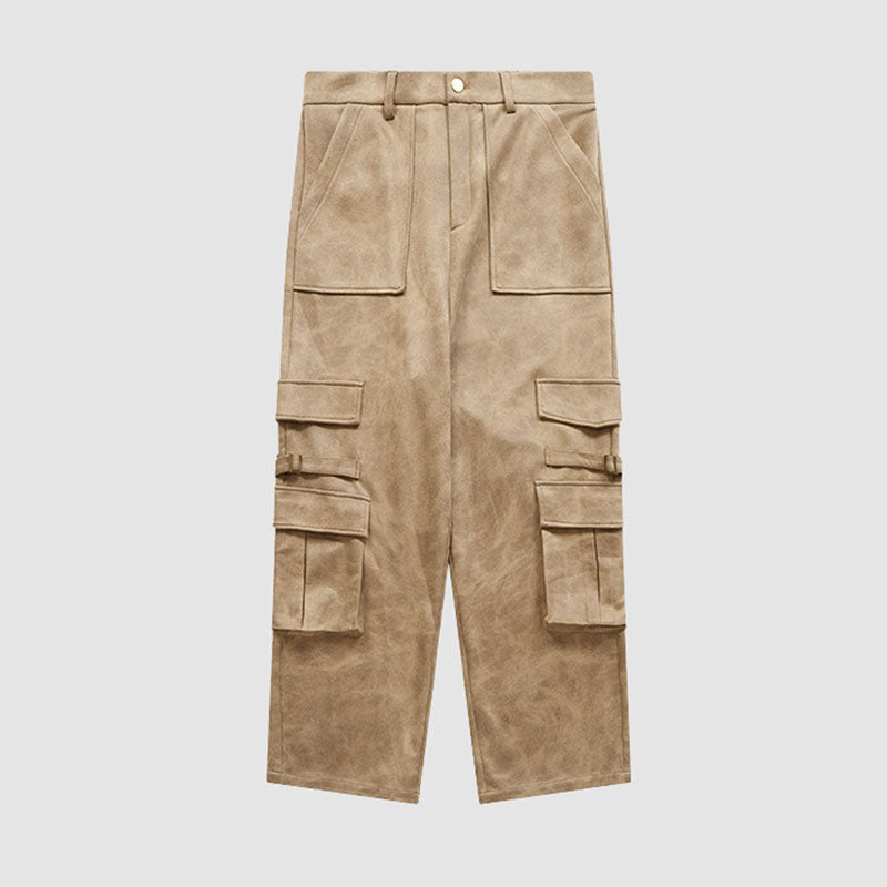 Pantalones cargo de gamuza con múltiples bolsillos y pierna ancha